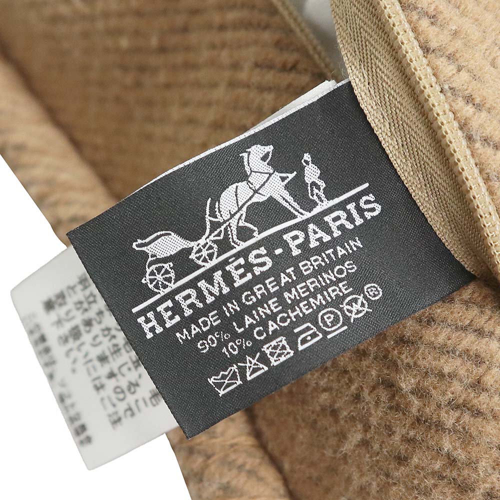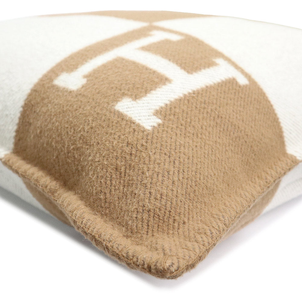 Pre-owned HERMES Avalon GM Cushion, 90% Merino Wool, 10% Cashmere, Ecru, Camel