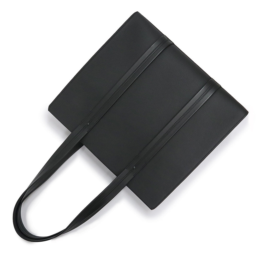 Crafted from soft, premium black grained calf leather, the Takeoff Tote is a spacious bag that combines practicality and elegance, featuring a lockable compartment to securely store your laptop and other valuables. |