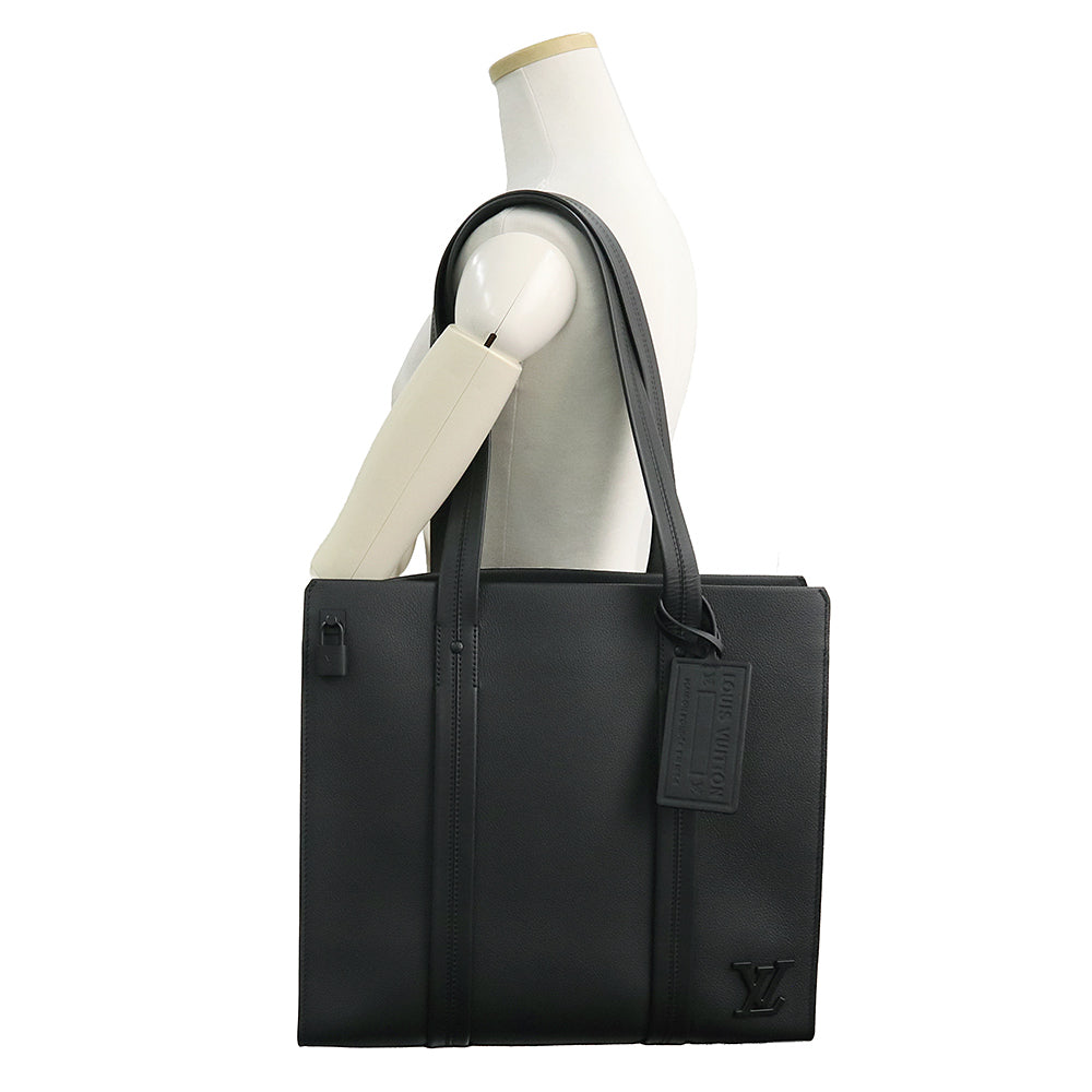[Unused, Stored] LOUIS VUITTON M57308 LV Aerogram Take Off Grained Calf Leather Noir Black Tote Bag with Black Hardware