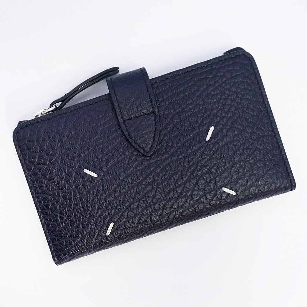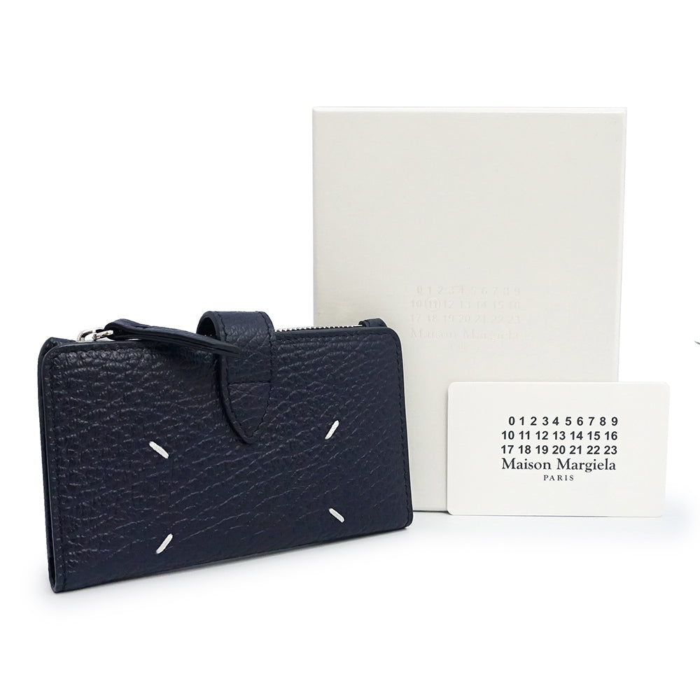 【新品・未使用品】Maison Margiela メゾン マルジェラ SA1VX0019 4ステッチ ジップウォレット カーフスキン ダークネイビー コインケース 小銭入れ 財布 レザー シルバー金具