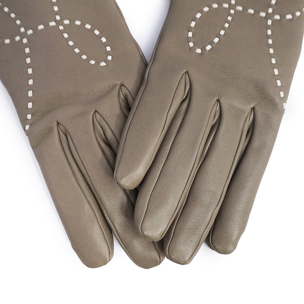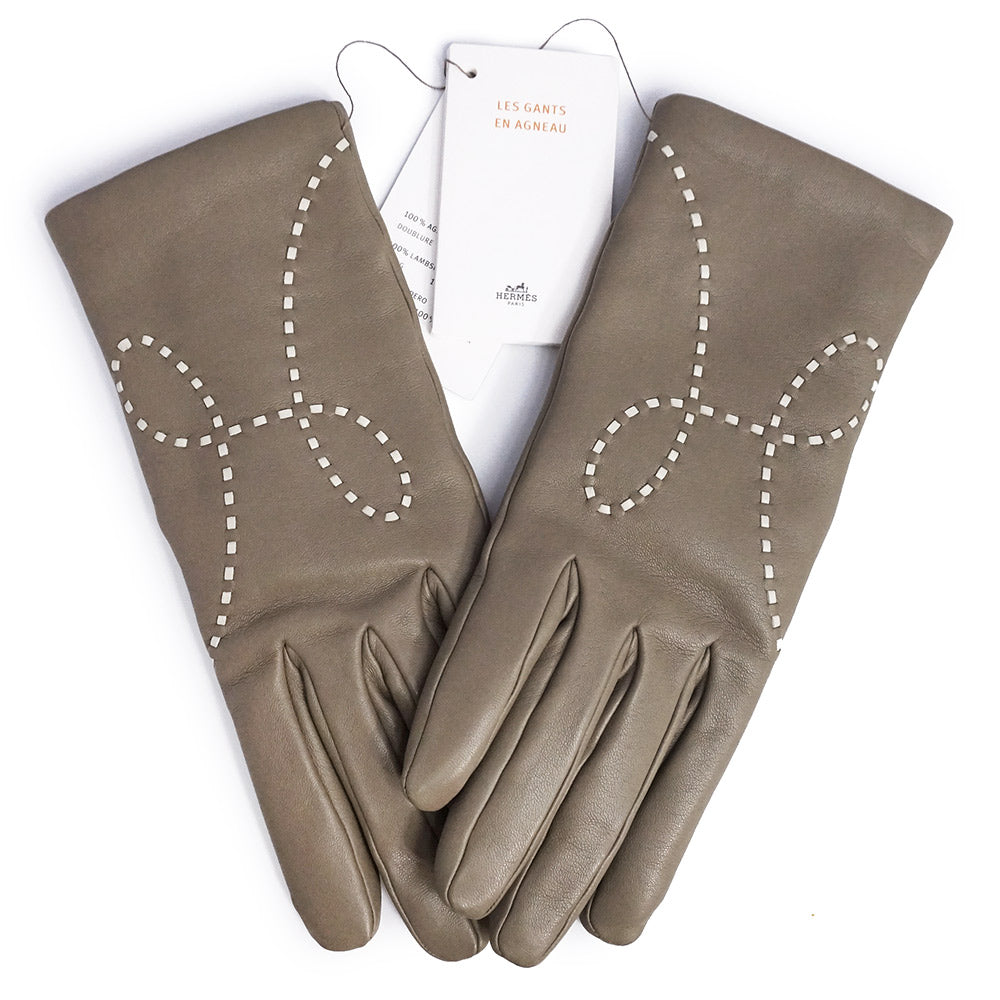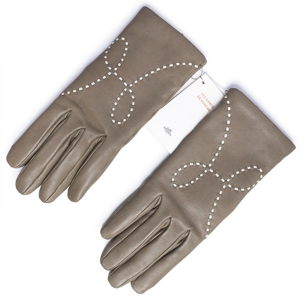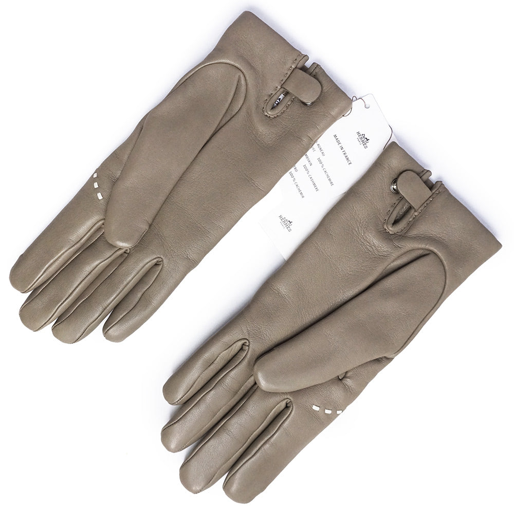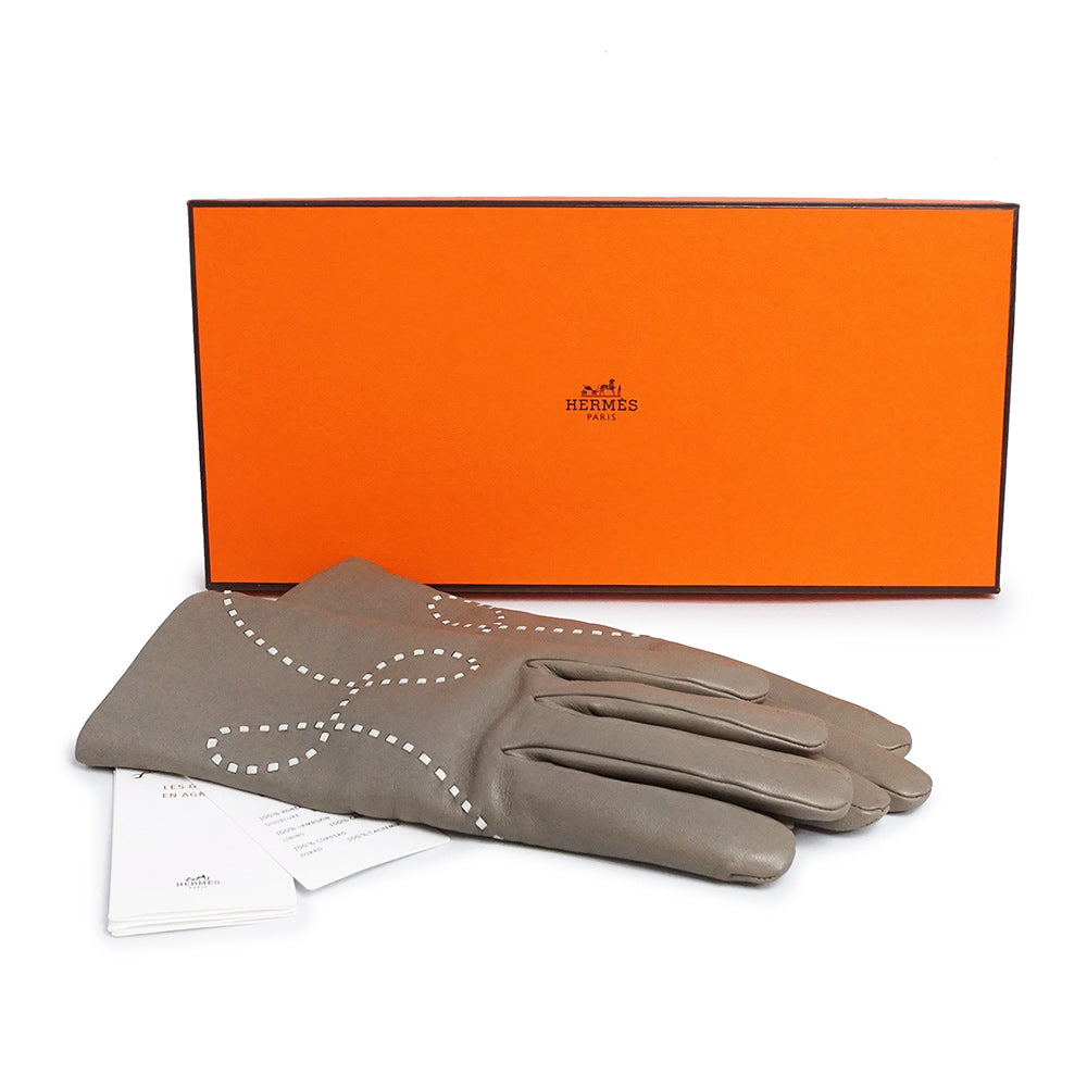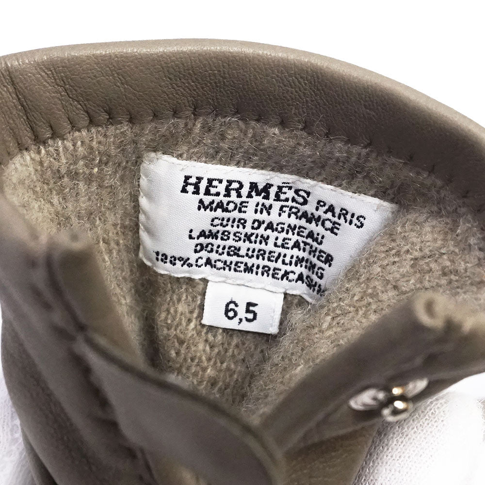 【新品・未使用品】HERMES エルメス リスボン アニューミロ ラムスキン レザー カシミヤ グリアスファルト ベトン グレージュ 手袋 グローブ #6.5 ラムスキン レザー シルバー金具 箱付