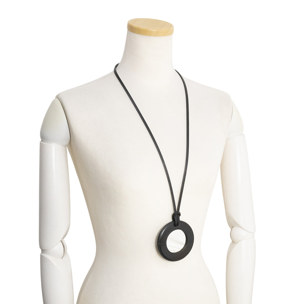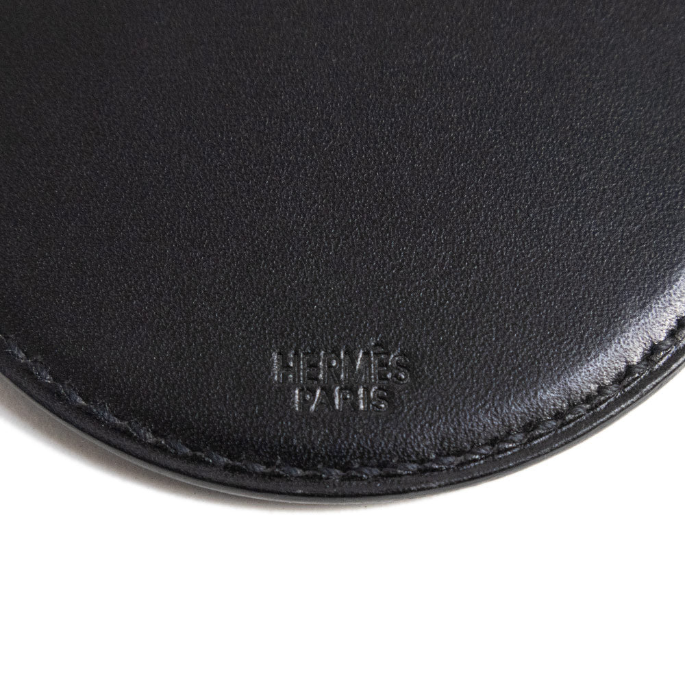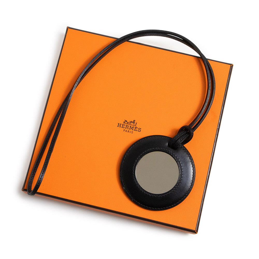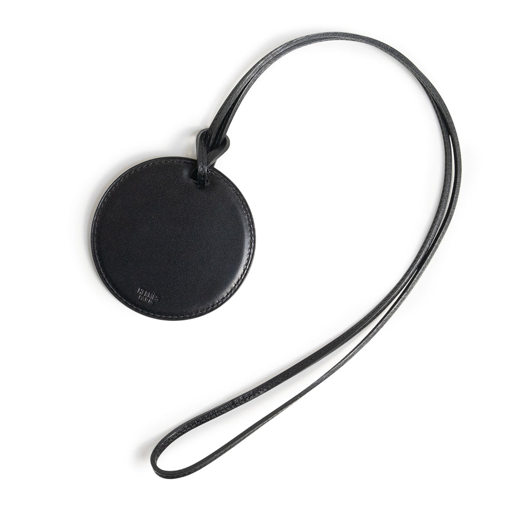 [New and unused] HERMES Mirror Pendant Leather Black Necklace Charm