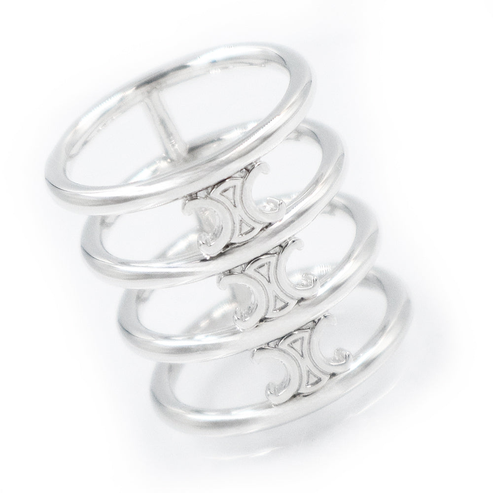 Celine's iconic Triomphe four-ring set in silver will add a touch of glamour to your everyday look. |