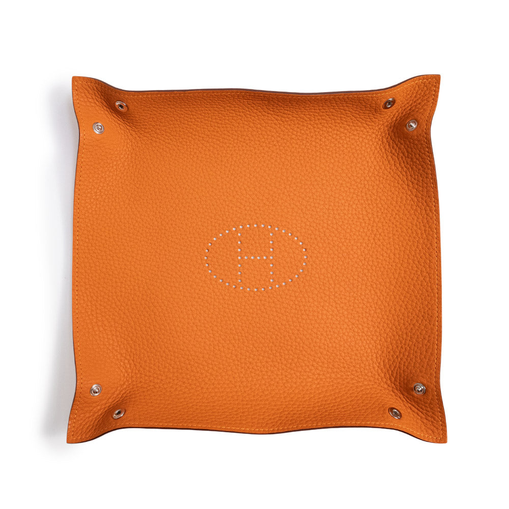 [New and unused] HERMES Vieux Poche Mise et Lerance H Evelyn Tray, Taurillon Clemence Potiron, Orange, K Stamp, Leather, Silver Hardware