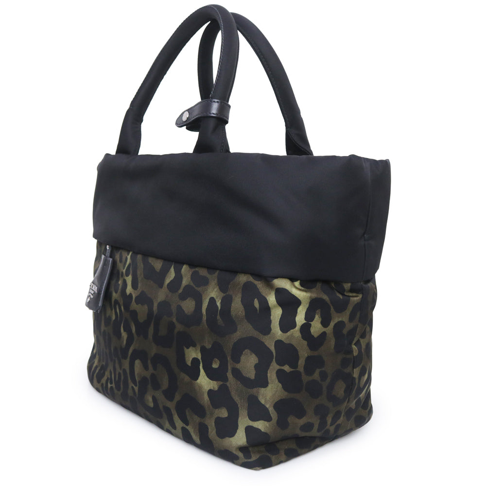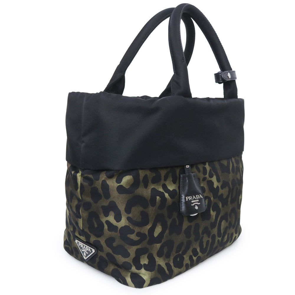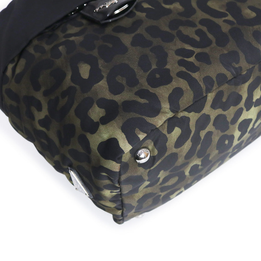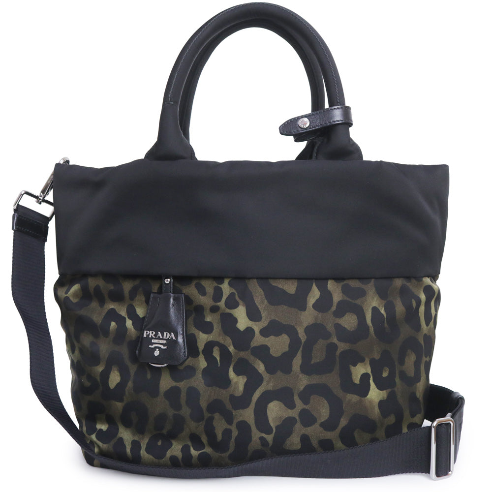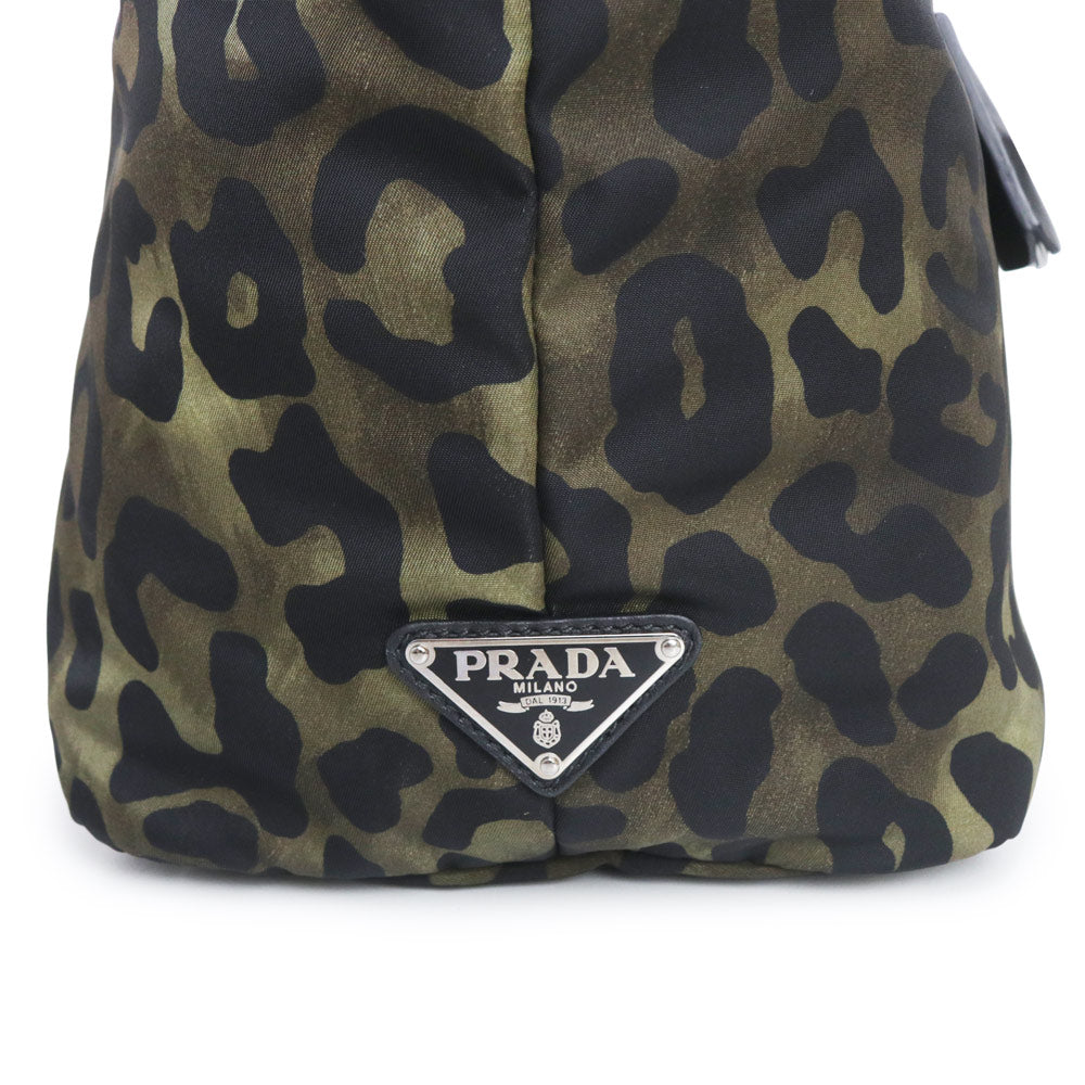 【未使用 展示品】PRADA プラダ B1959V テスートダブル ナイロン カモフラージュ レオパード ブラック カーキ 2way ショルダー トート ハンドバッグ シルバー金具