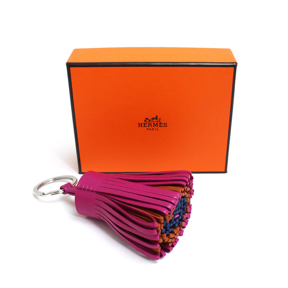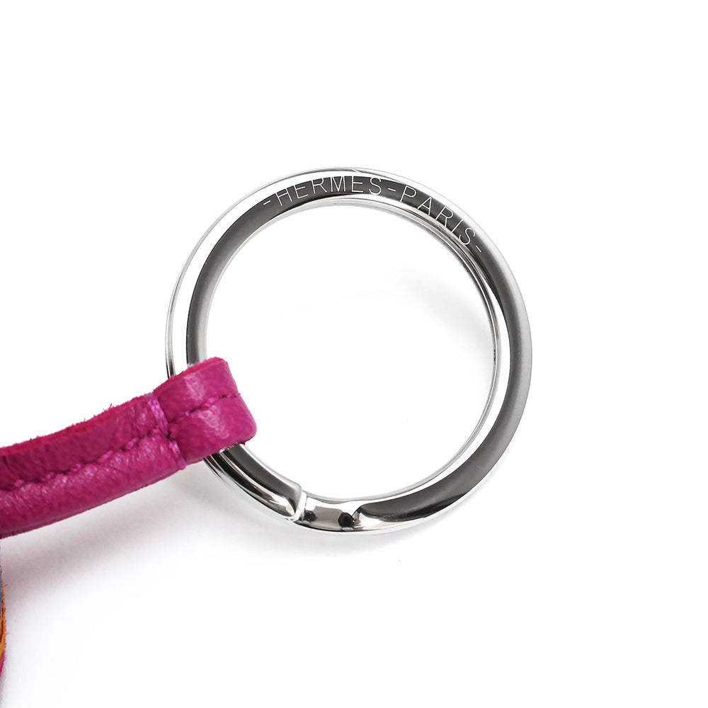 [Brand New, Unused] Hermès Carmen Tricolore Key Ring/Bag Charm, Anneu Milo Lambskin Leather, Rose Purple, Pain d'Epice, Bleu de Malte, Brown, Navy, Silver Hardware, Box Included