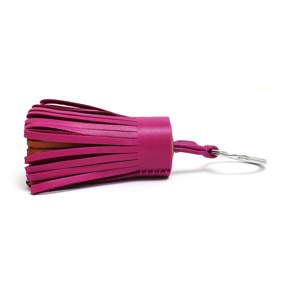 This tricolor "Carmen" keychain is inspired by a horse's tail. Its adorable design makes it look like a real horse's tail every time you move. Crafted from luxurious Hermès leather with fringe, this accessory can also be used as a key ring or bag charm. |