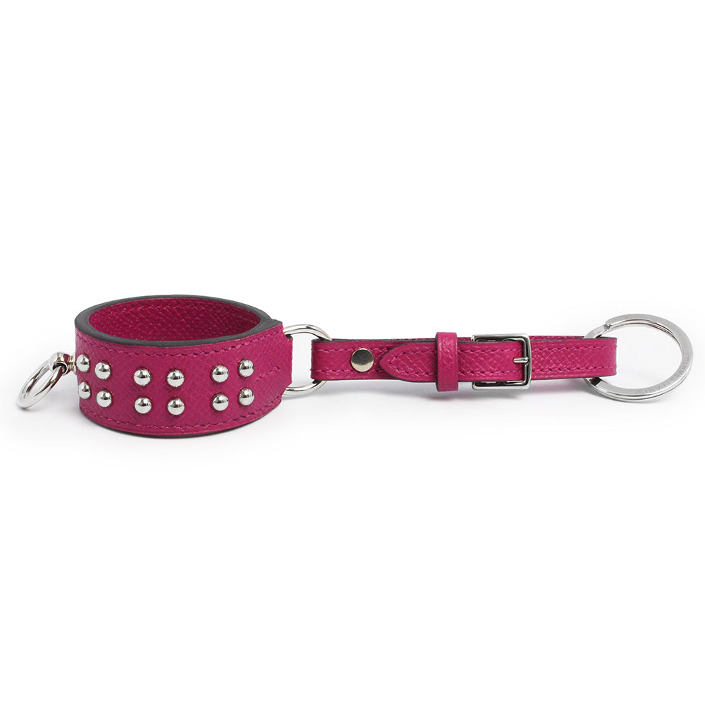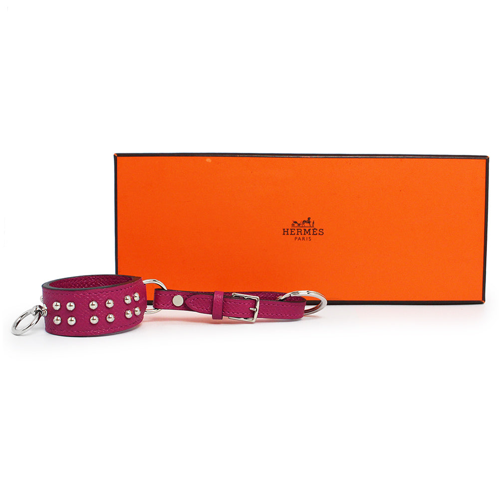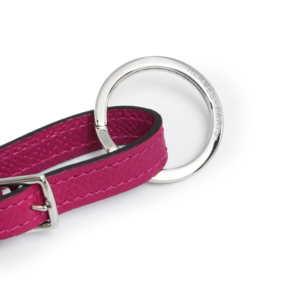 [New and unused] Hermès Collier de Chien Aneau keychain/bag charm, made of Epsom leather in rose purple with silver hardware and an A stamp.