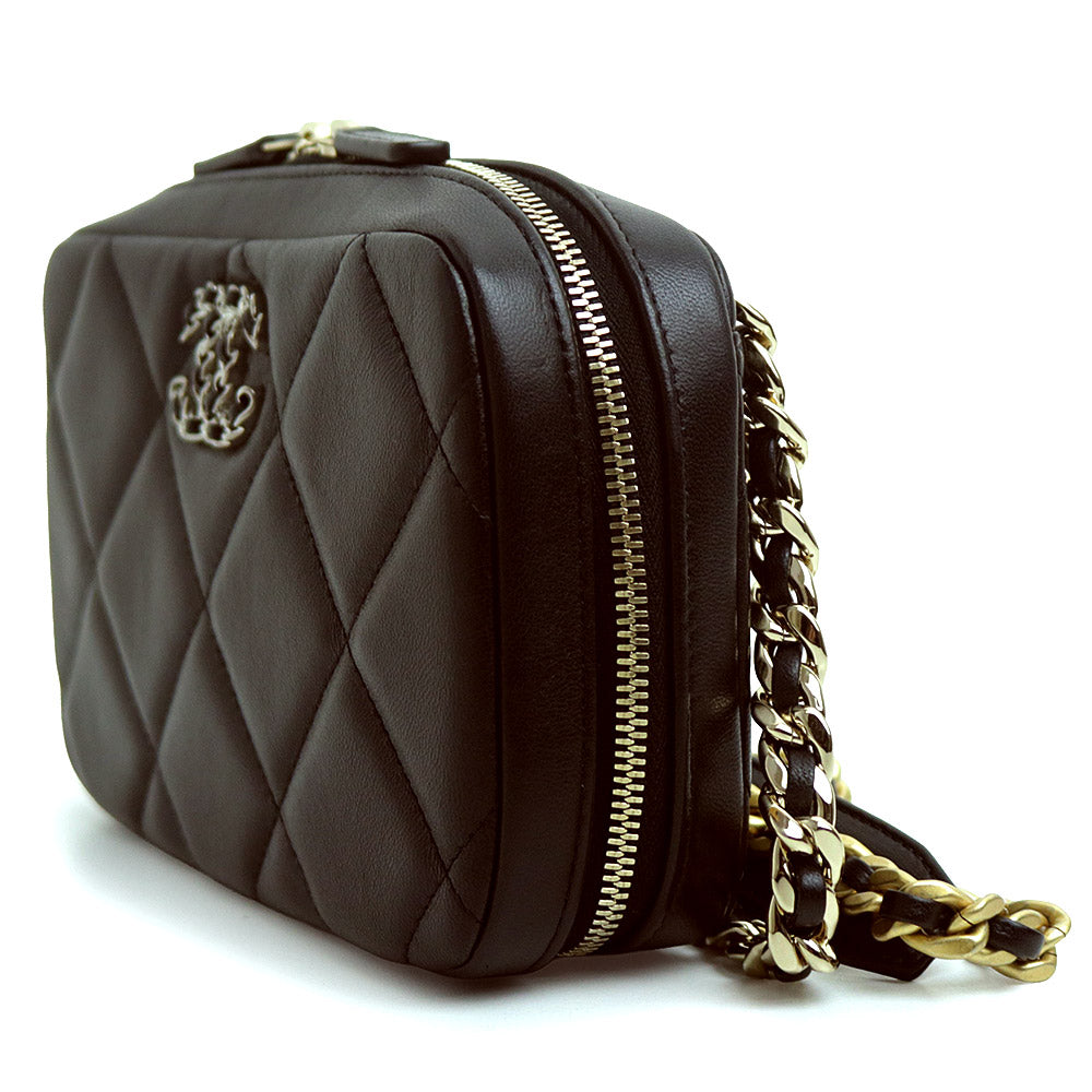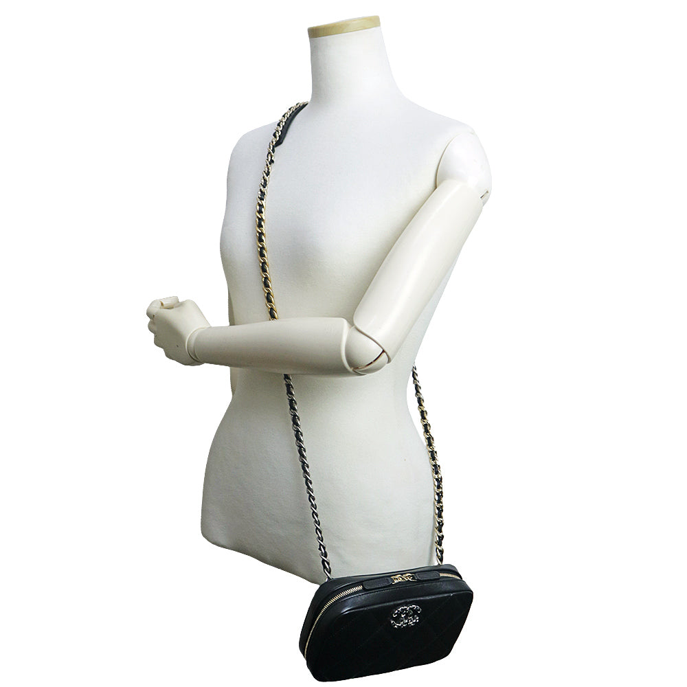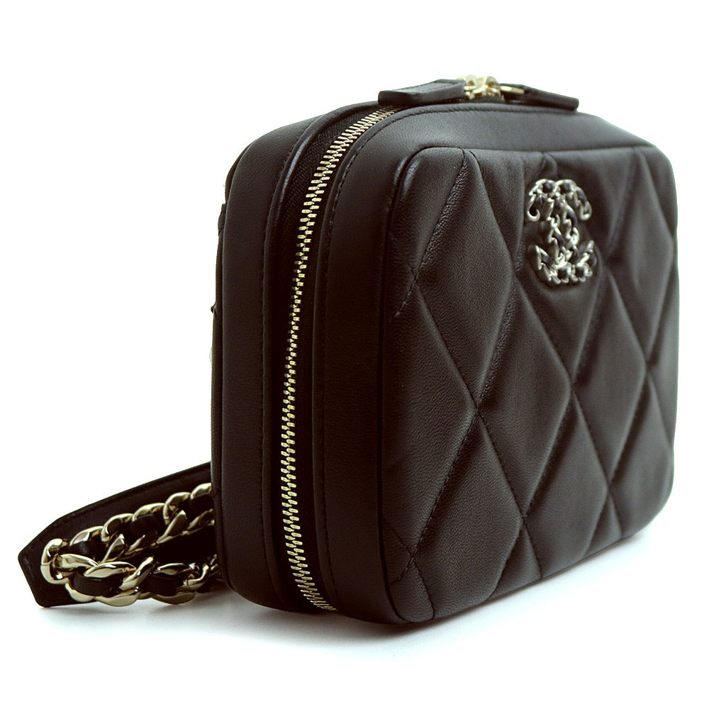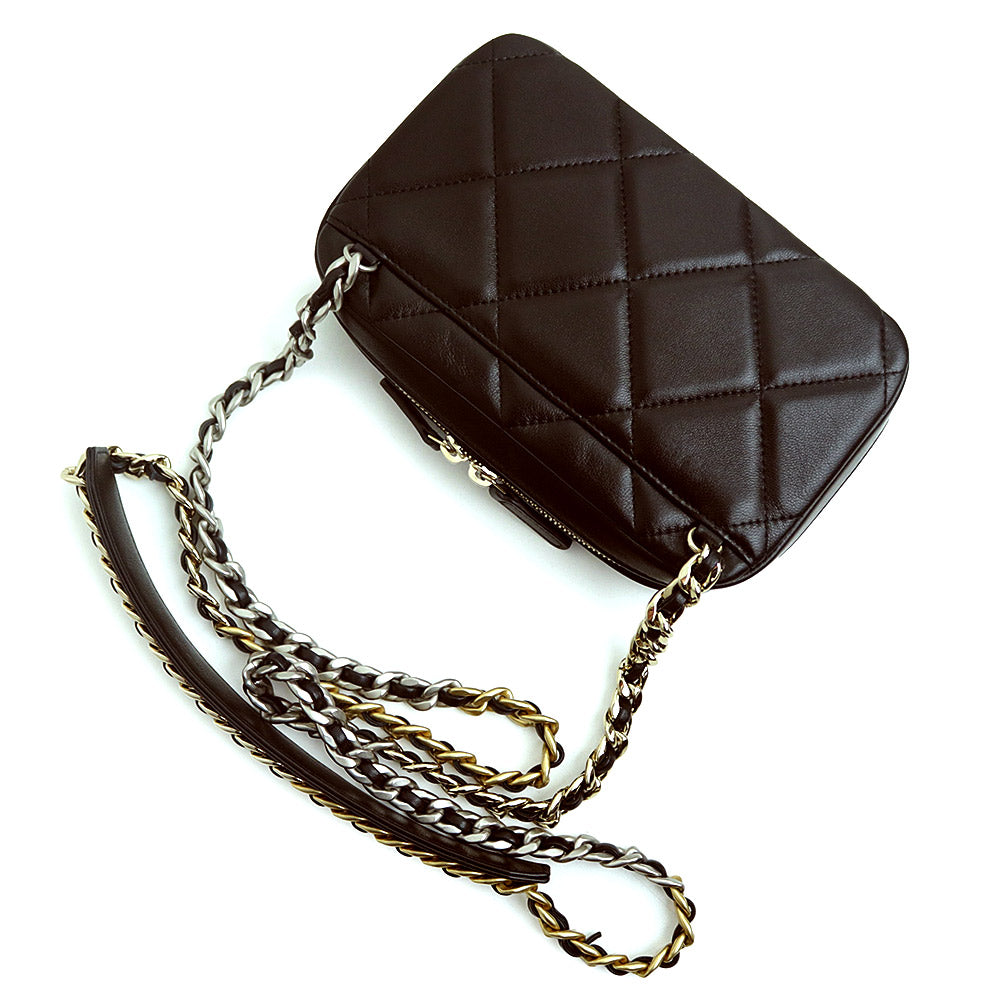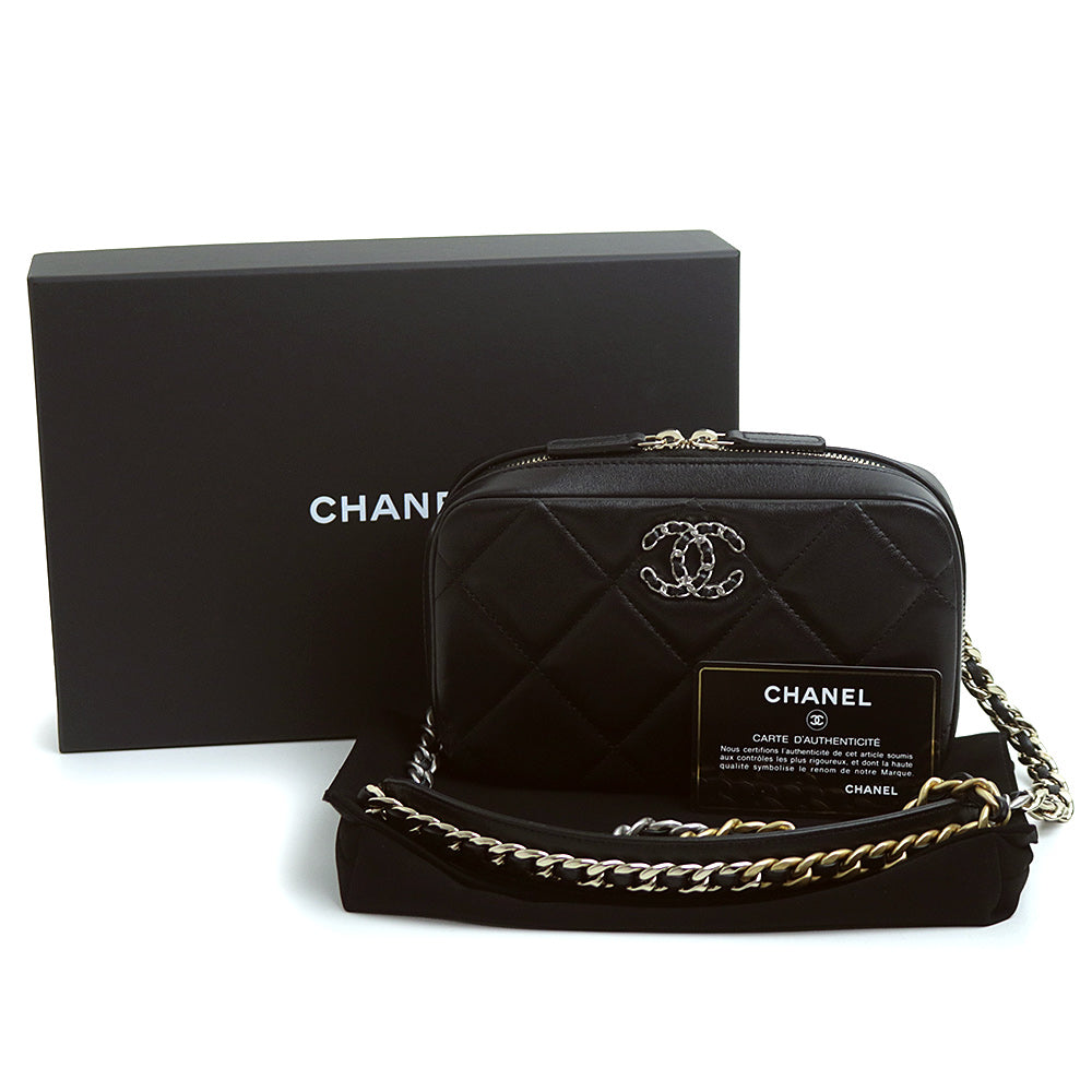 【未使用 展示品】シャネル CHANEL 19 ナインティーン ココマーク フォンホルダー マトラッセ チェーン ショルダーバッグ 斜め掛け ラムスキン レザー ブラック シルバー アンティークゴールド アンティークシルバー金具 AP2728 箱付