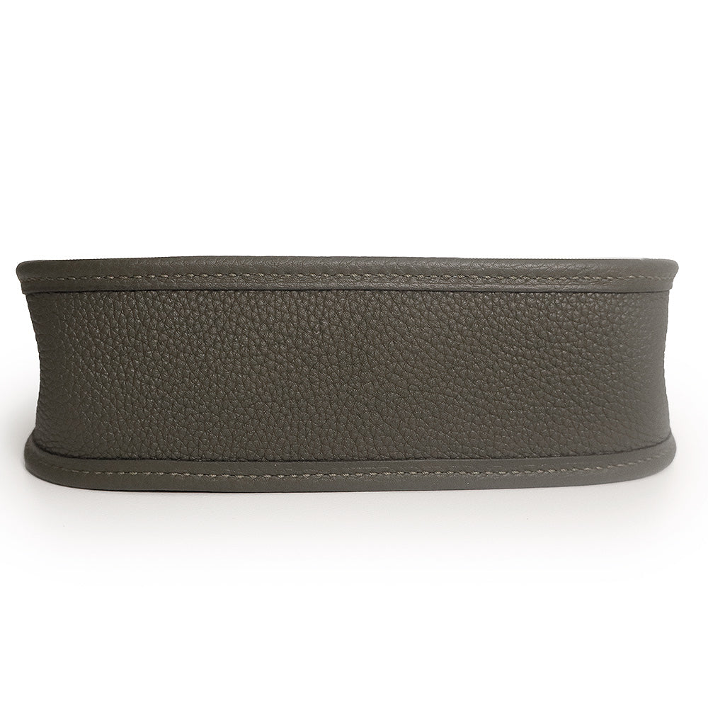 スマートフォンや小型の財布など、必要最低限のものを持ち歩くのに最適なサイズ感と上質な皮革を使用したエルメスのエヴリン TPMです。バッグの深い色合いとショルダーストラップの明るさのコントラストが美しくカジュアルな装いにフィットします。