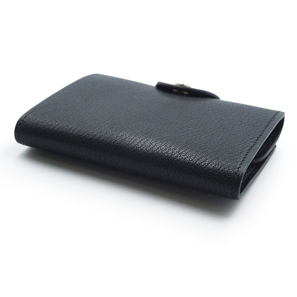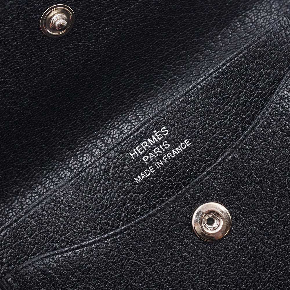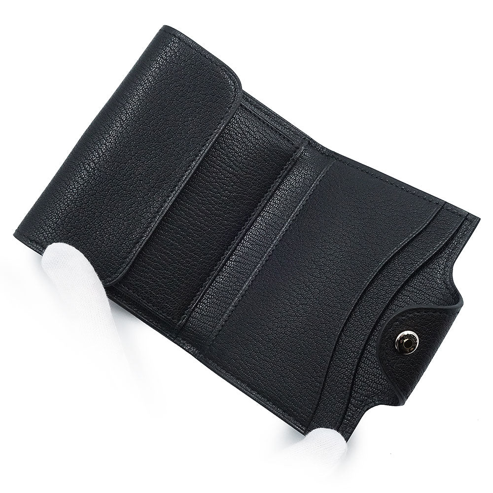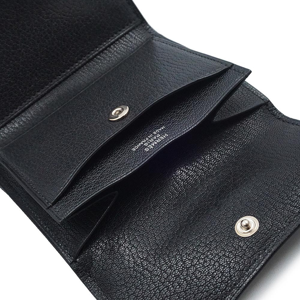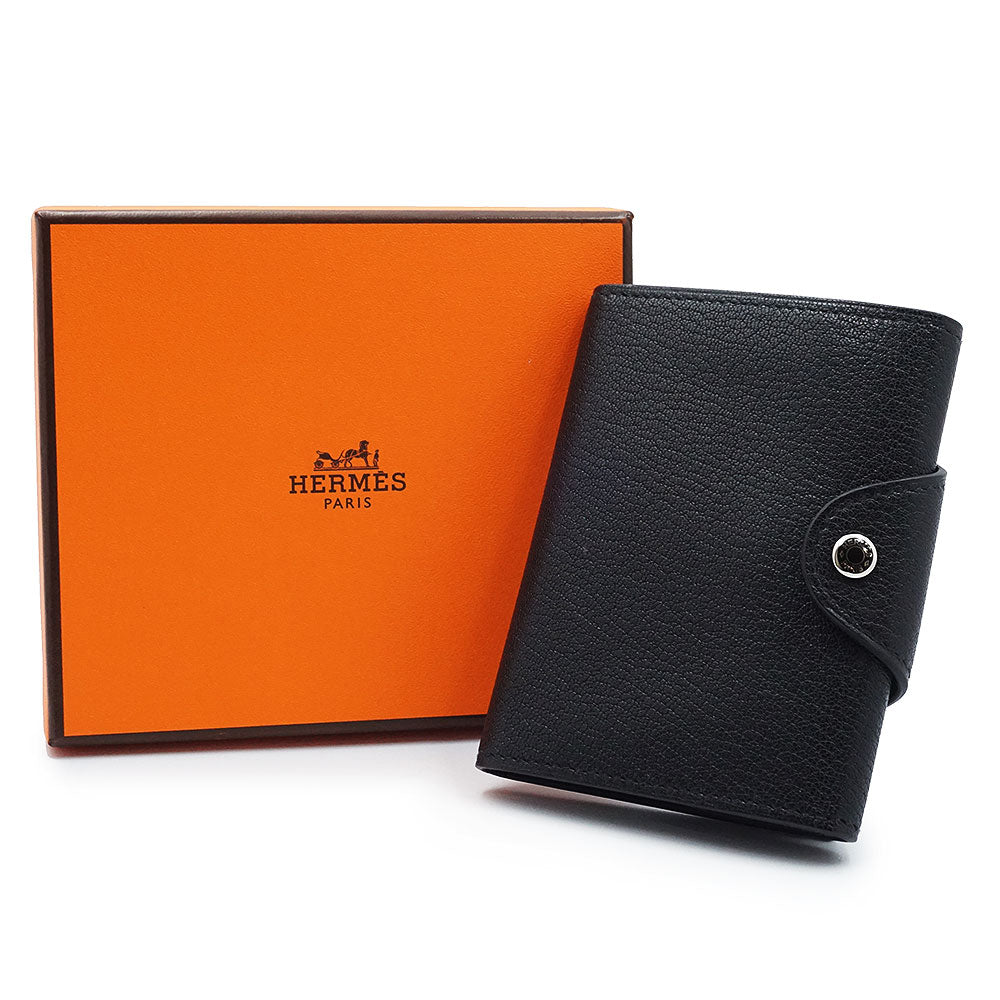 [Unused, Display Item] Hermès Iliad Compact Ulysse Card Case, Business Card Case, Pass Case, Coin Case, Bi-fold Wallet, Chevre, Chevre Chamquila, Noir, Black, Silver Hardware, B Stamp, Box Included