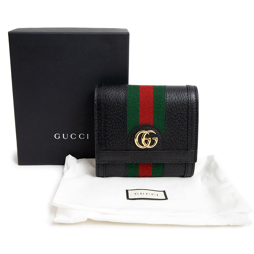 This bi-fold wallet from Gucci's Ophidia line features a distinctive Web stripe and double G motif, and is made from Gucci's original soft, supple leather for a luxurious feel. |