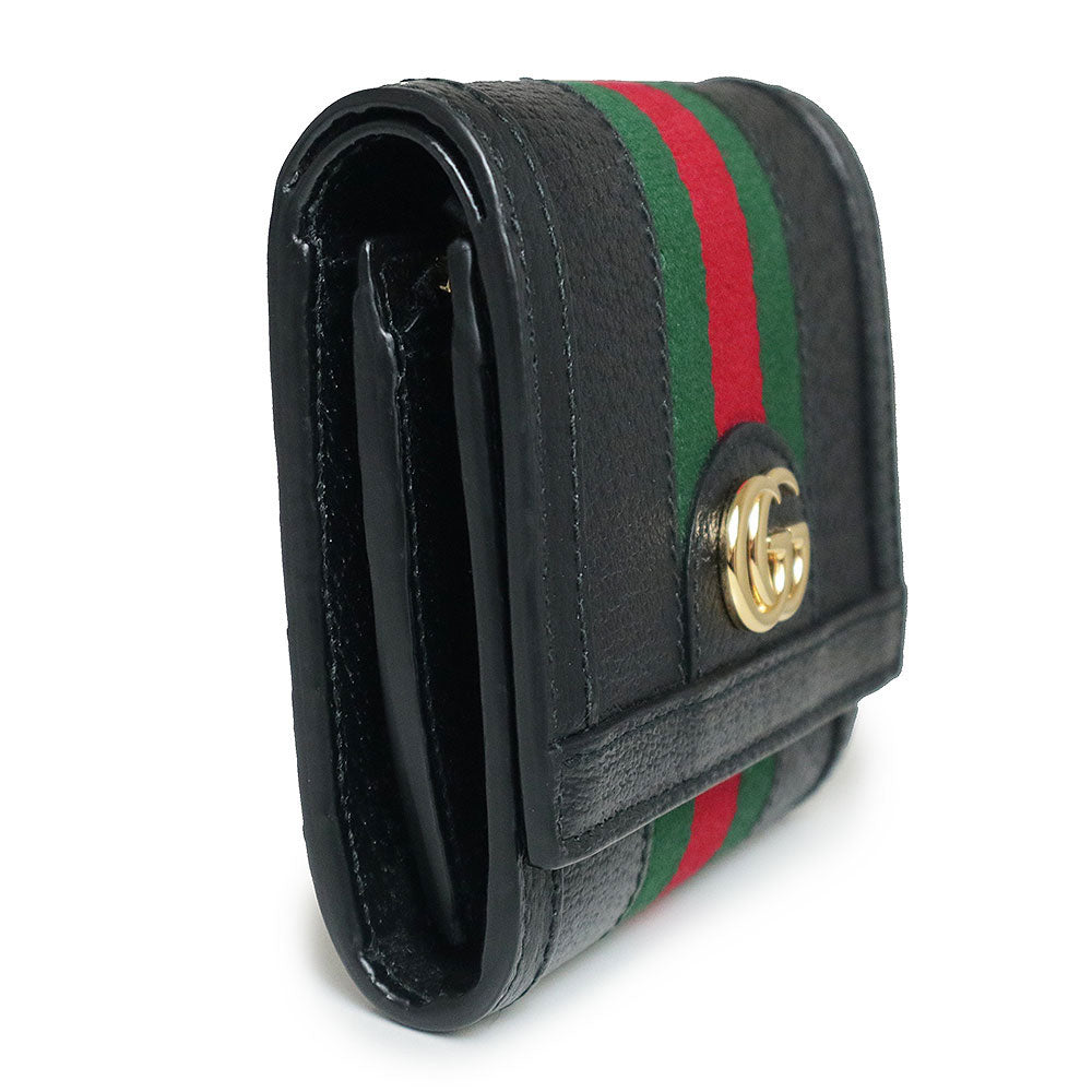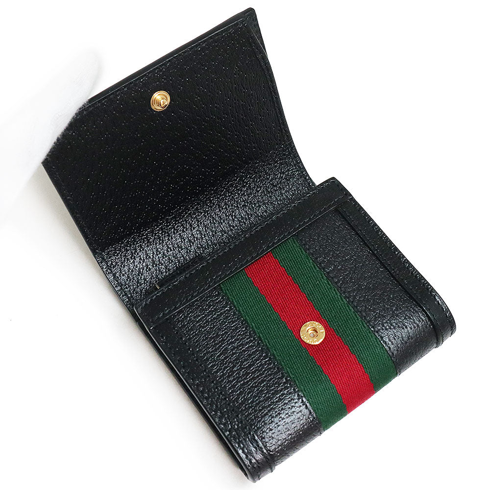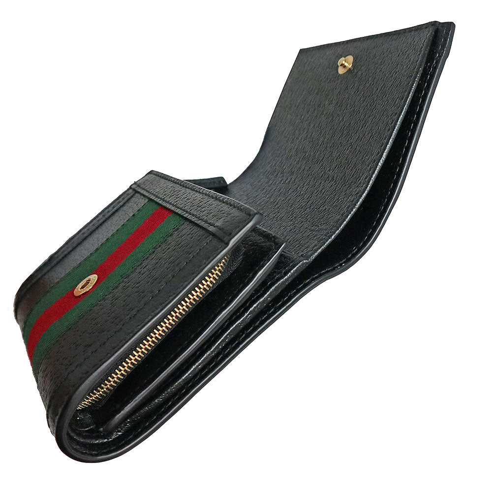 [New and unused] Gucci Ophidia Web Stripe GG Marmont Bi-fold Wallet in Black Calfskin Leather with Gold Hardware (Product Code: 719887) with Box