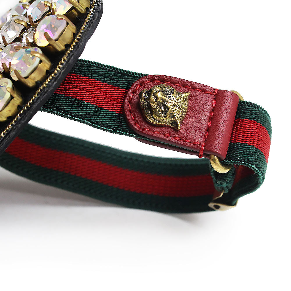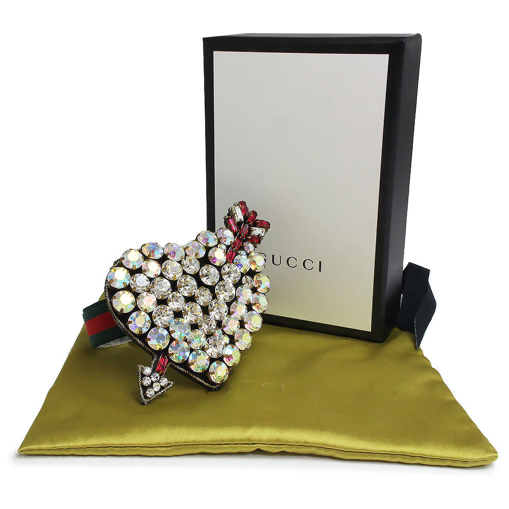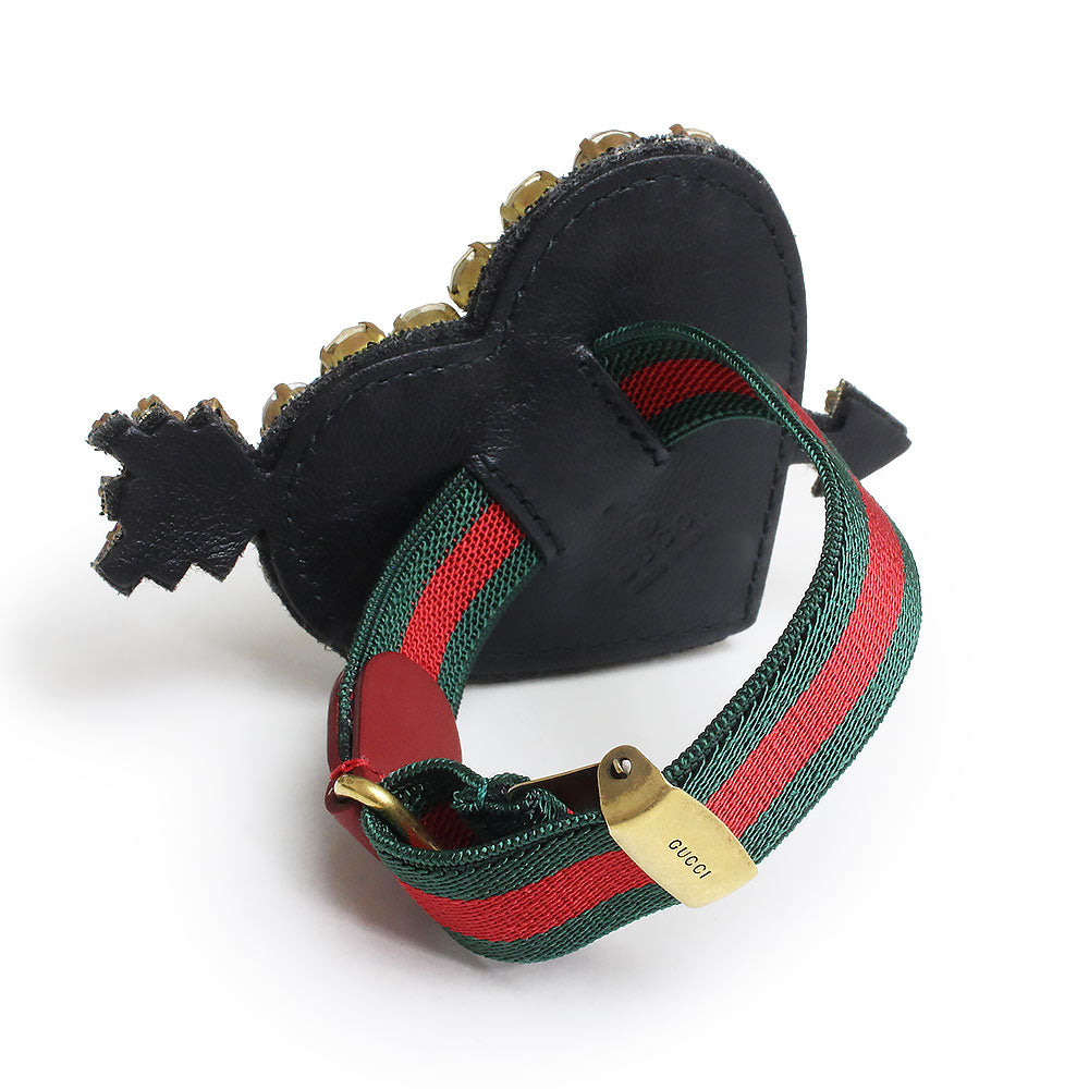 [New and unused] GUCCI Pierced Heart Bijou Sherry Line Cat Bracelet Crystal Web Grosgrain Green Red 493011 With box