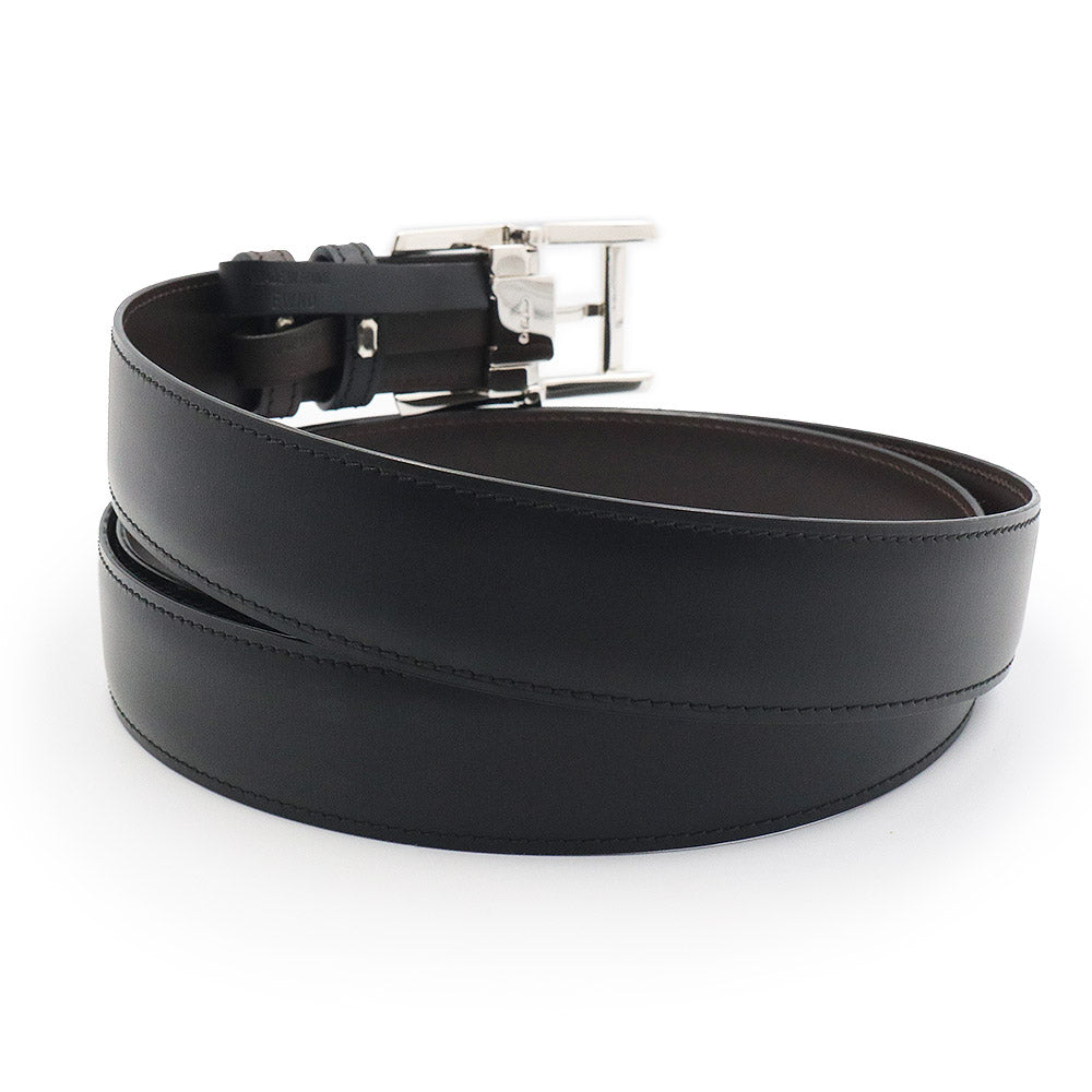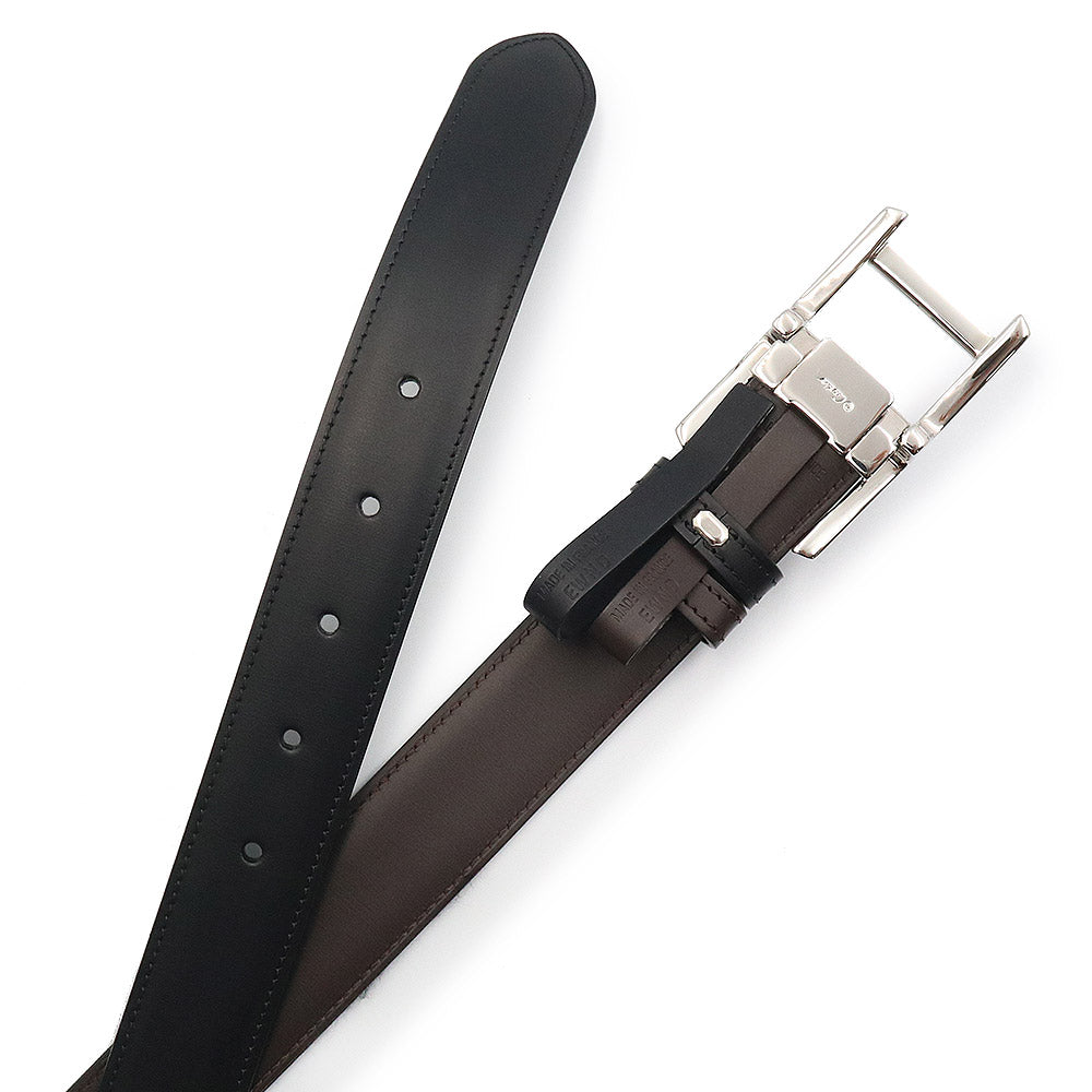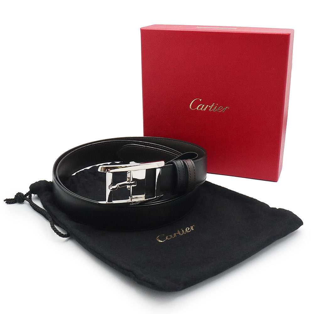[Unused Display Item] Cartier Tank Américaine Reversible Belt in Black and Brown Cowhide Leather with Silver Hardware, L5000058, with Box