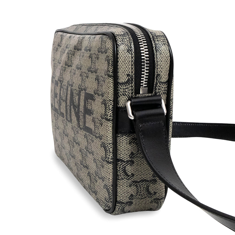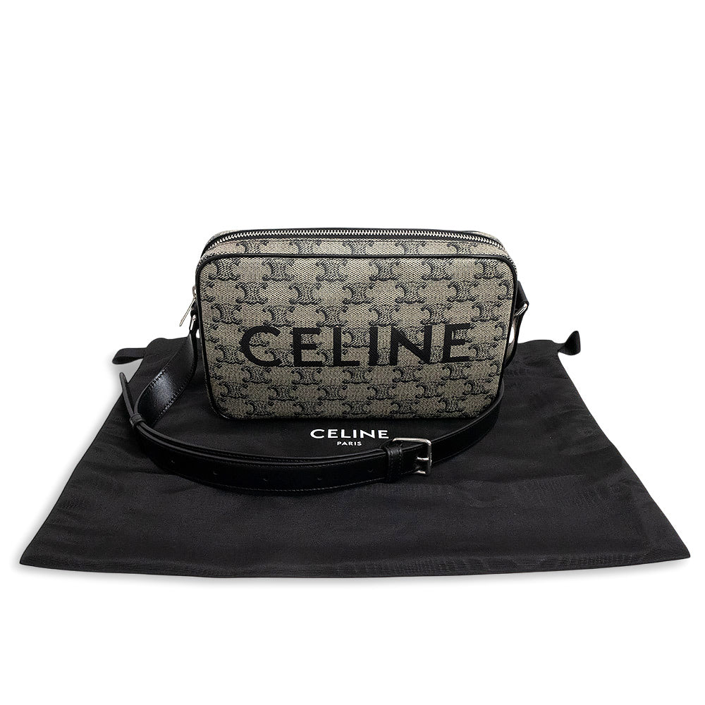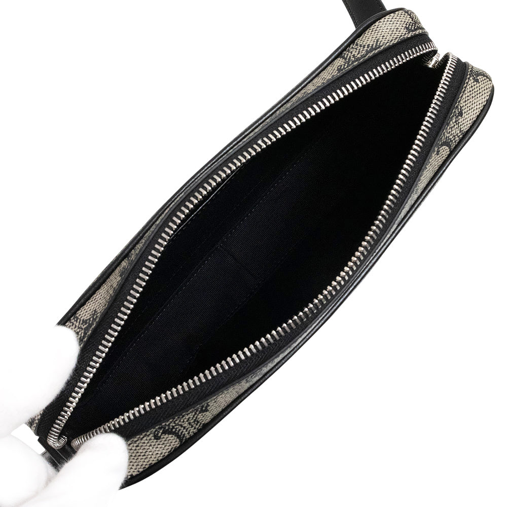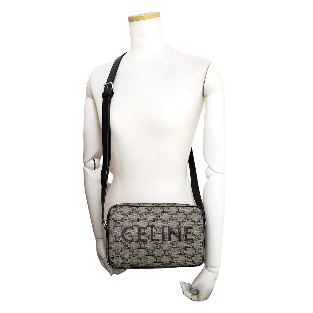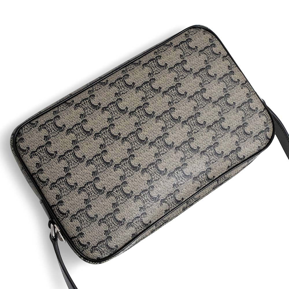 [Unused Display Item] Celine Medium Messenger Shoulder Bag, Crossbody, Triomphe Canvas, Calfskin Leather, Beige, Black, Silver Hardware, 194502GED