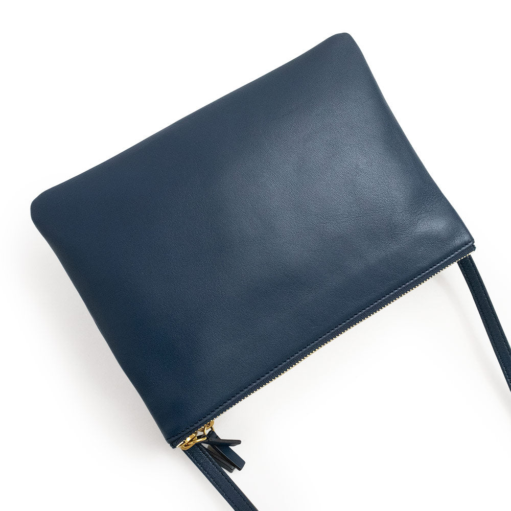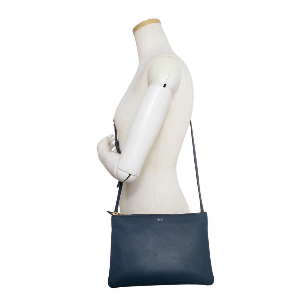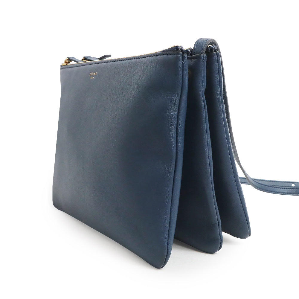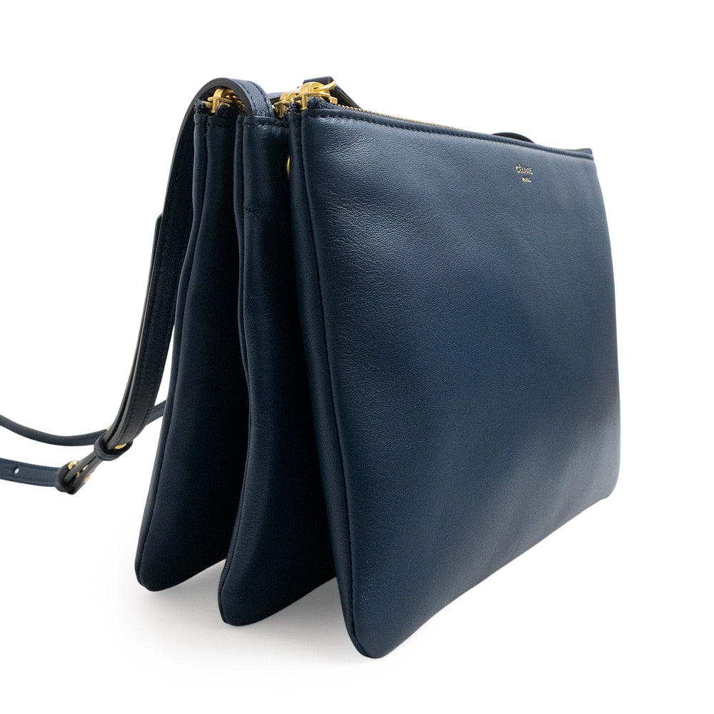 [Excellent Condition] Celine Trio Large Shoulder Bag, Crossbody, Lambskin Leather, Navy Blue with Gold Hardware, 192043