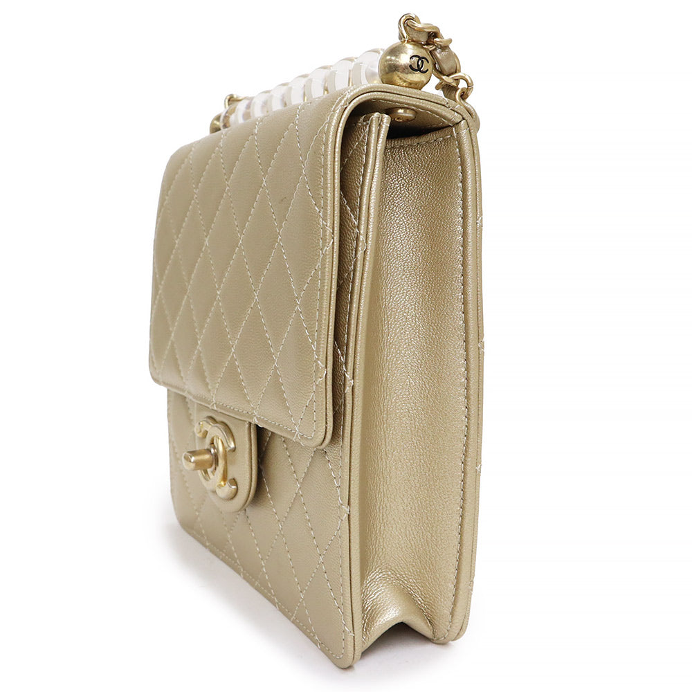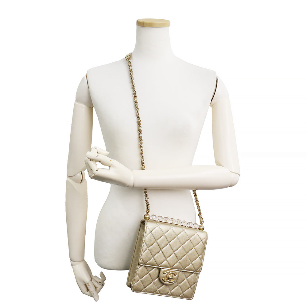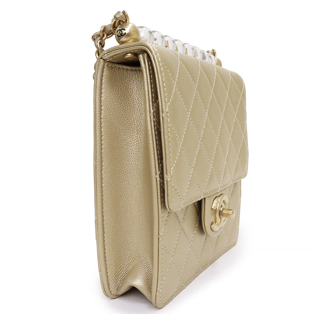 [Unused display item] CHANEL Matelasse Chic Pearl Acrylic Beads Flap Bag Chain Shoulder Bag Crossbody Goatskin Leather Gold AS0584