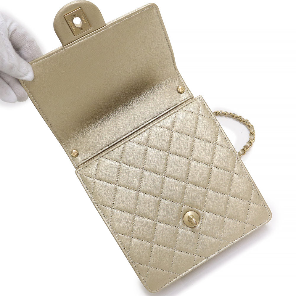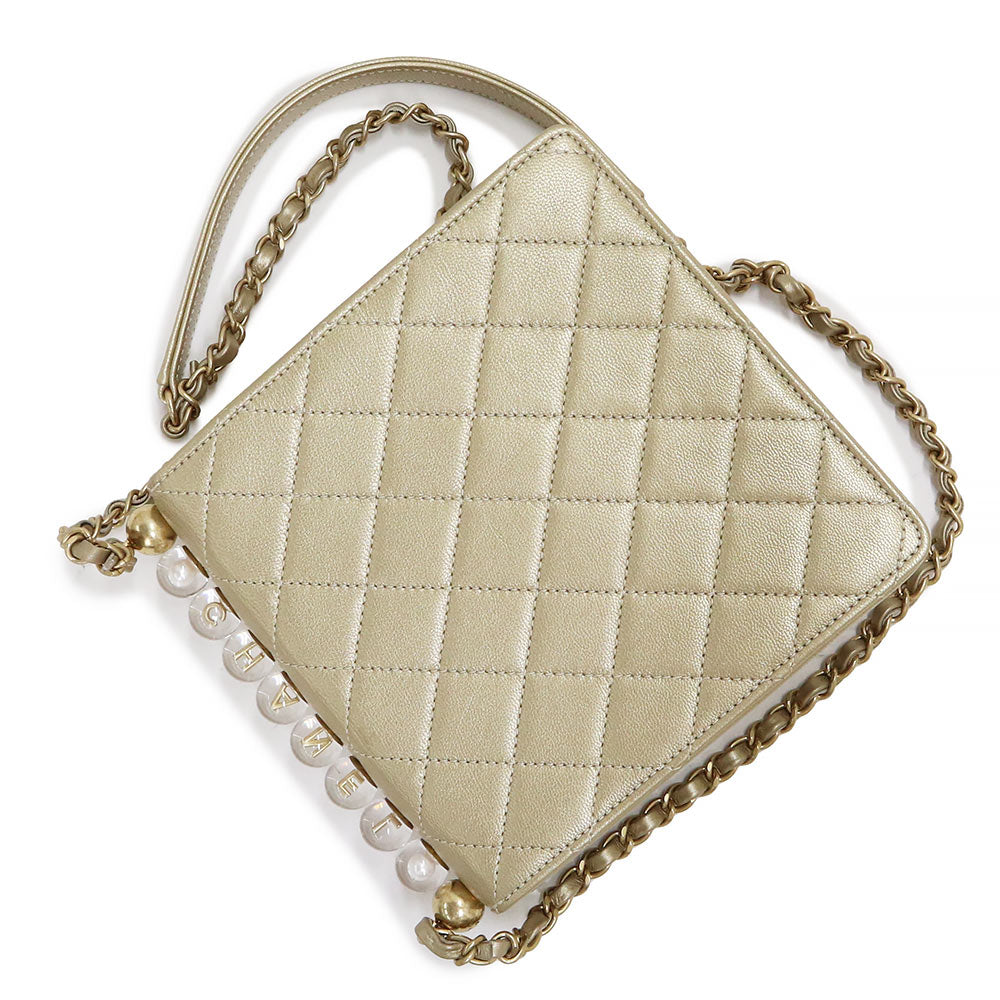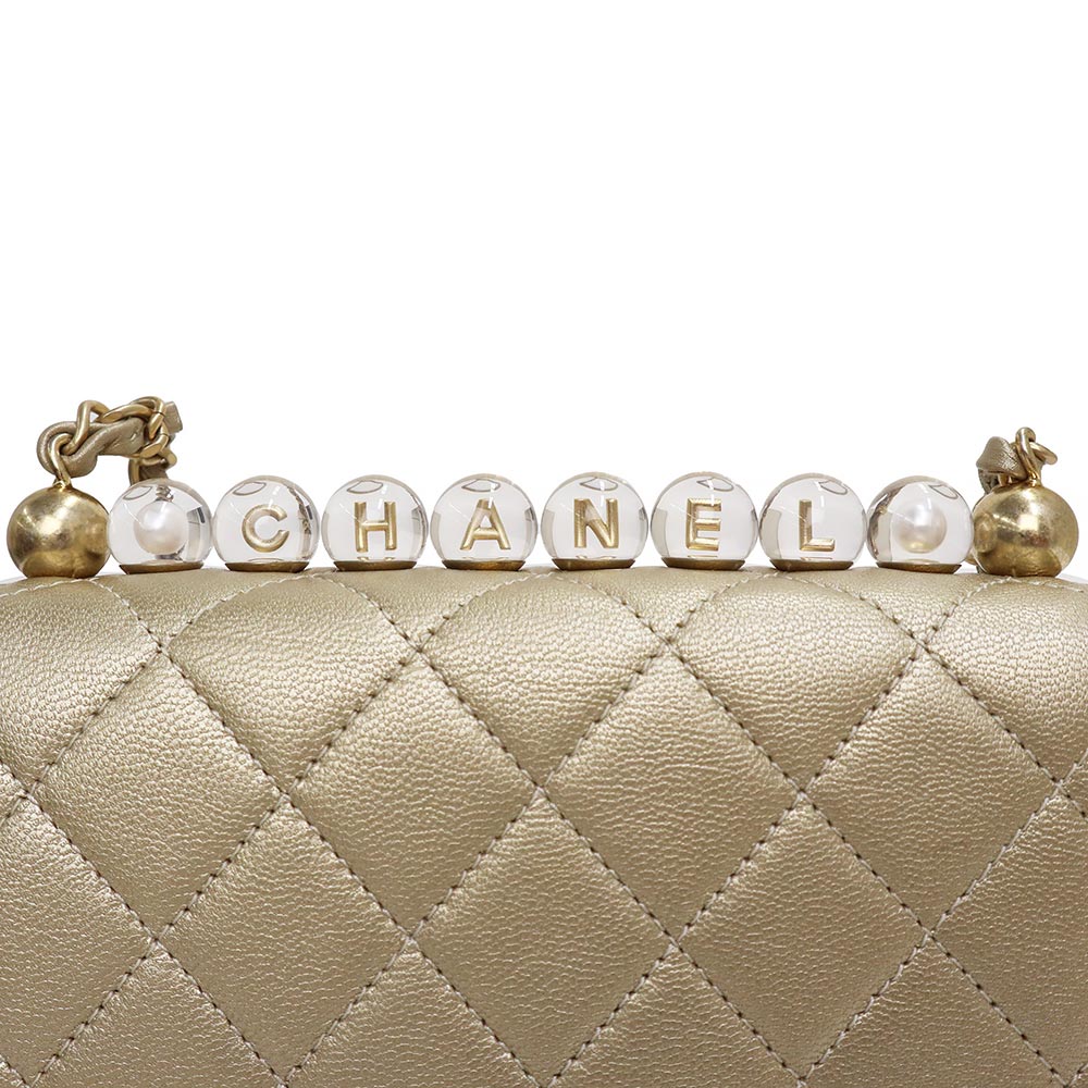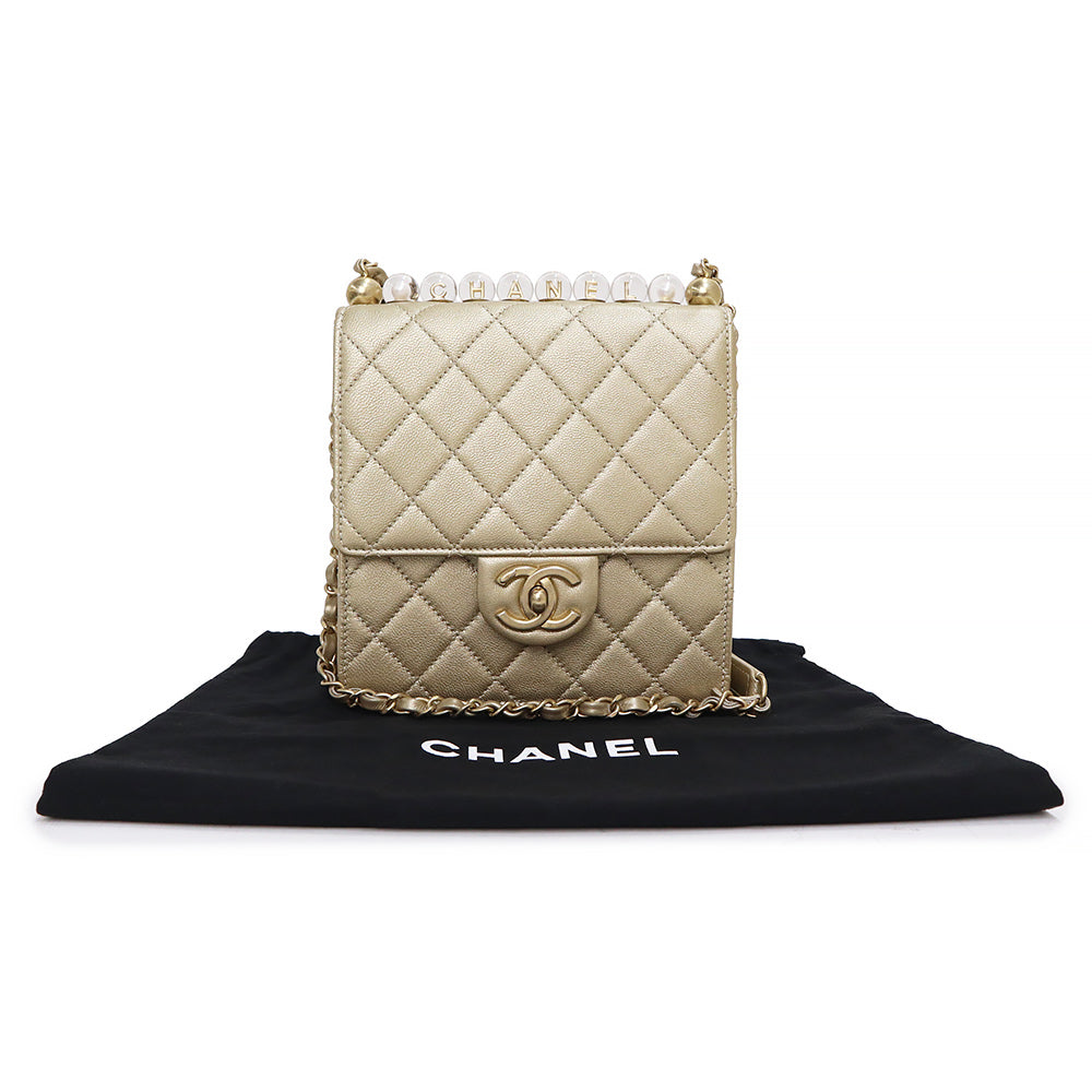 [Unused display item] CHANEL Matelasse Chic Pearl Acrylic Beads Flap Bag Chain Shoulder Bag Crossbody Goatskin Leather Gold AS0584