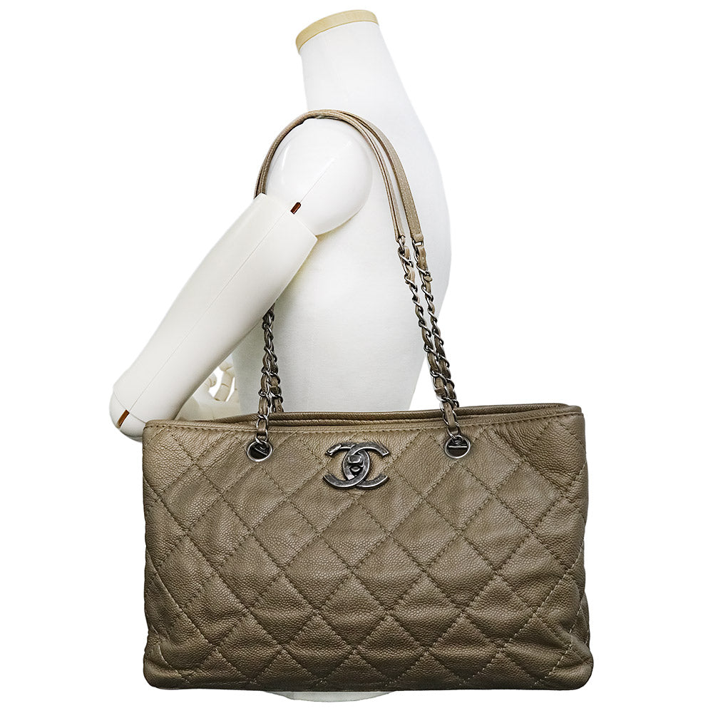 [Excellent Condition] CHANEL Matelasse Coco Mark Chain Tote Bag in Caviar Leather with Bronze Metallic Brown (A90451)
