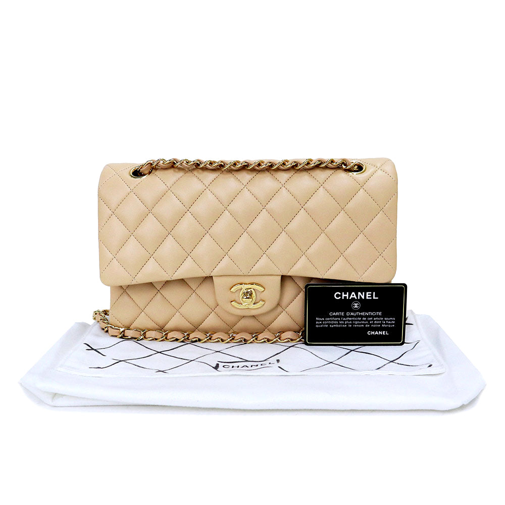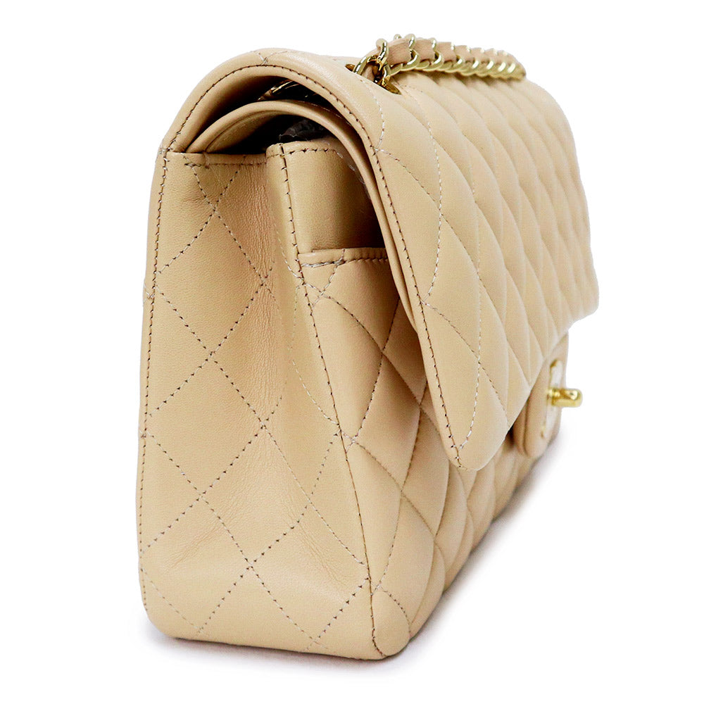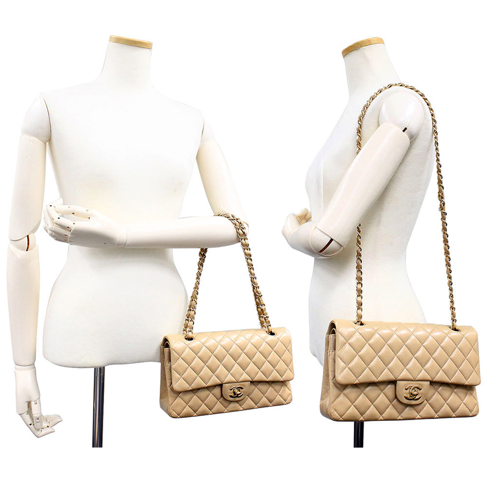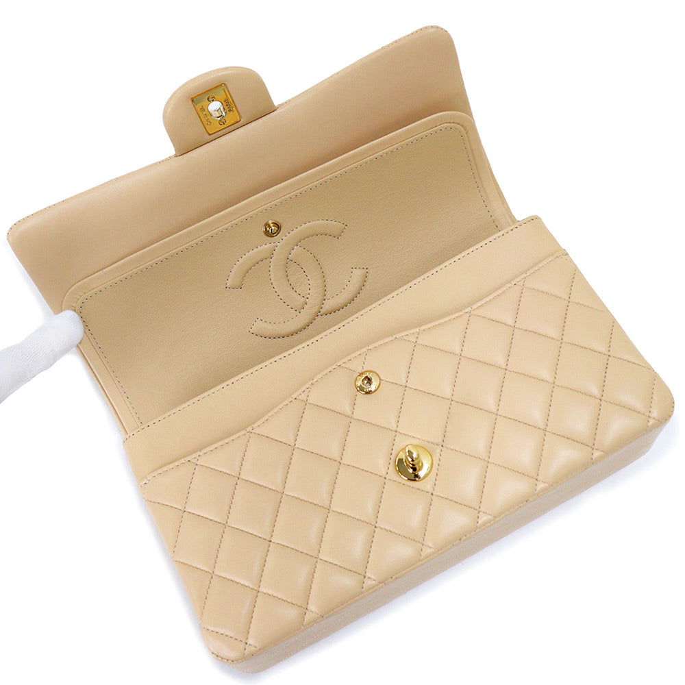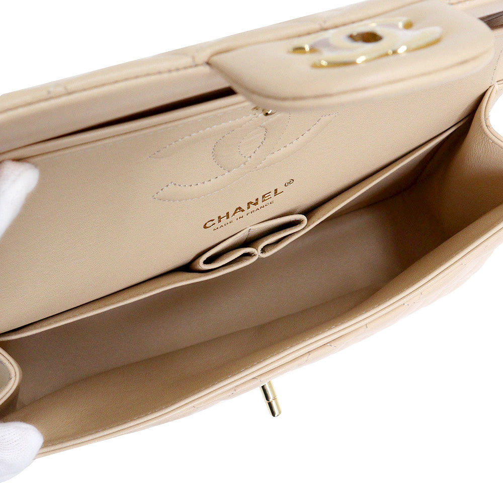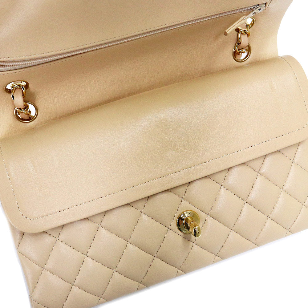 [Unused display item] CHANEL Matelasse 25 2way W flap W chain shoulder handbag crossbody lambskin leather beige gold hardware A01112