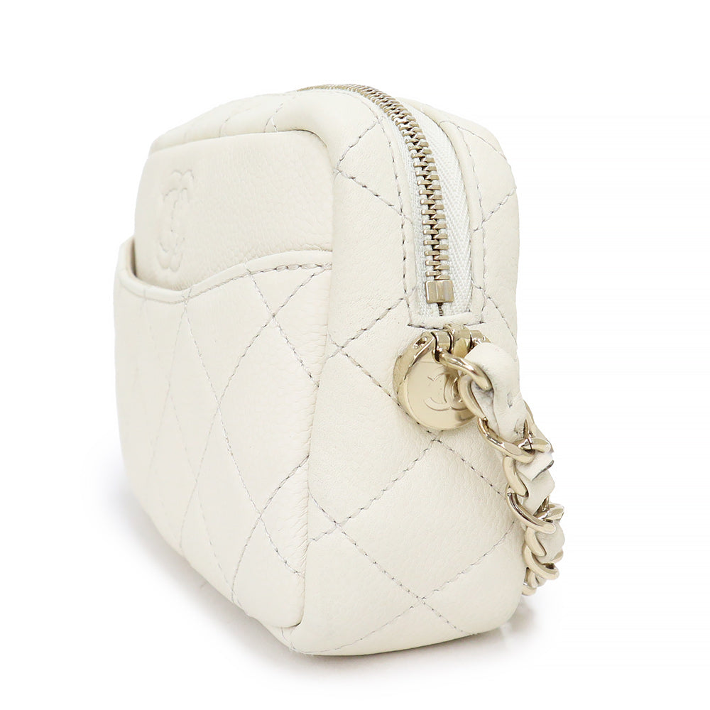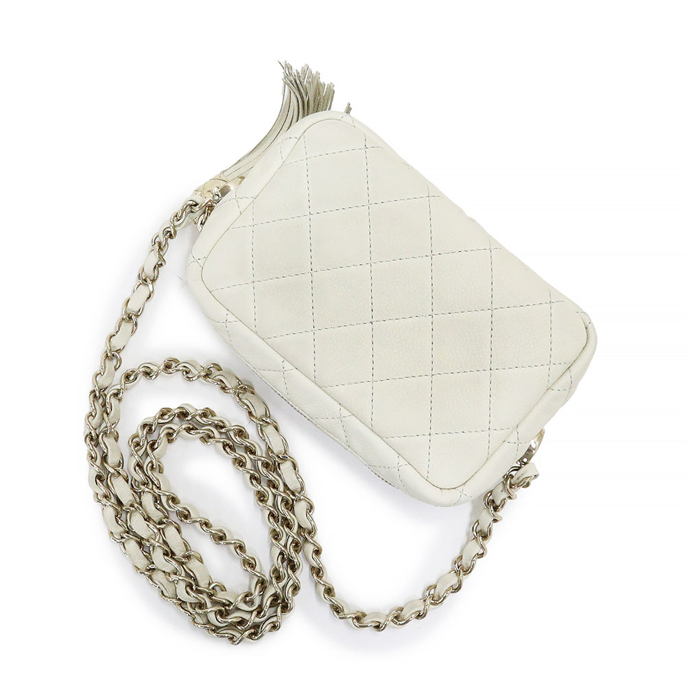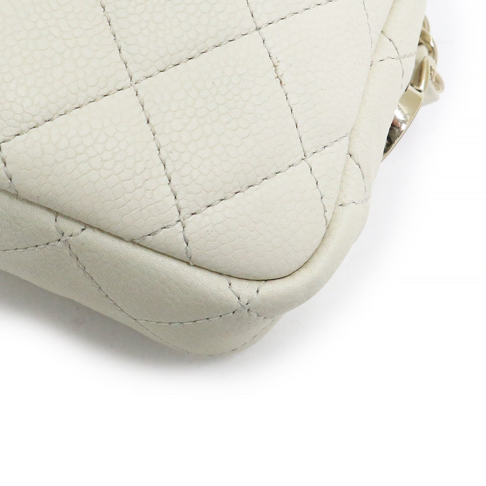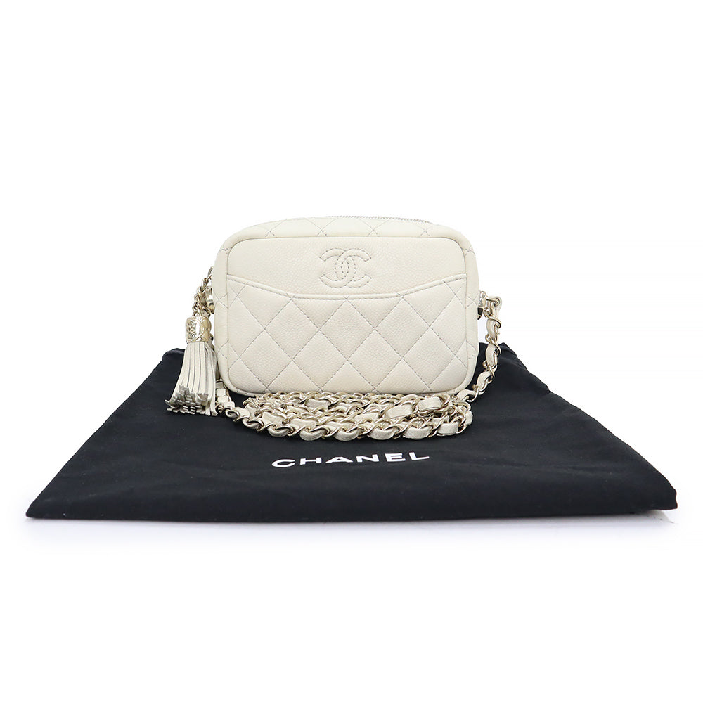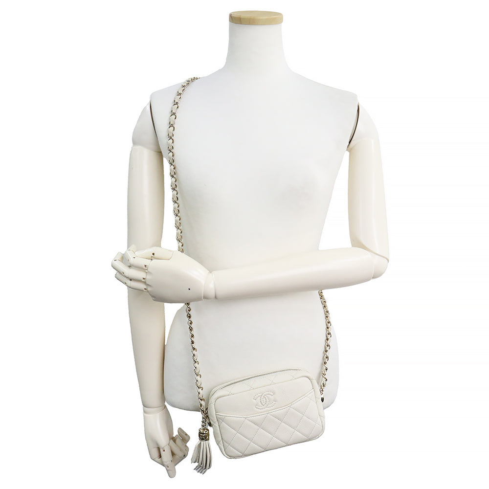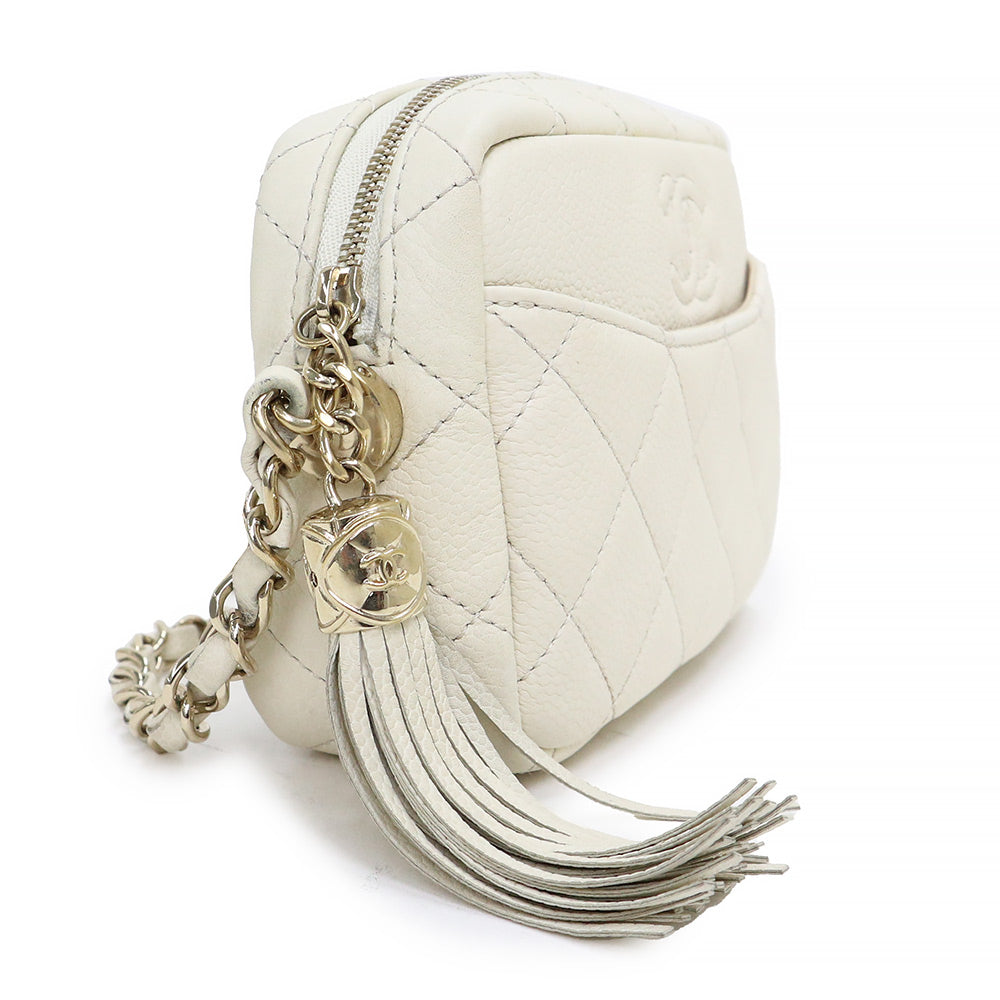 [Used] CHANEL Matelasse Chain Shoulder Fringe Coco Mark Shoulder Bag Camera Bag Crossbody Caviar Skin Leather Ivory White Gold Hardware A57717