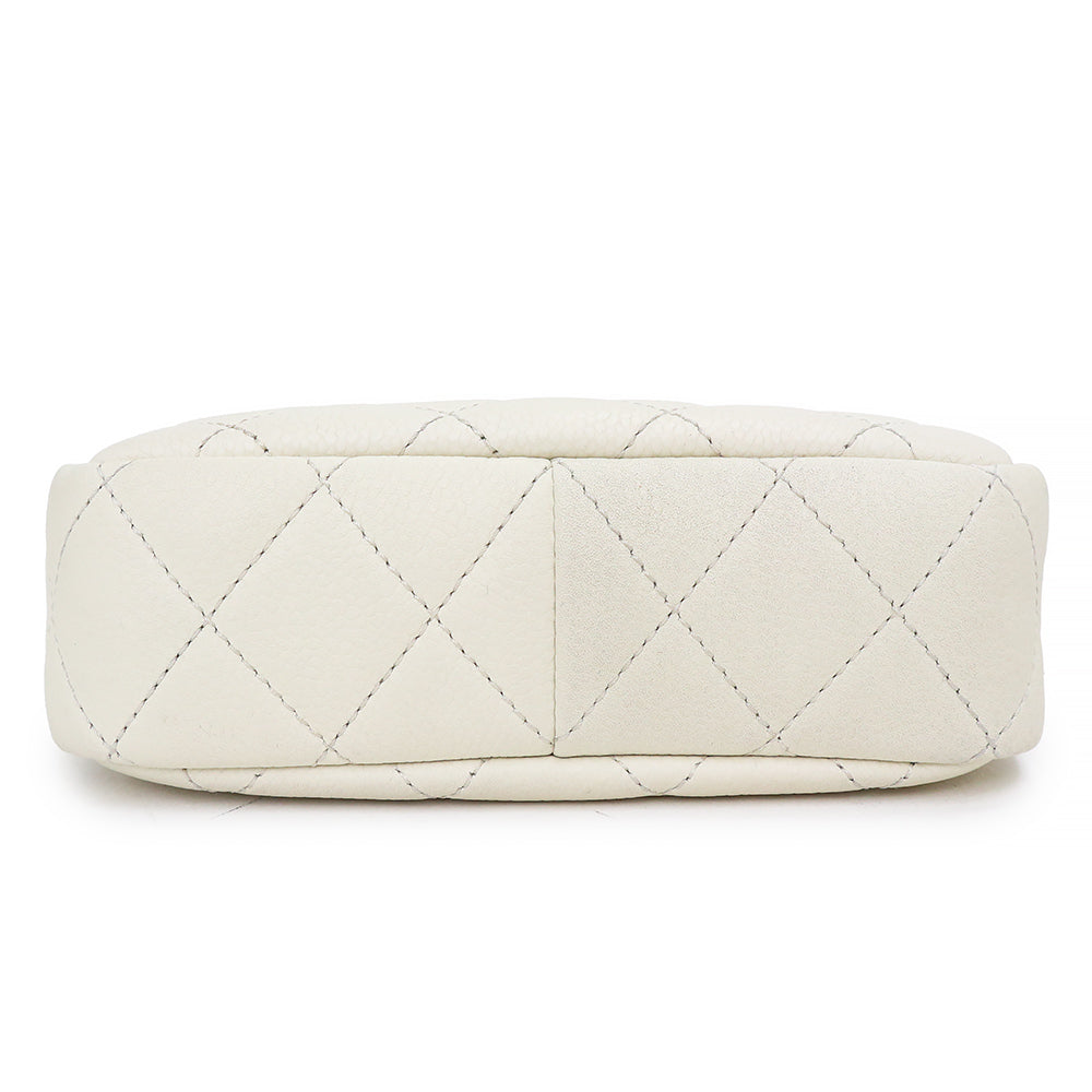 Chanel's Matelasse Chain Shoulder Bag is made from luxurious caviar leather in ivory, evoking a chic, mature look. |
