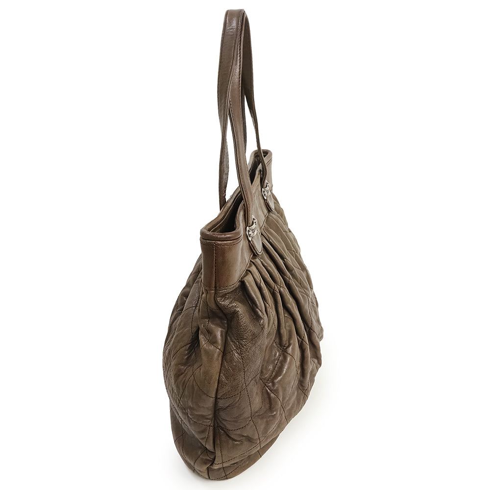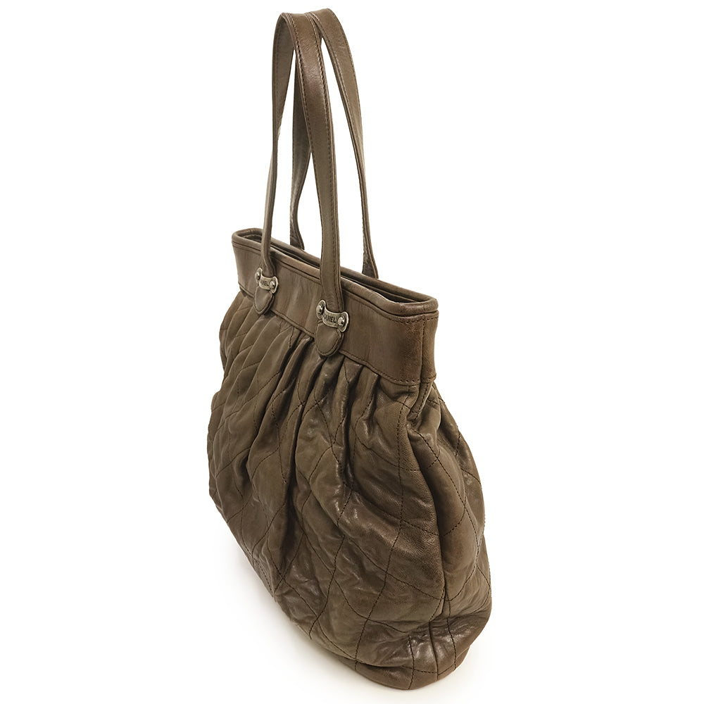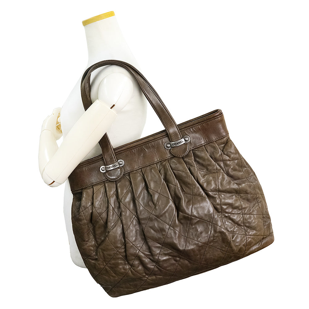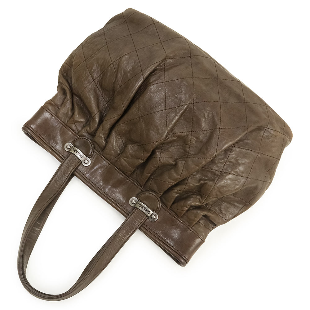 [Used] CHANEL Matelasse Coco Mark Logo Tote Bag Vintage Leather Brown Antique Silver Metal Fittings