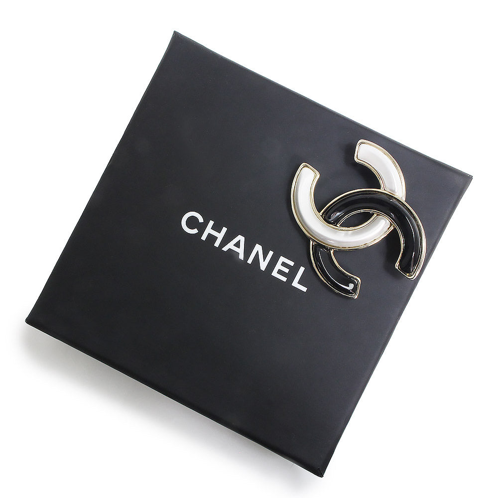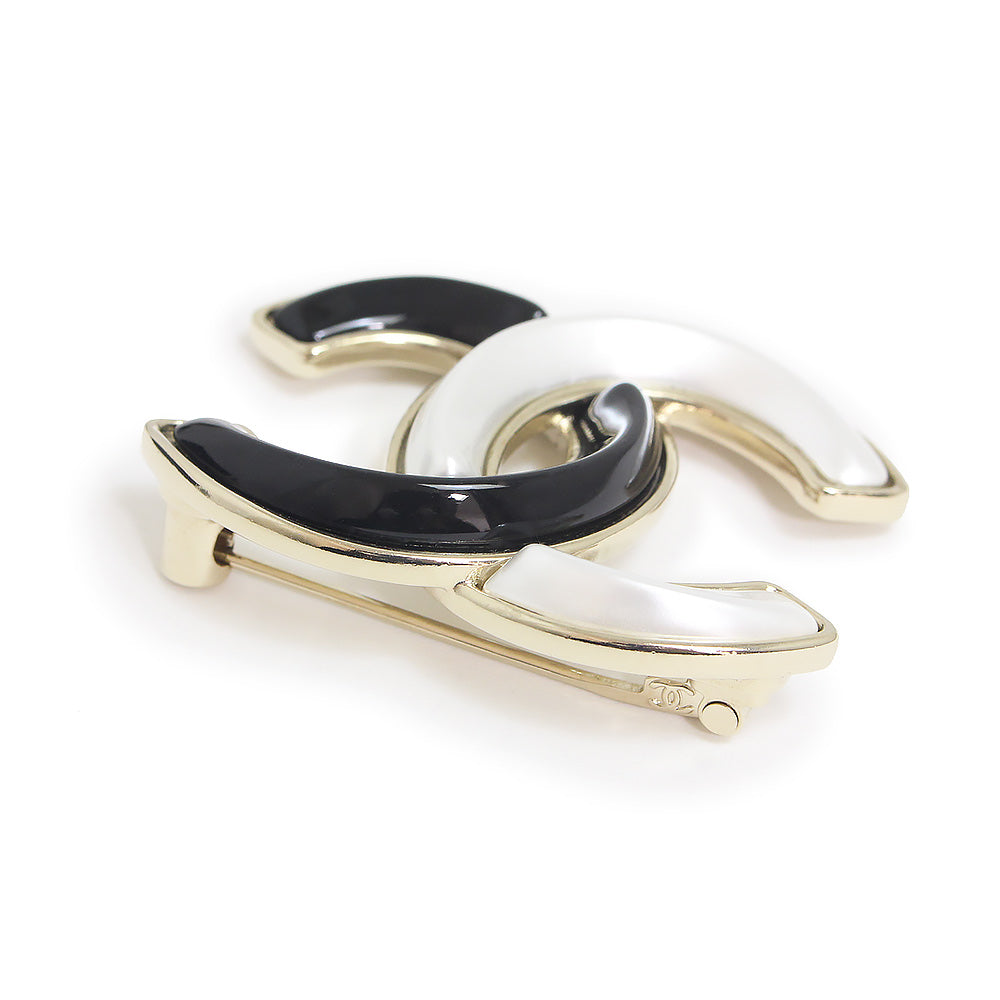 [New and unused] CHANEL Coco Mark Brooch Black White Gold hardware AB9974 with box
