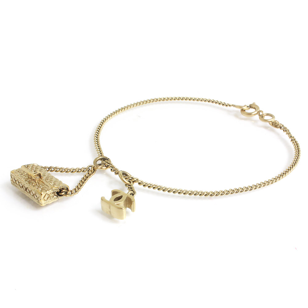 [New and unused] CHANEL Matelasse bag motif chain bracelet, gold, box included