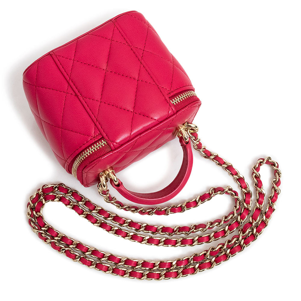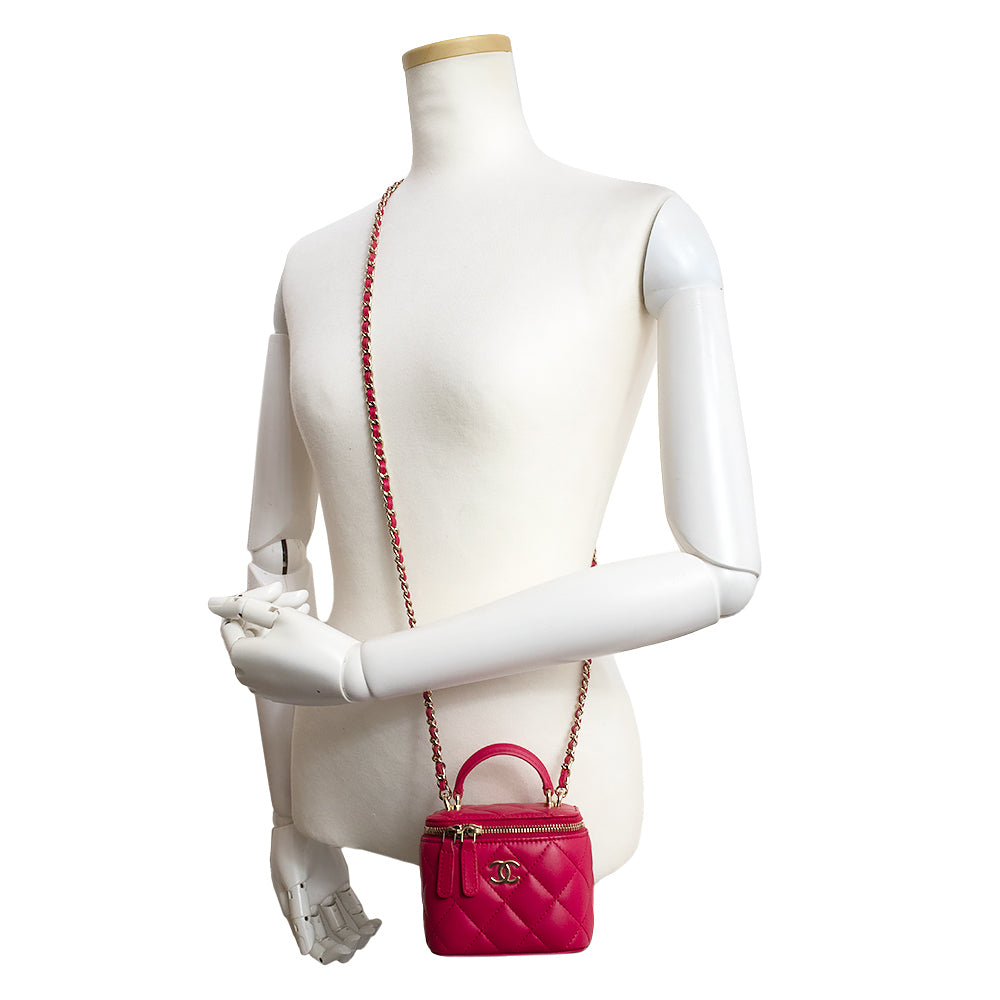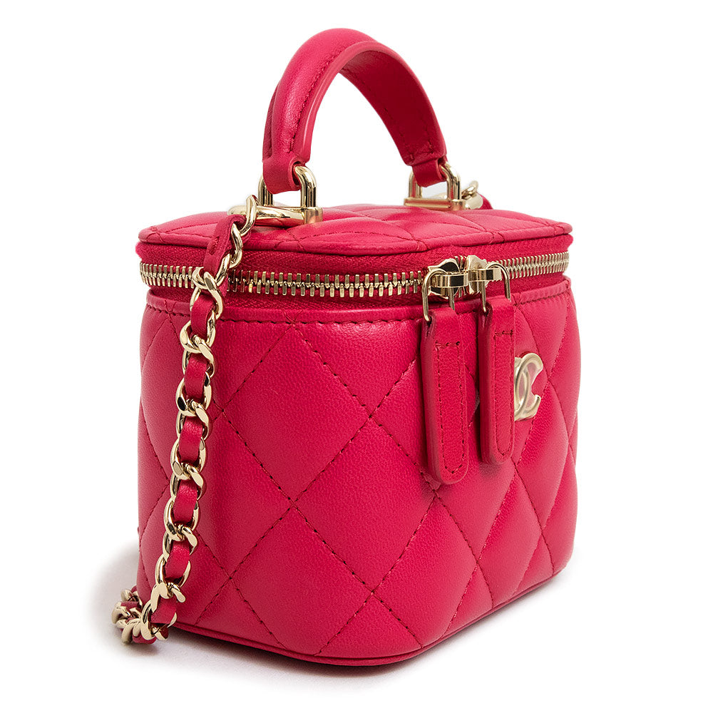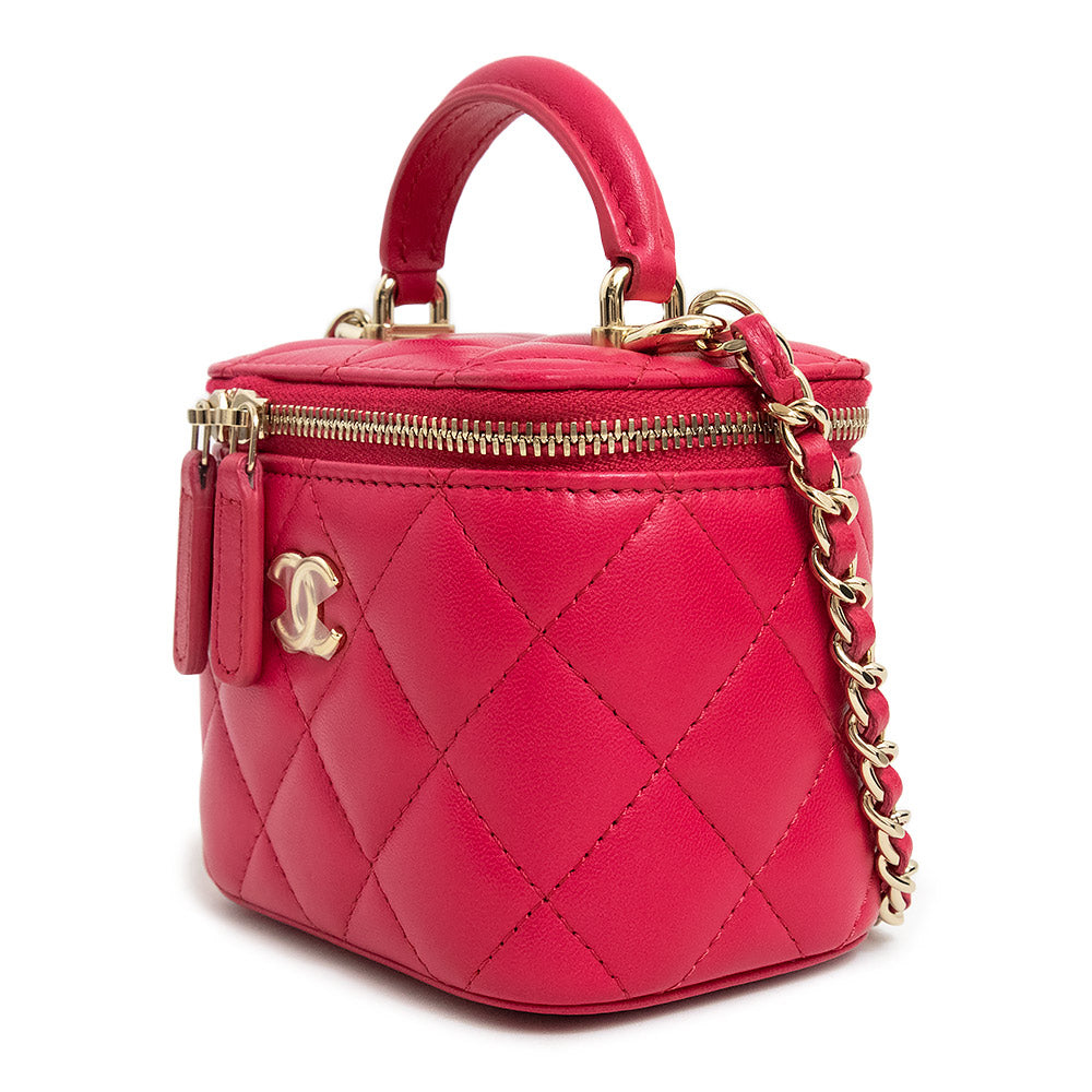 [New and unused] CHANEL Small Vanity Matelasse 2way Chain Shoulder Handbag Crossbody Lambskin Leather Coco Mark Pink Gold Hardware AP2198