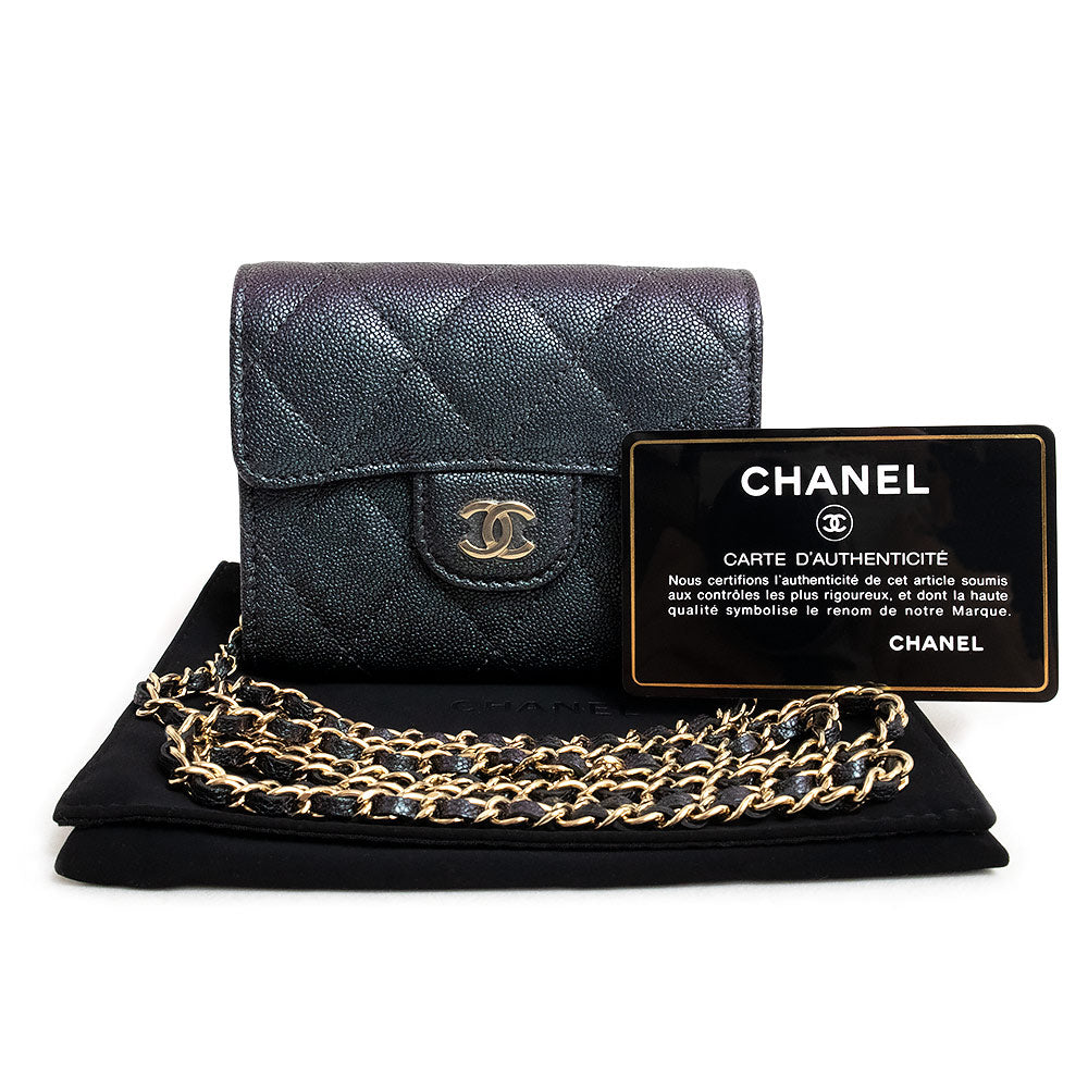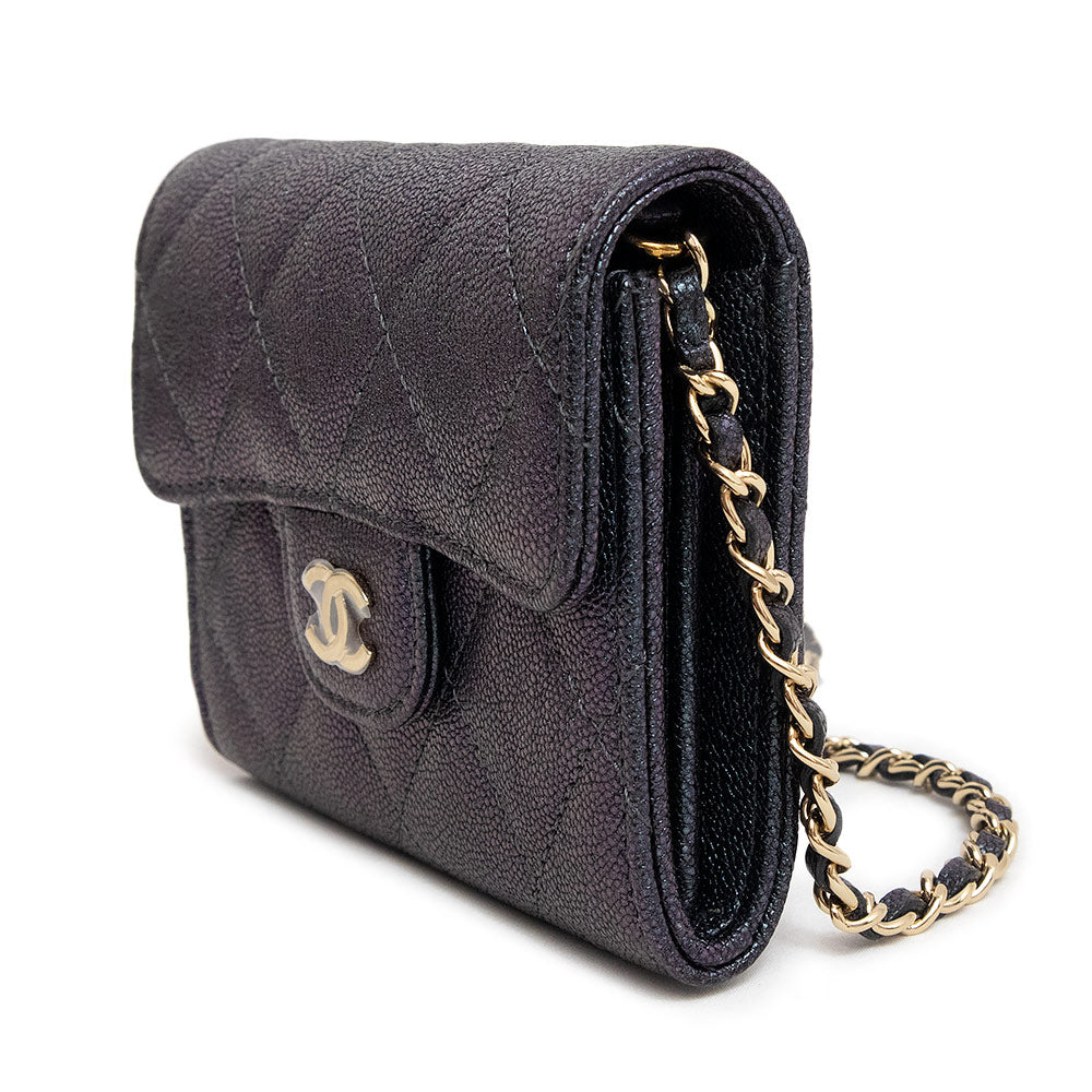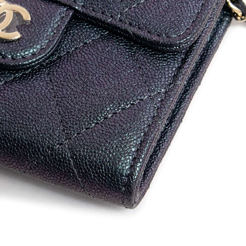 [Brand New/Unused] CHANEL Classic Matelasse Mini Chain Wallet, Pochette, Shoulder/Crossbody Bag, Coin Purse, Wallet, Grained Calfskin Caviar Leather, Metallic Dark Purple, Gold Hardware