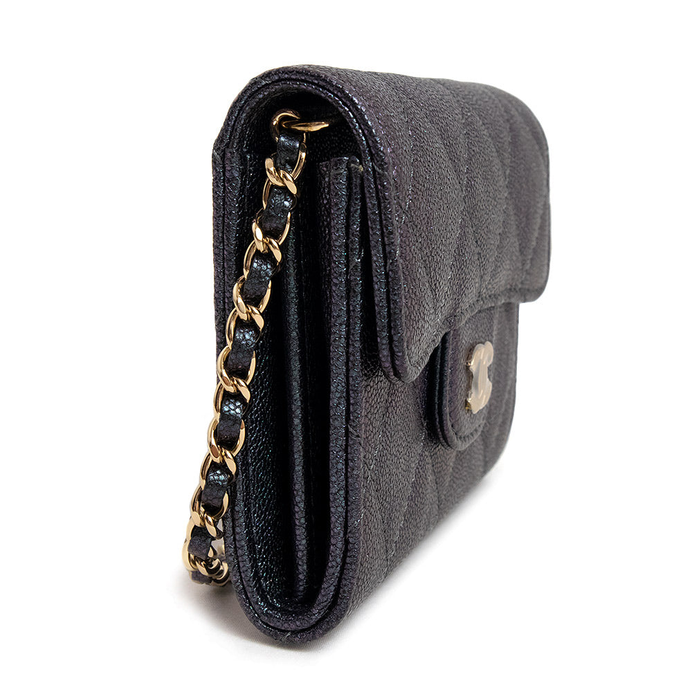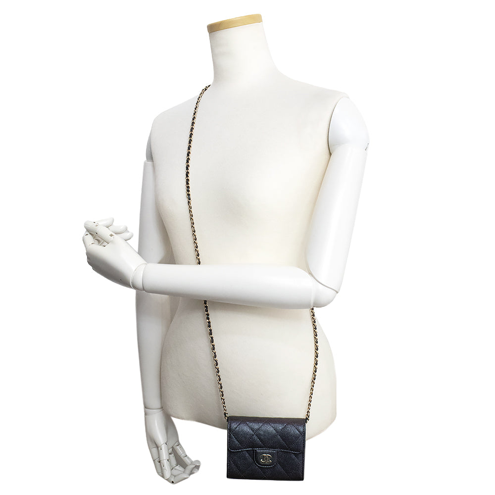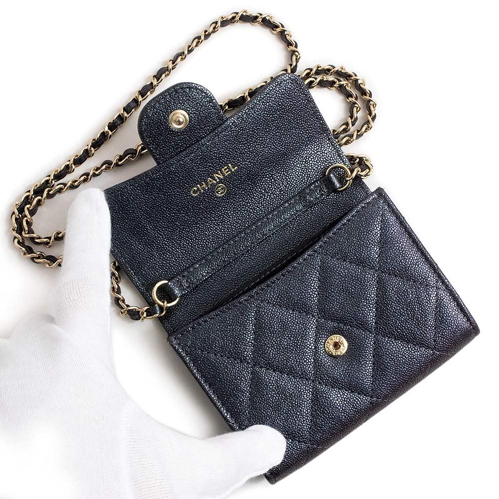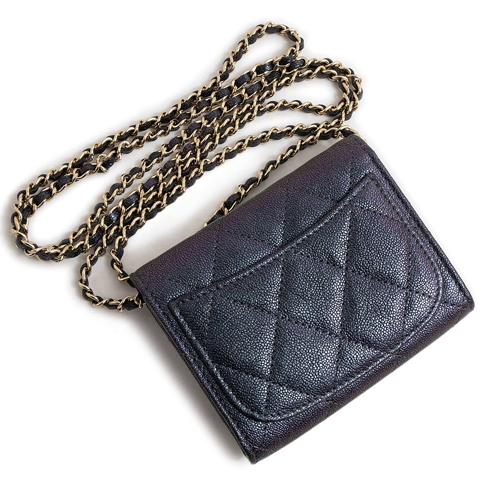 [Brand New/Unused] CHANEL Classic Matelasse Mini Chain Wallet, Pochette, Shoulder/Crossbody Bag, Coin Purse, Wallet, Grained Calfskin Caviar Leather, Metallic Dark Purple, Gold Hardware