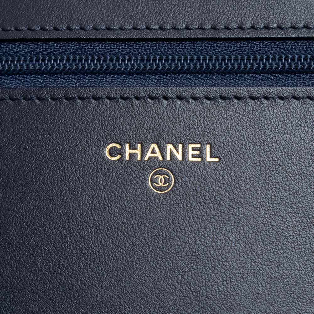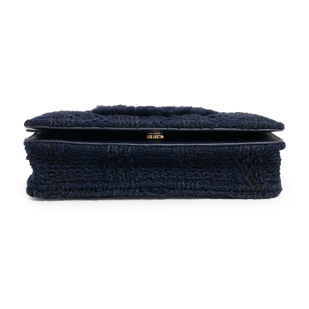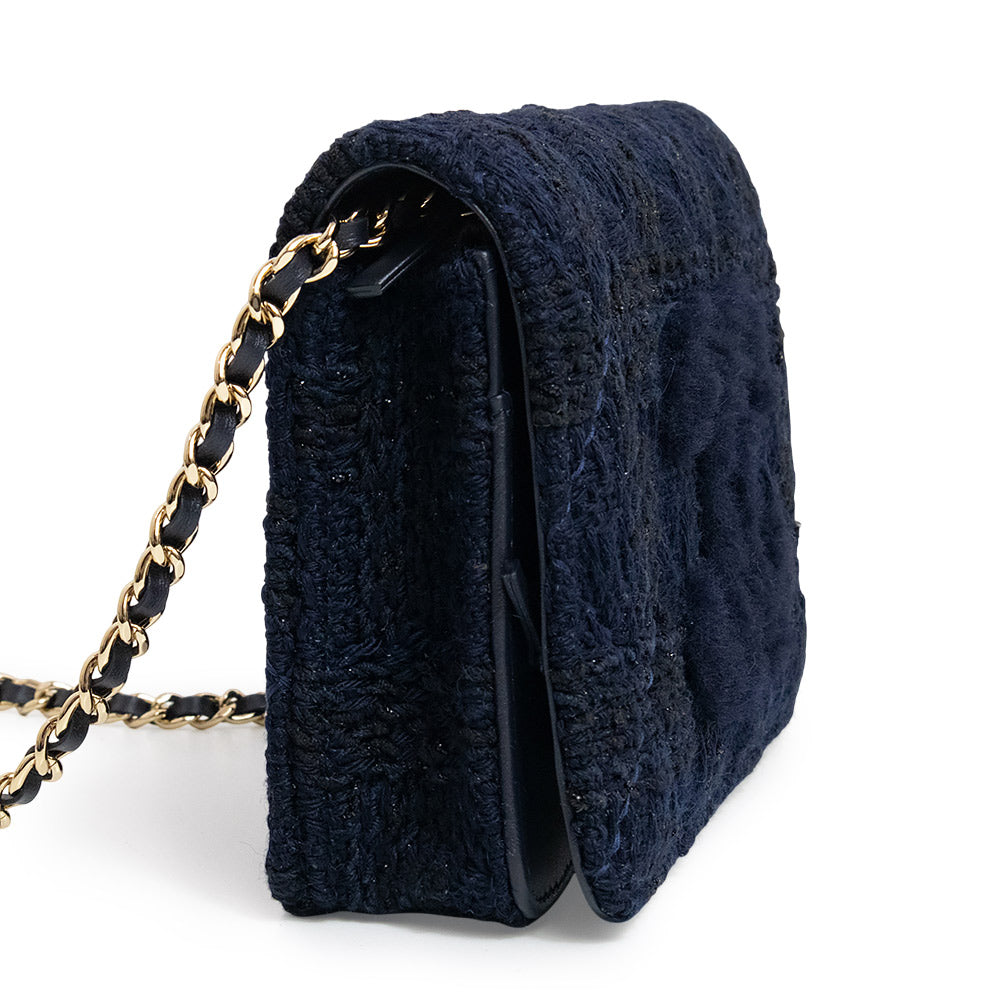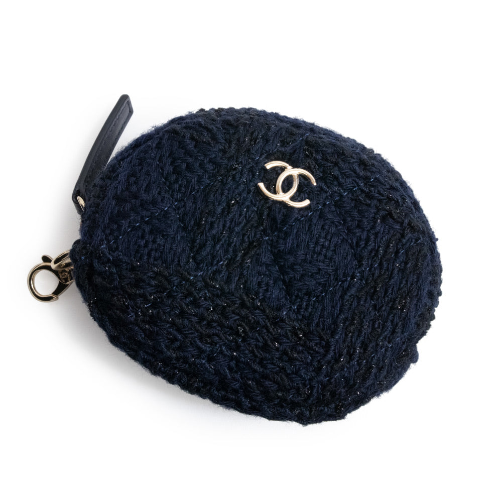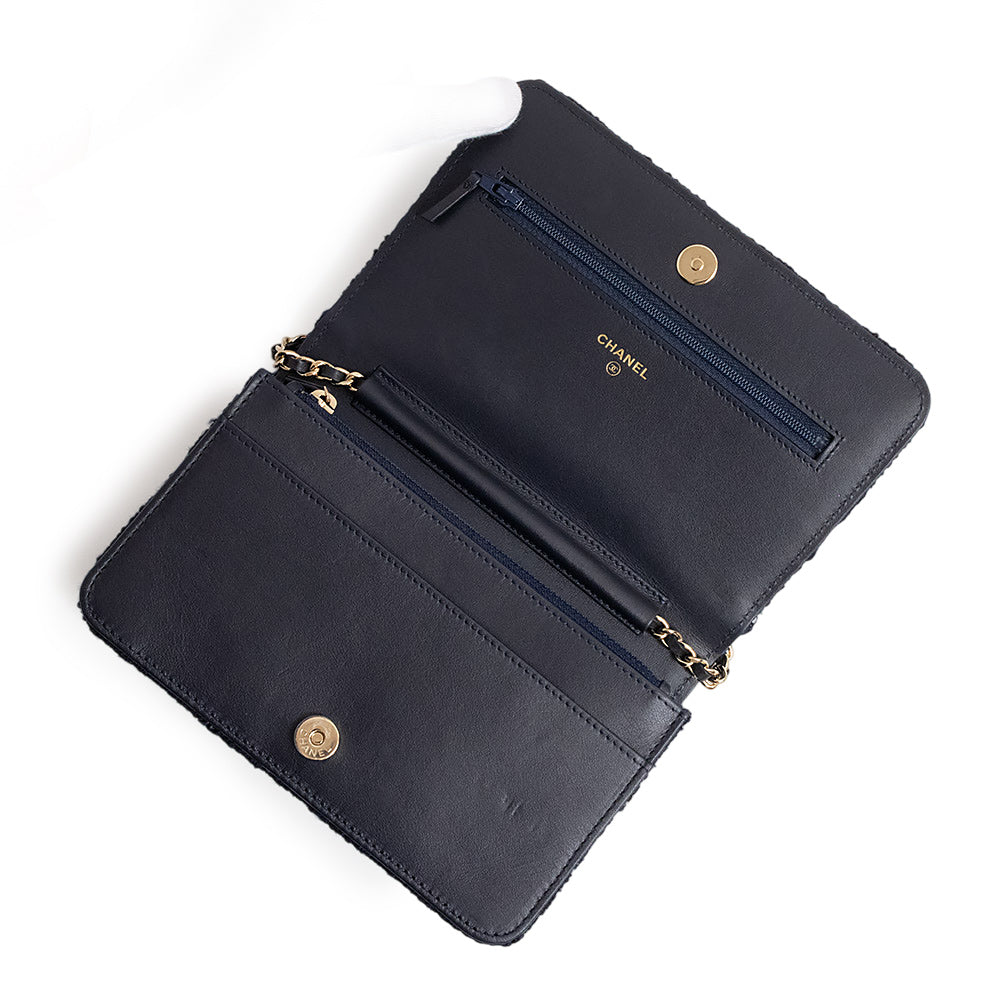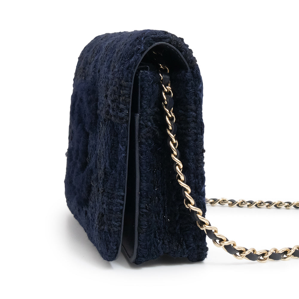 [Unused Display Item] CHANEL Matelasse Coco Mark Chain Wallet Shoulder Bag/Crossbody Long Wallet in Navy Tweed with Champagne Gold Hardware and Pouch