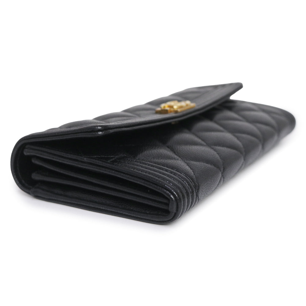 [Excellent Condition] CHANEL Boy Chanel Matelasse Bi-fold Long Wallet in Black Caviar Leather with Antique Gold Hardware A80286