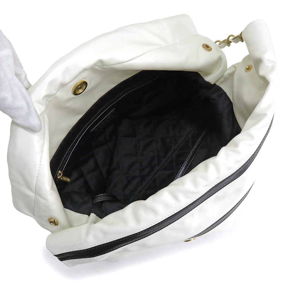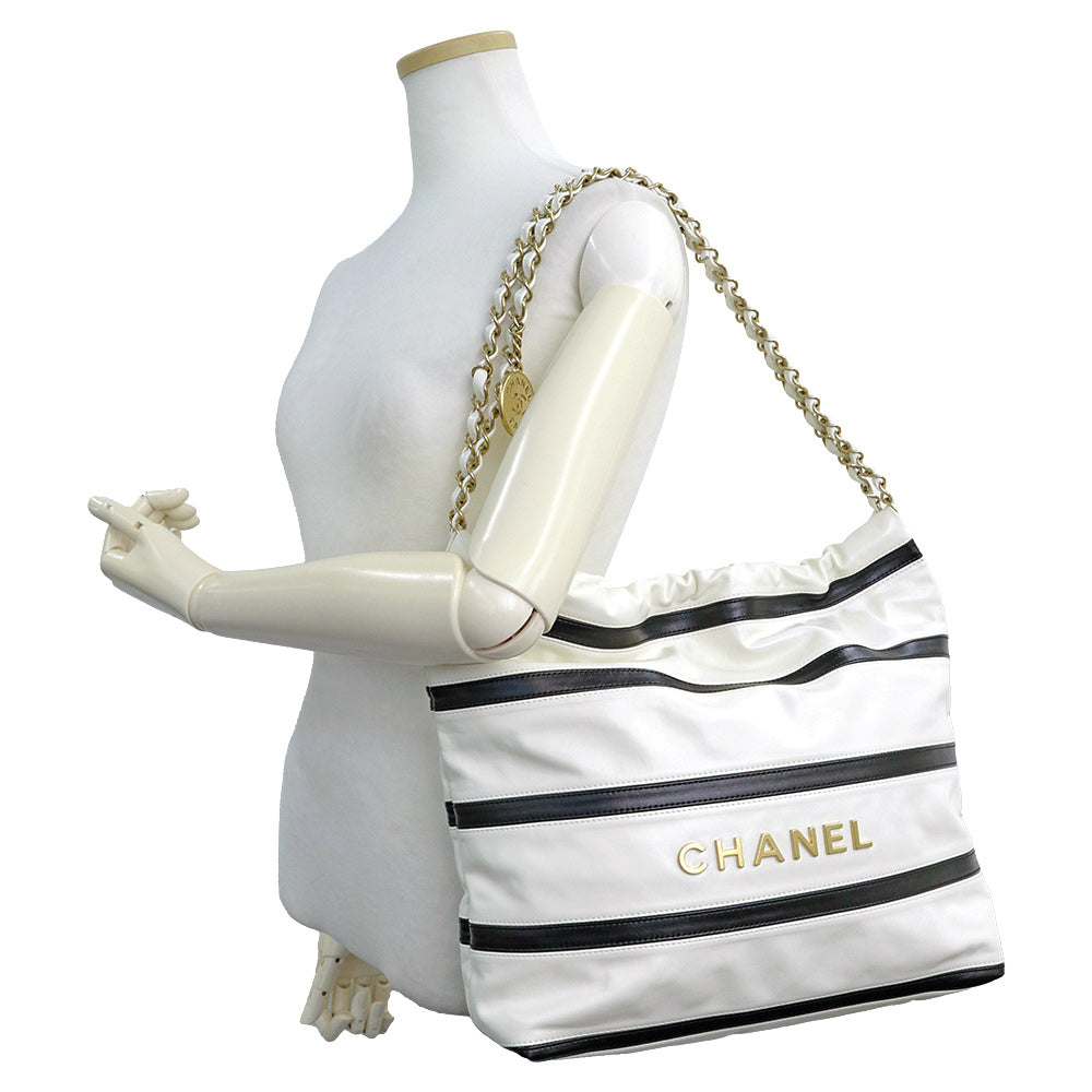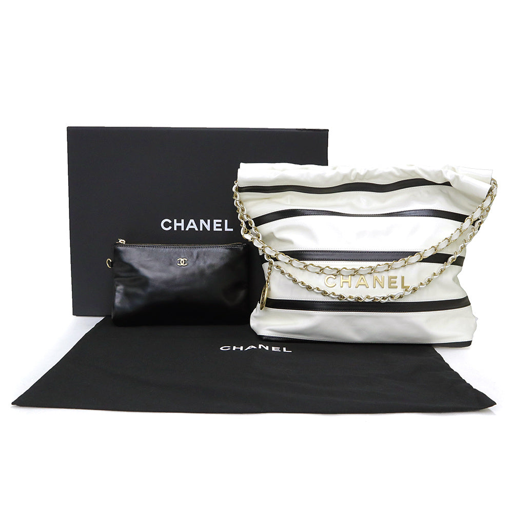 [Unused Display Item] CHANEL 22 Small Chain Handbag in White and Black Leather with Gold Hardware AS3260