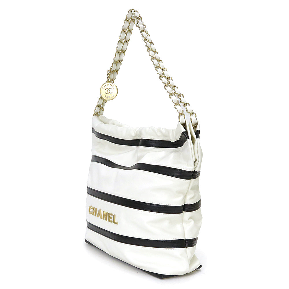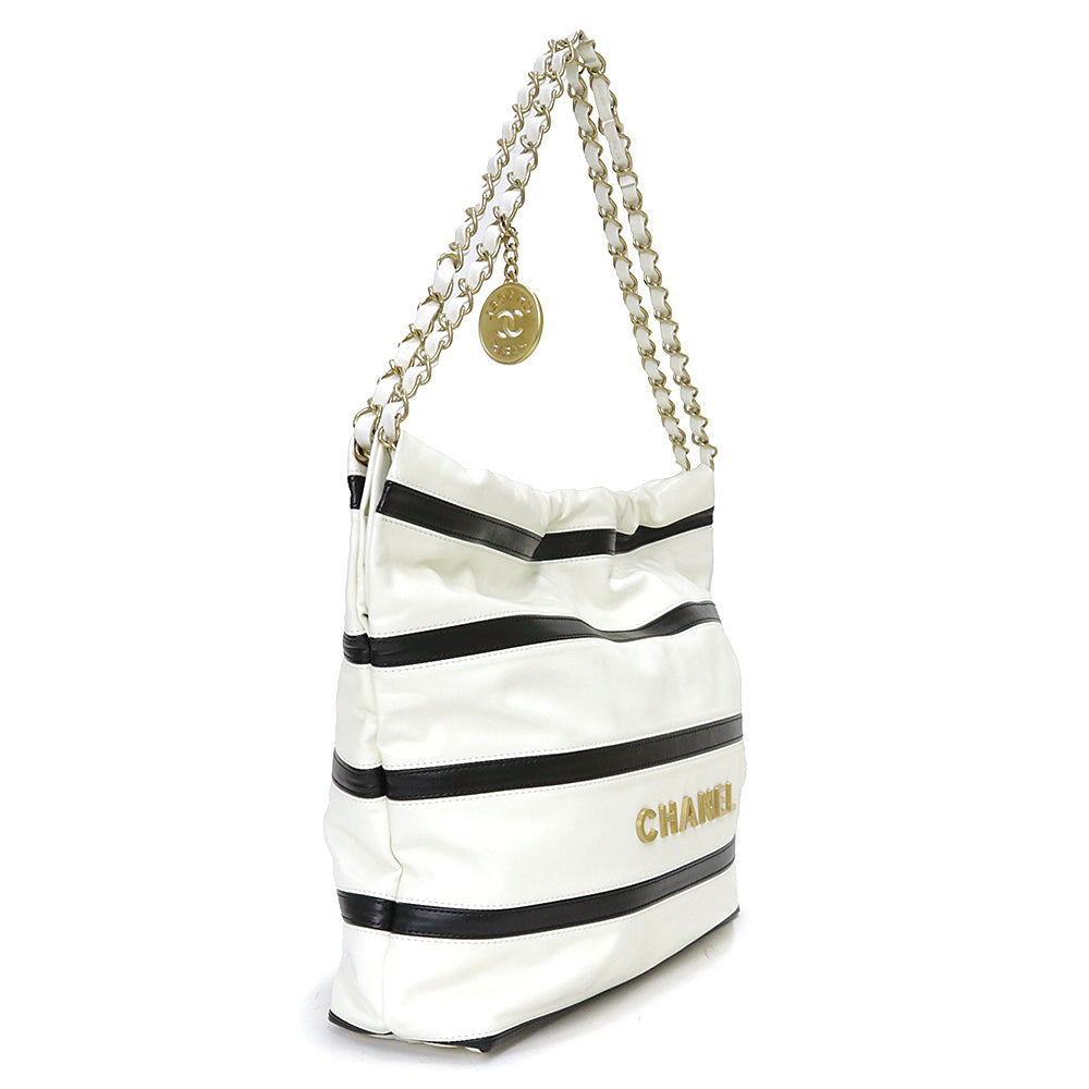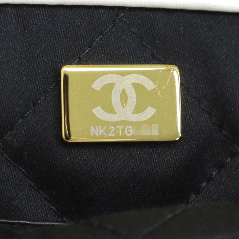 The "22 Small Handbag" is a perfect match for any sophisticated outfit. The white and black coloring evokes CHANEL, and the logo charm on the chain adds a stylish accent to the bag.