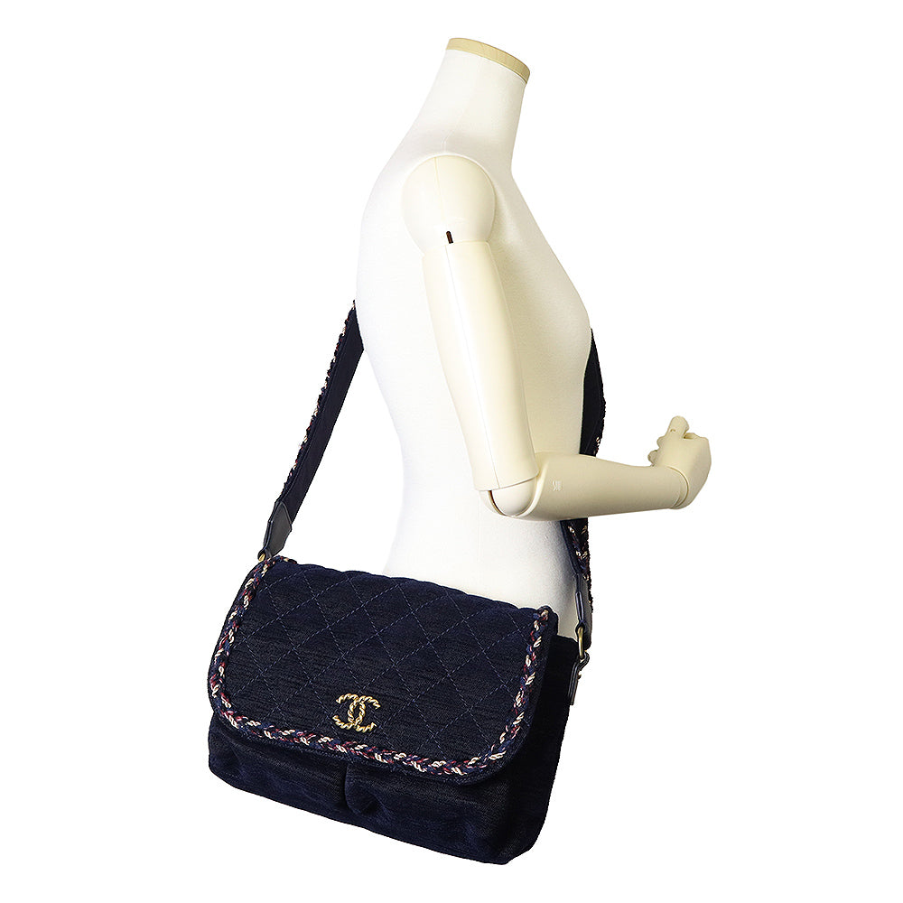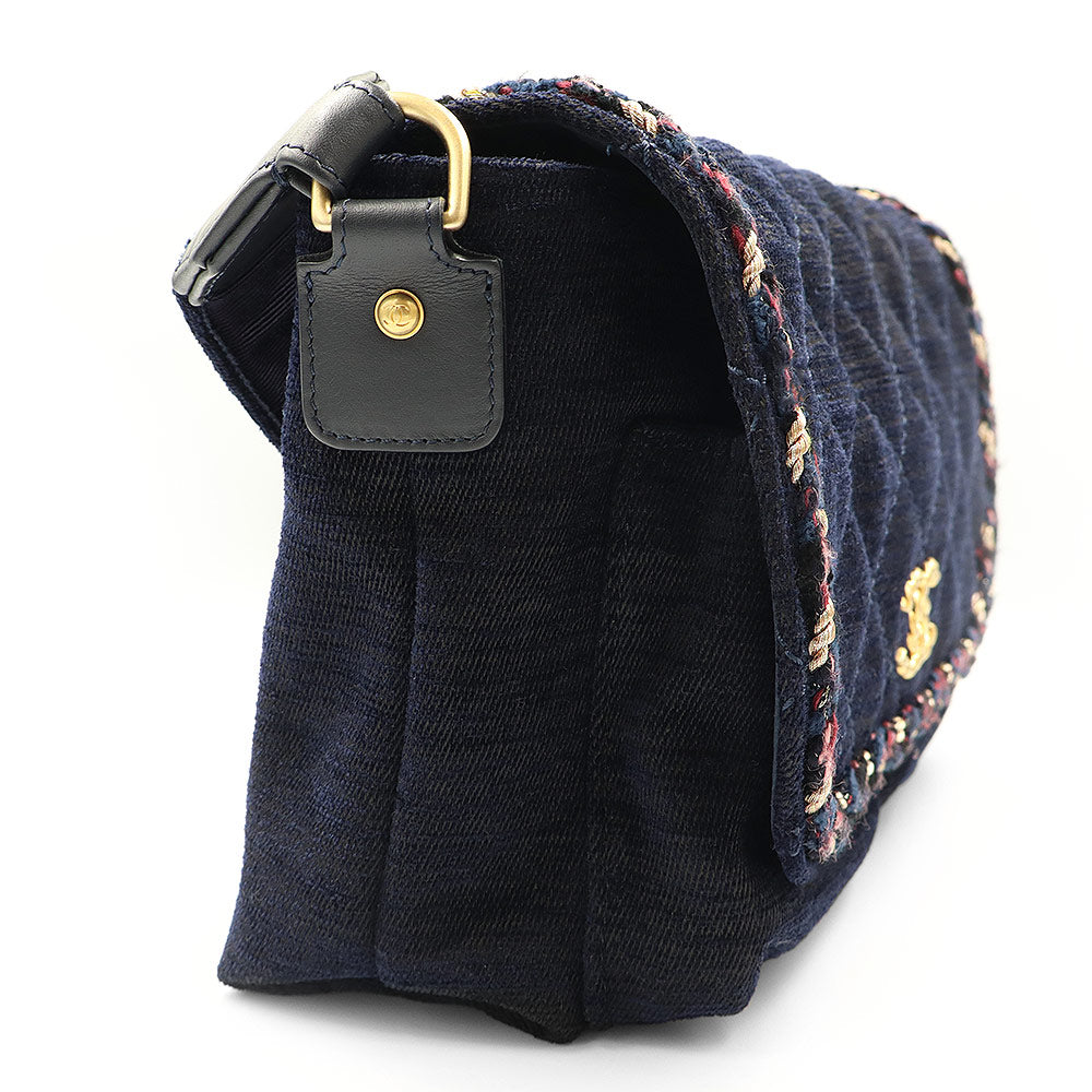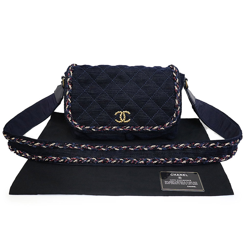 [Unused Display Item] CHANEL Salzburg Matelasse Shoulder Bag, Crossbody, Wool, Velvet, and Calfskin Leather, Navy Blue with Gold Hardware, A91821