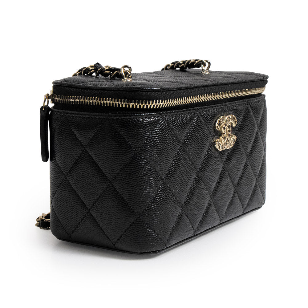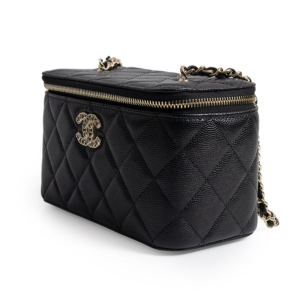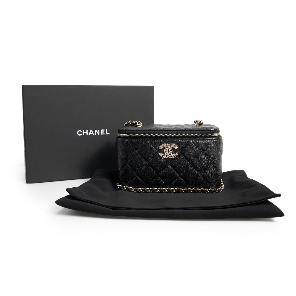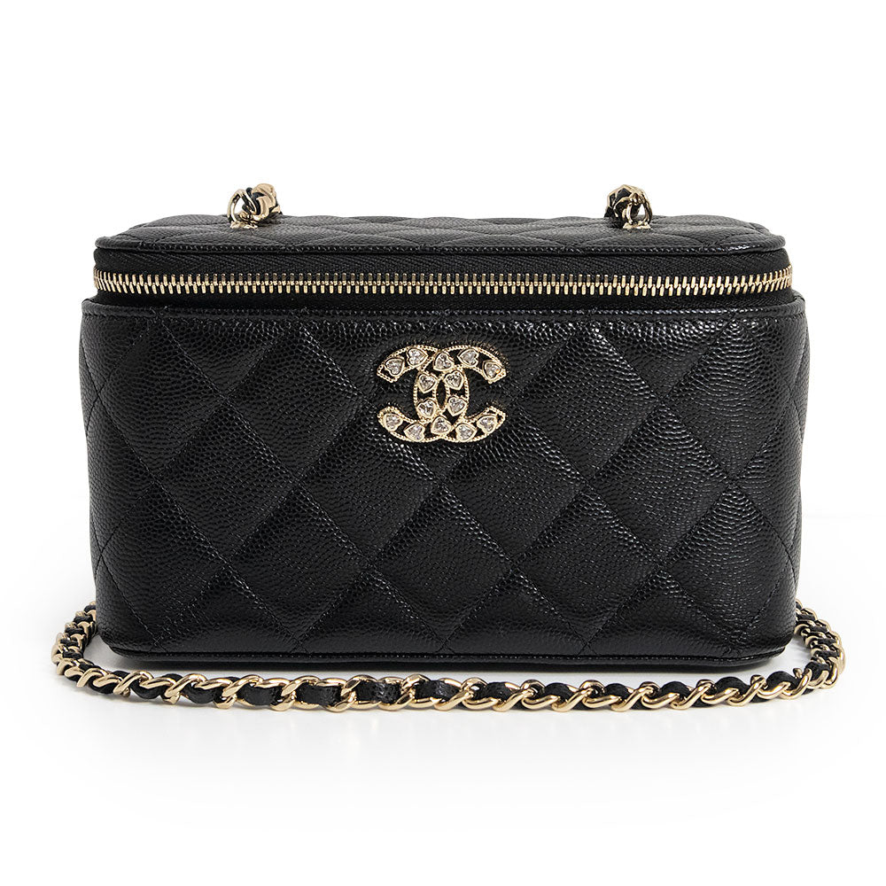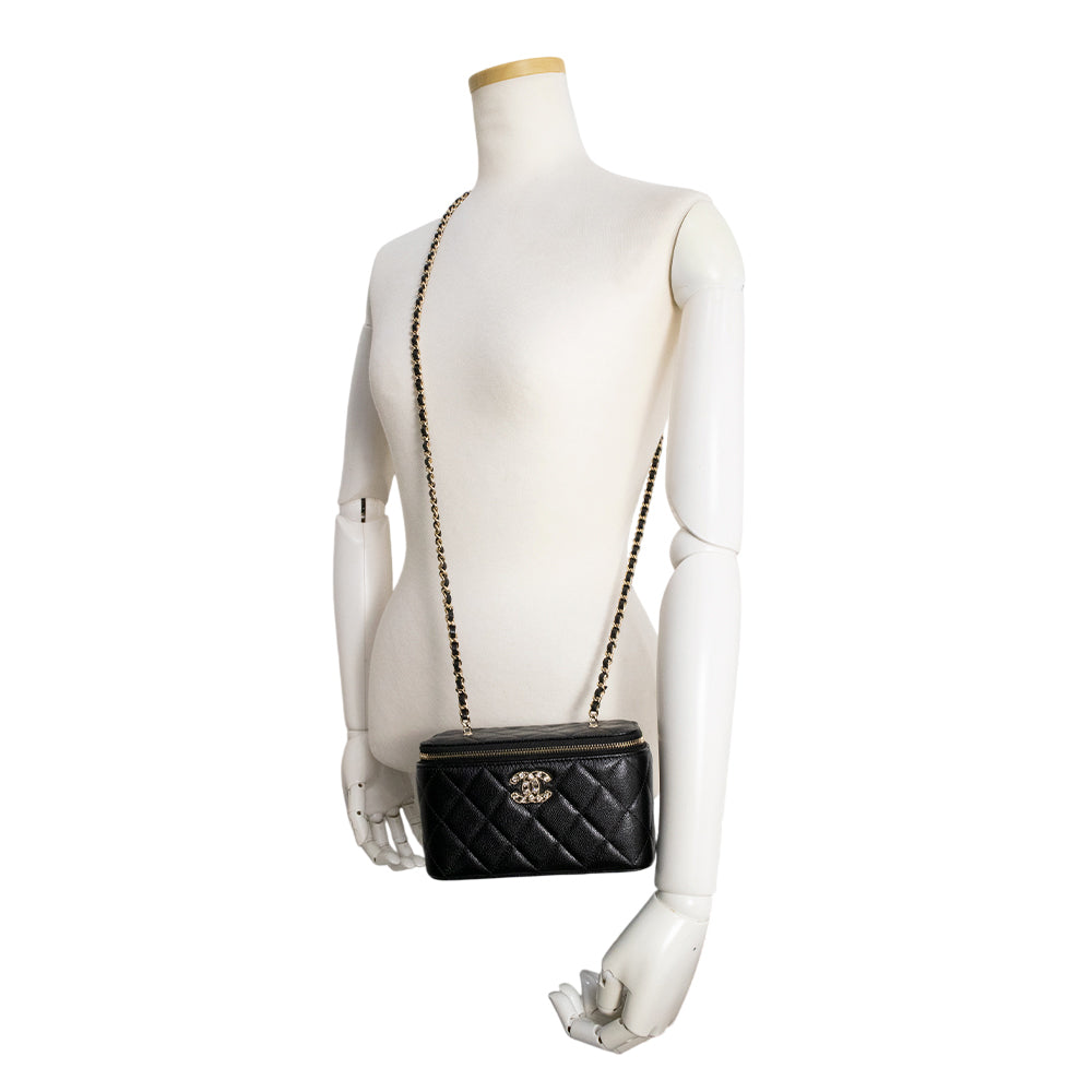 [Unused Display Item] CHANEL AP4530 Matelasse Heart Logo Vanity Chain Shoulder Bag, Crossbody, Caviar Leather, Black with Gold Hardware, Box Included