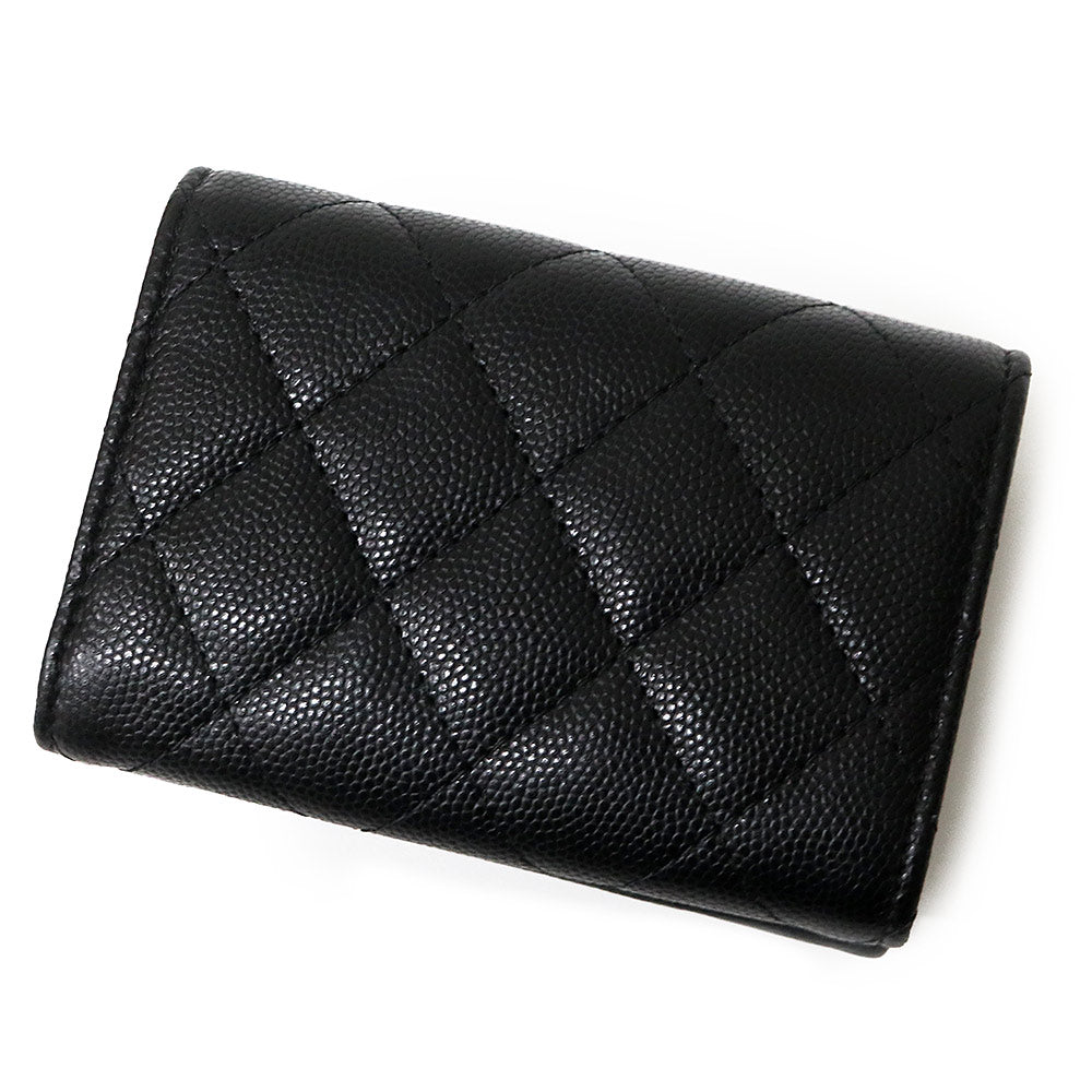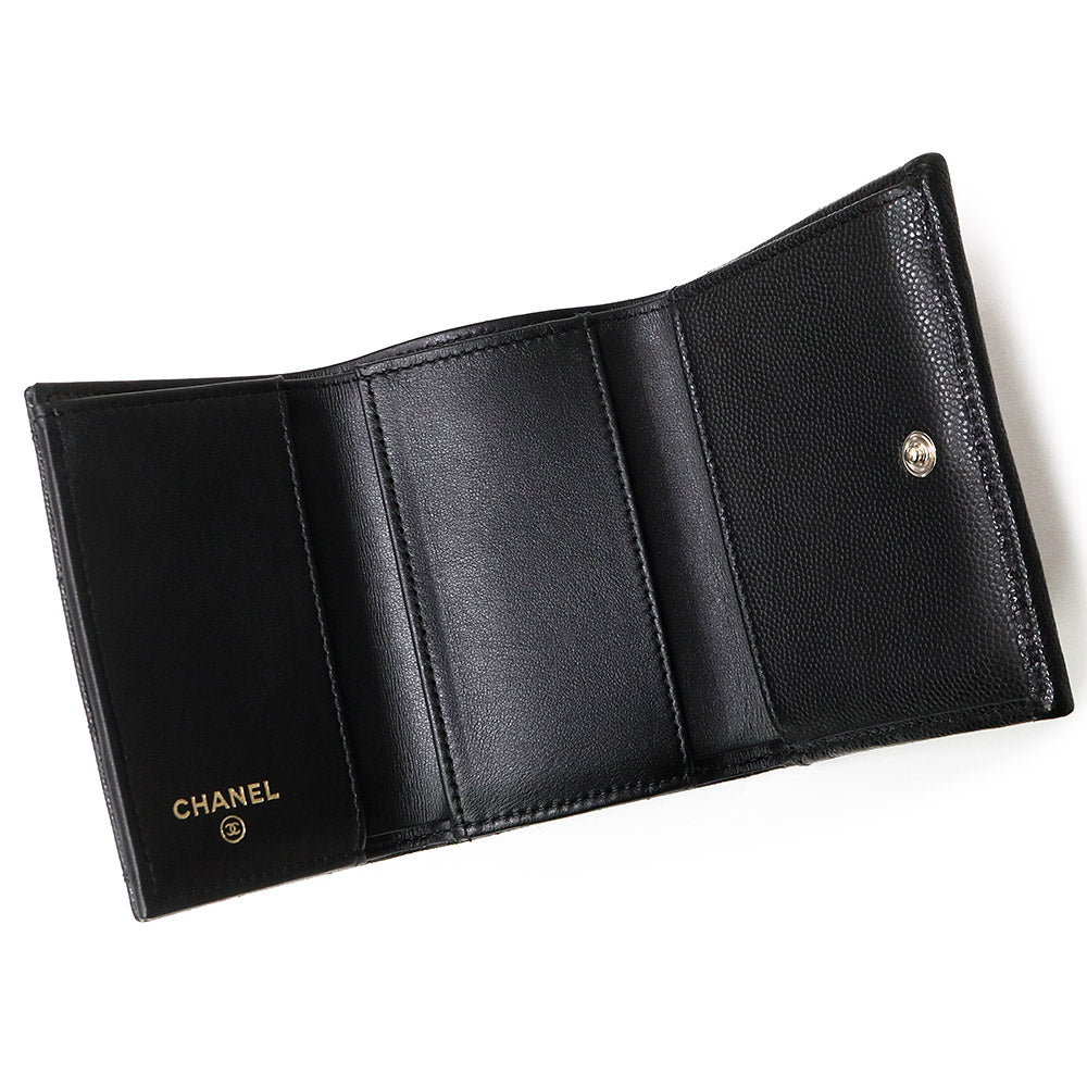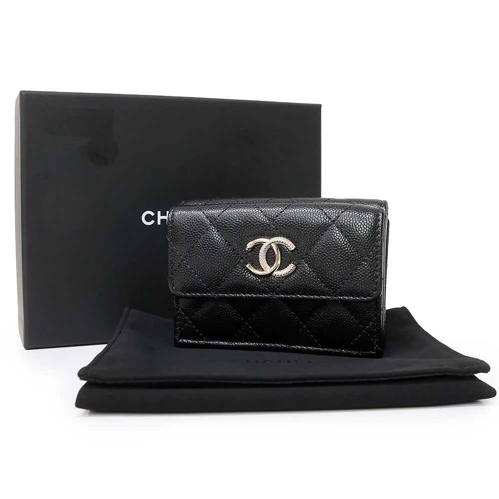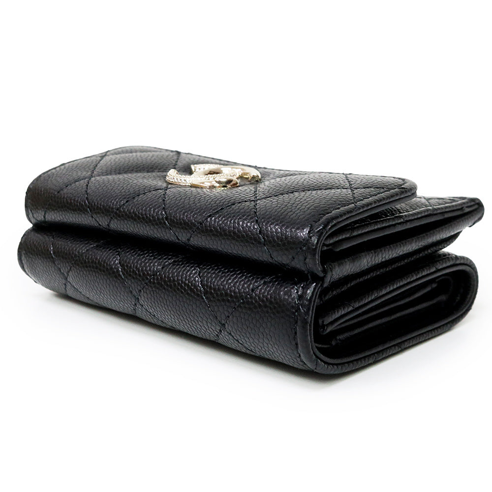 [New and unused] CHANEL Small Matelassé Flap Wallet with Strass and Rhinestones, Tri-fold Wallet, Caviar Leather, Black, Gold Hardware, AP4901
