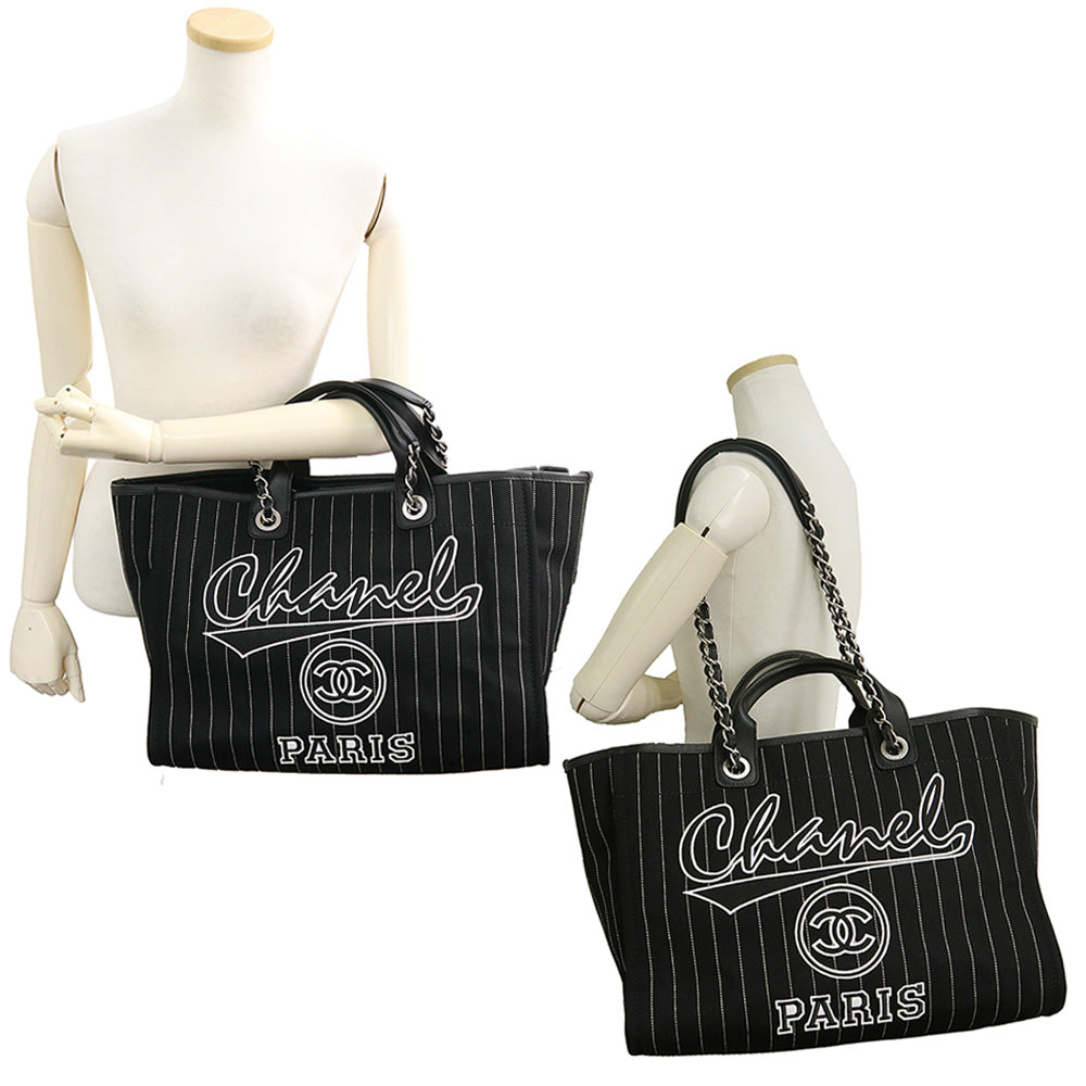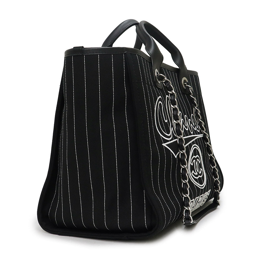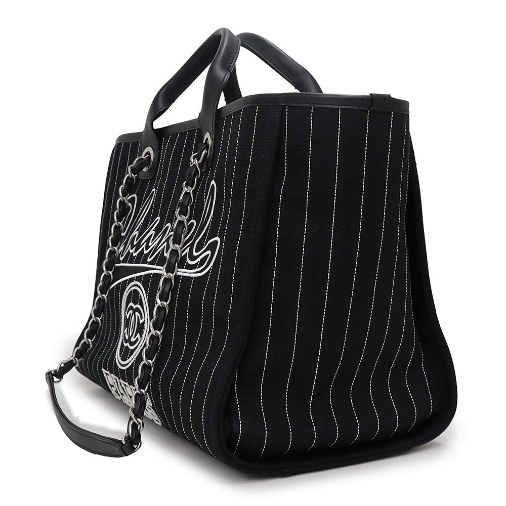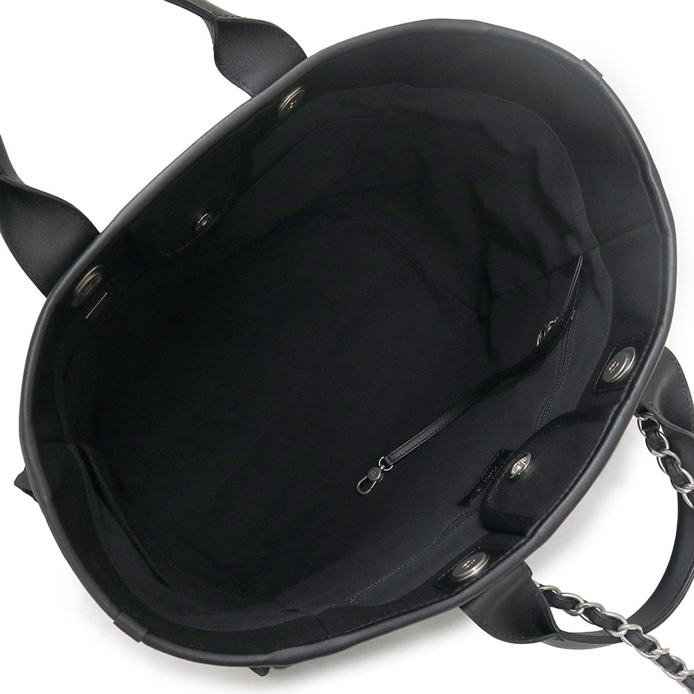 [Unused Display Item] CHANEL A66941 Deauville Large Shopping Bag, 2-Way Chain Shoulder/Handbag, Cotton and Leather, Black with Silver Hardware