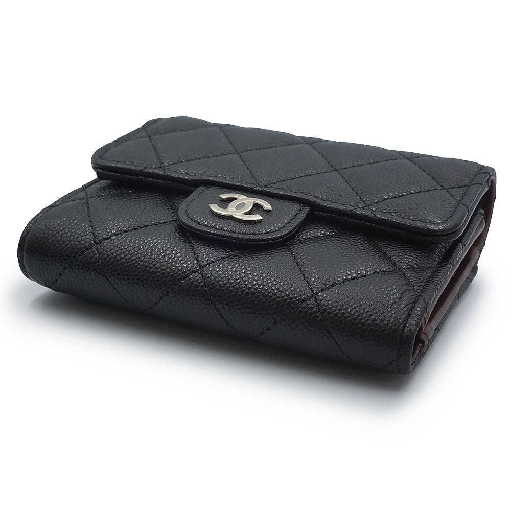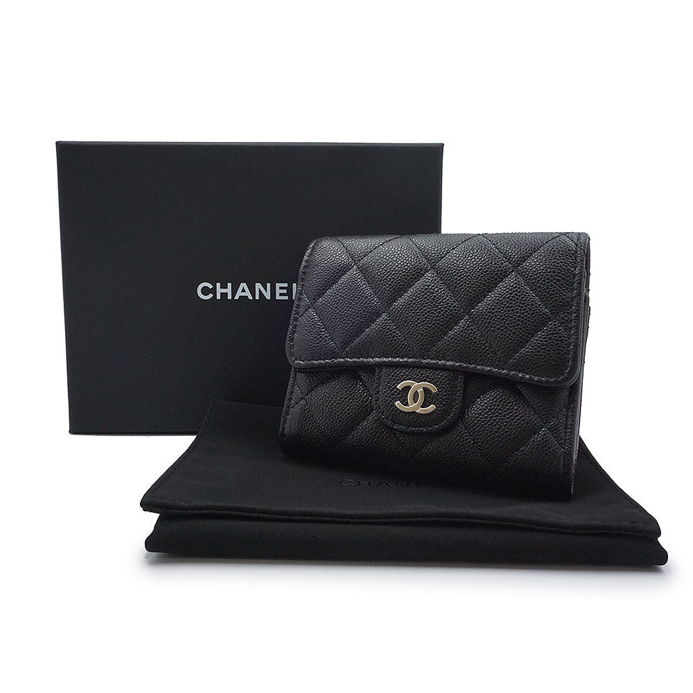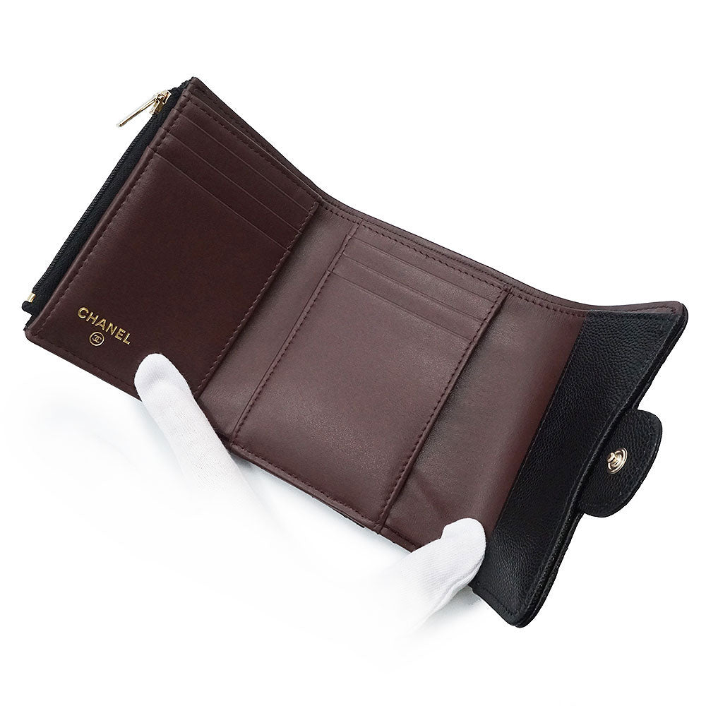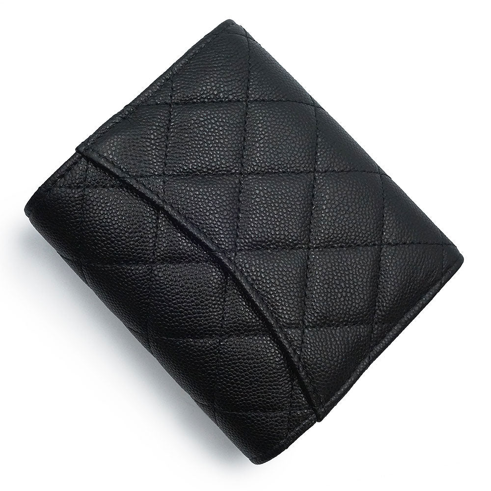 [Brand New/Unused] CHANEL AP4383 Matelasse Small Wallet, Black Caviar Leather Tri-fold Wallet with Champagne Gold Hardware, Box Included