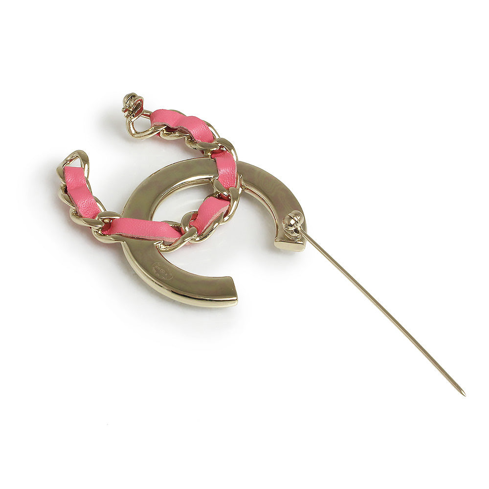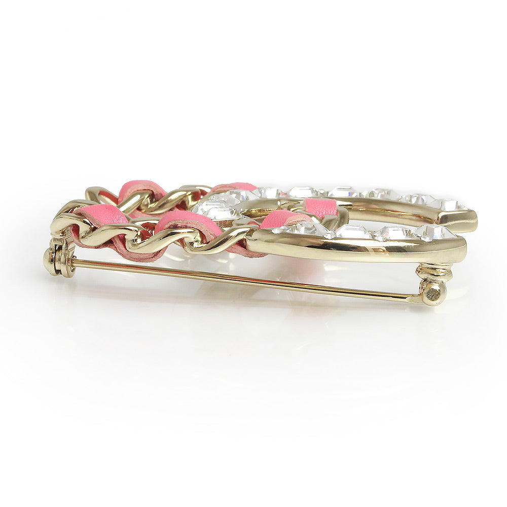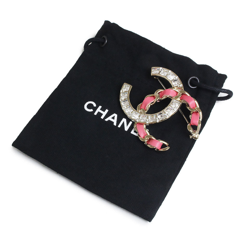 [New and unused] CHANEL Coco Mark Chain Square Rhinestone Brooch Leather Metal Pink Gold AB0025