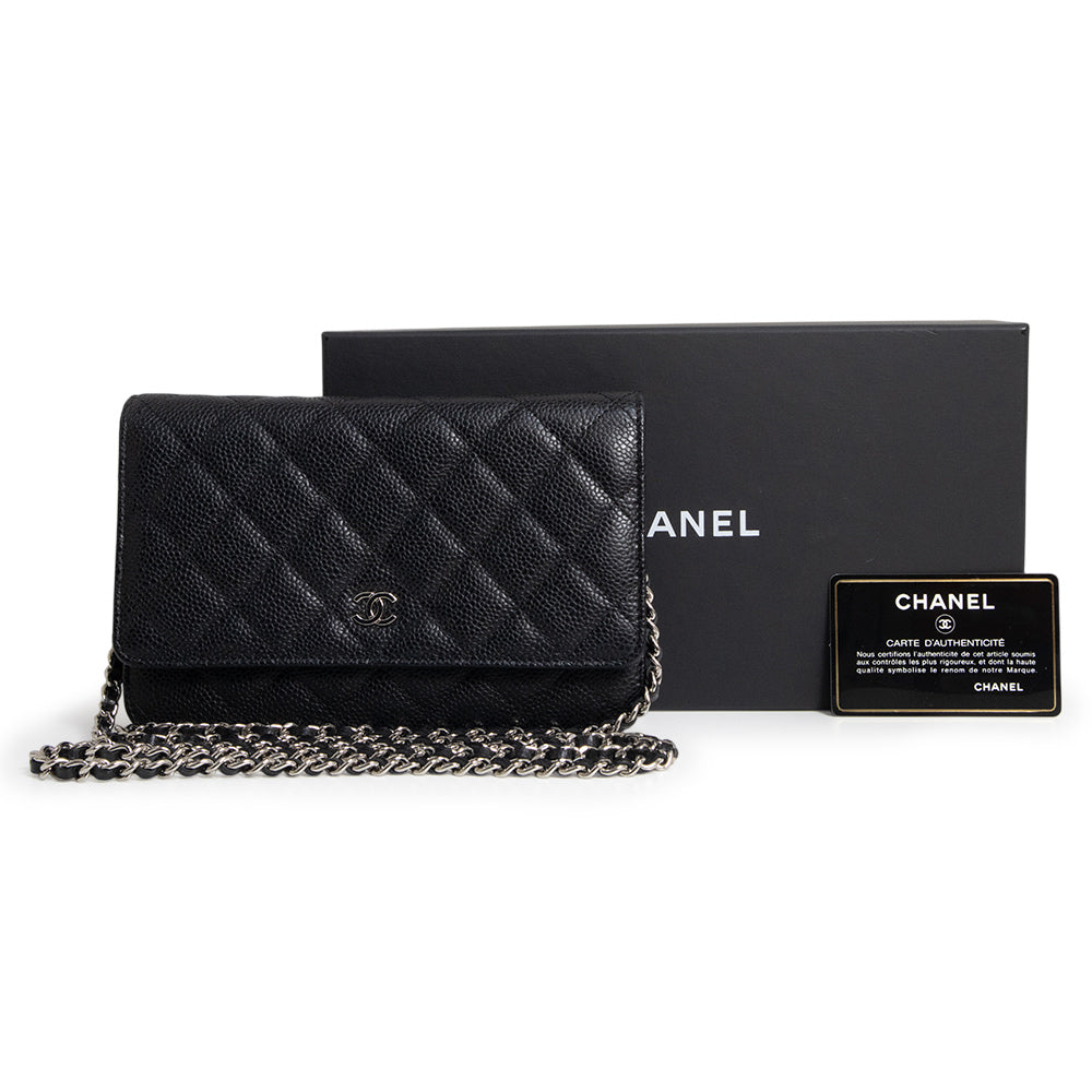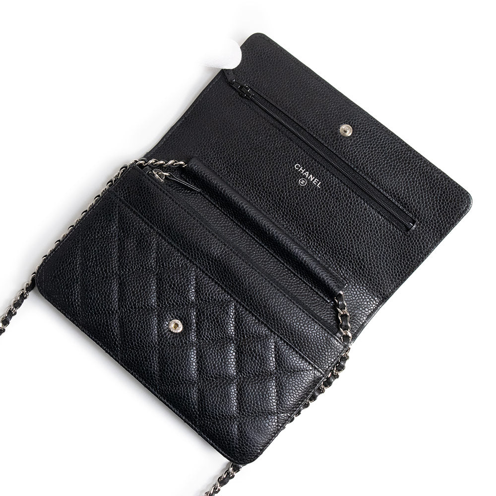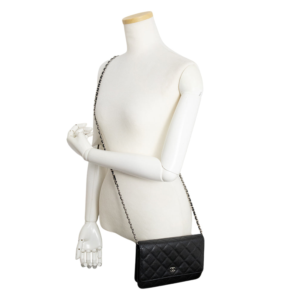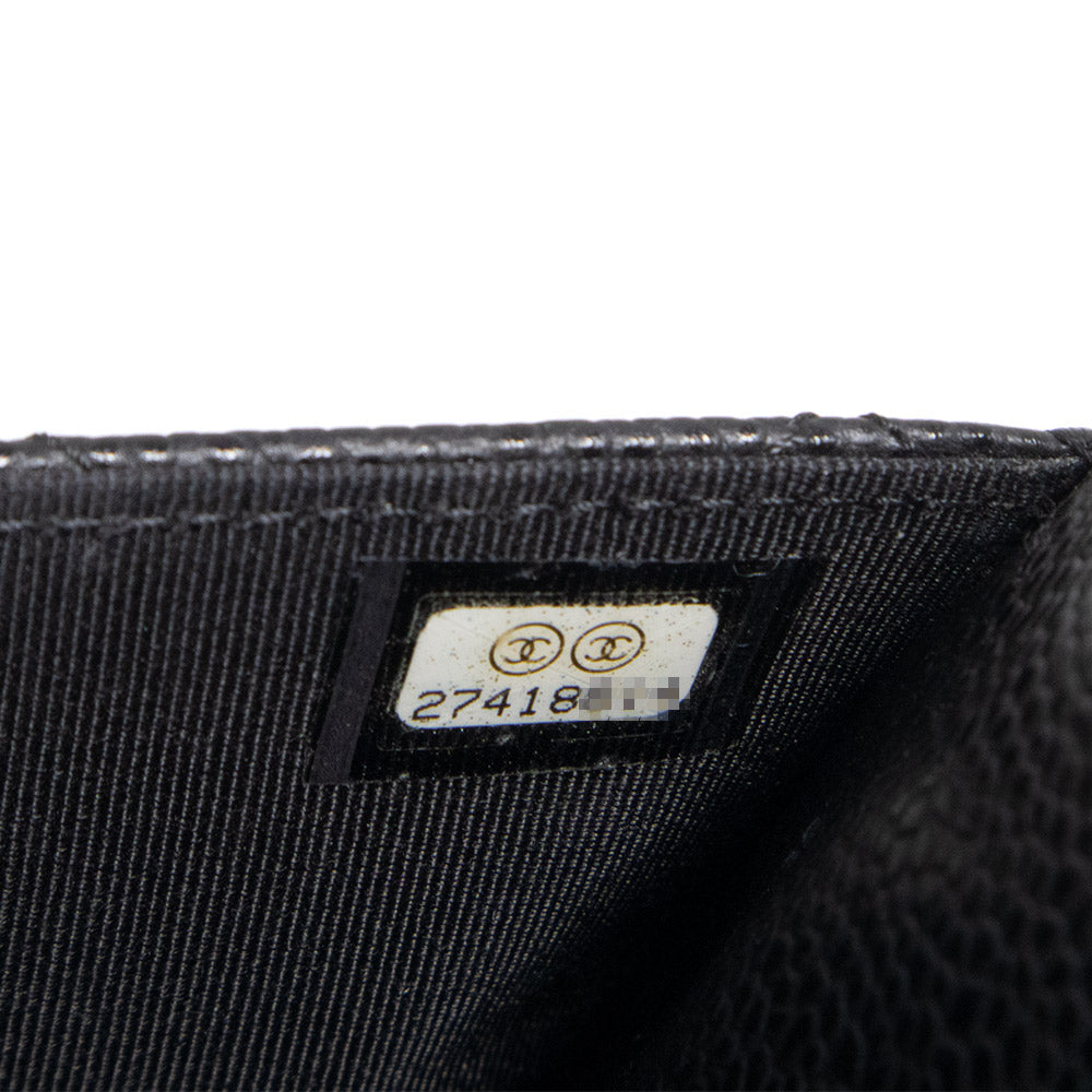 【中古】CHANEL シャネル A33814 AP0250 マトラッセ クラシック ココマーク キャビアスキン ブラック チェーンウォレット 斜め掛け 財布 レザー シルバー金具 箱付