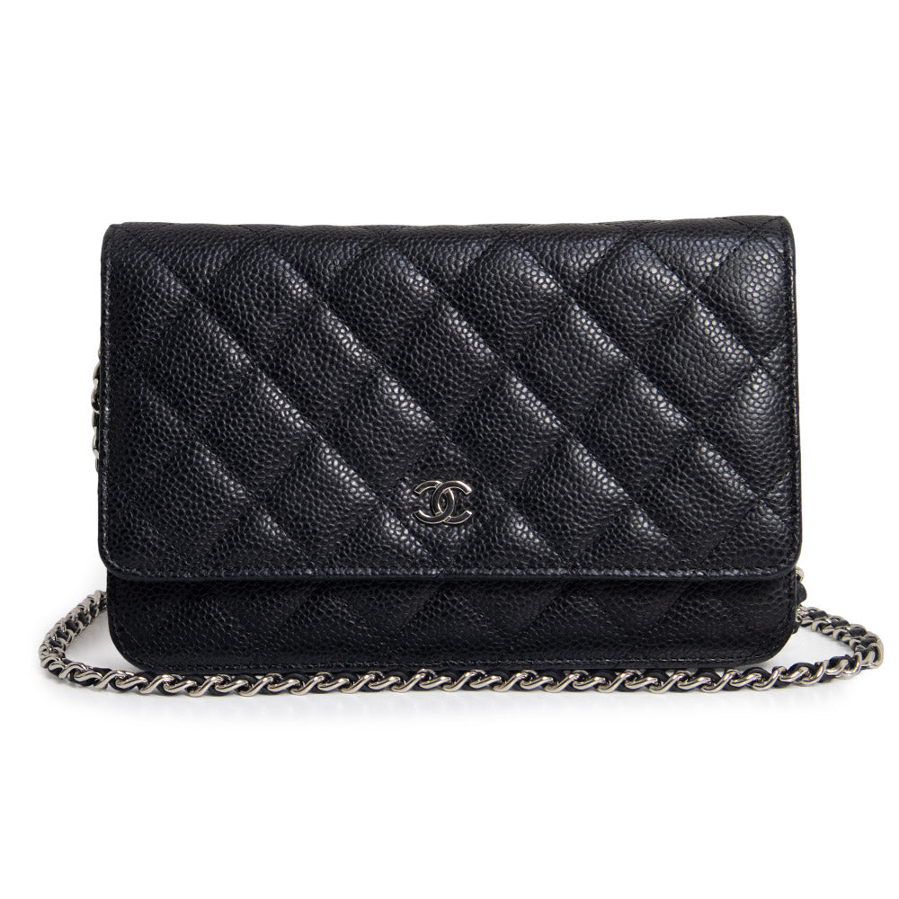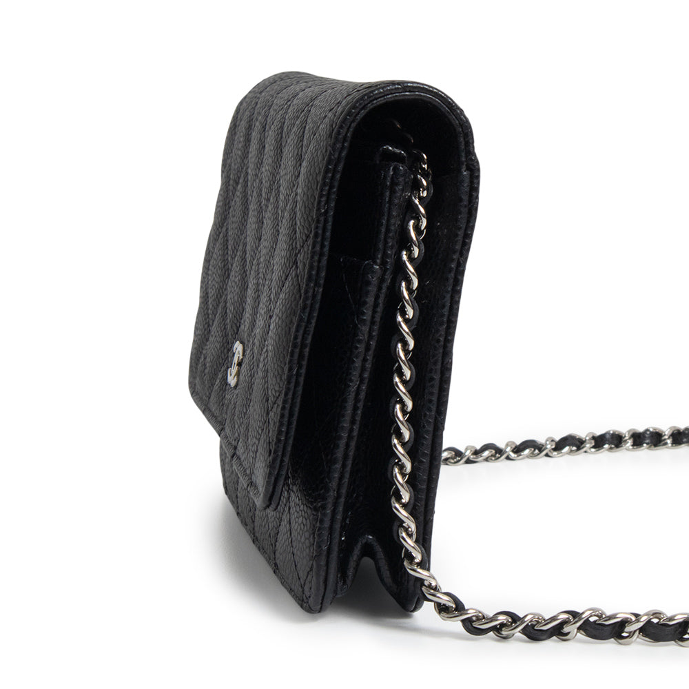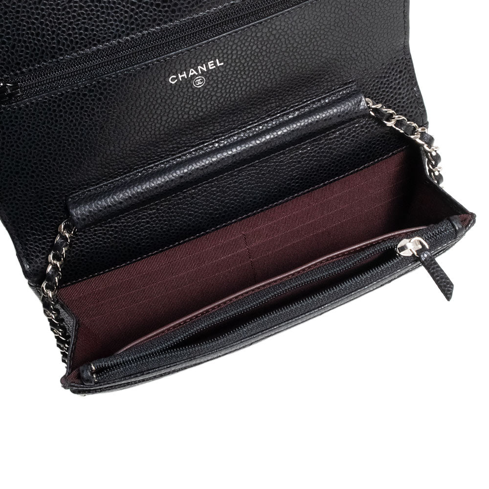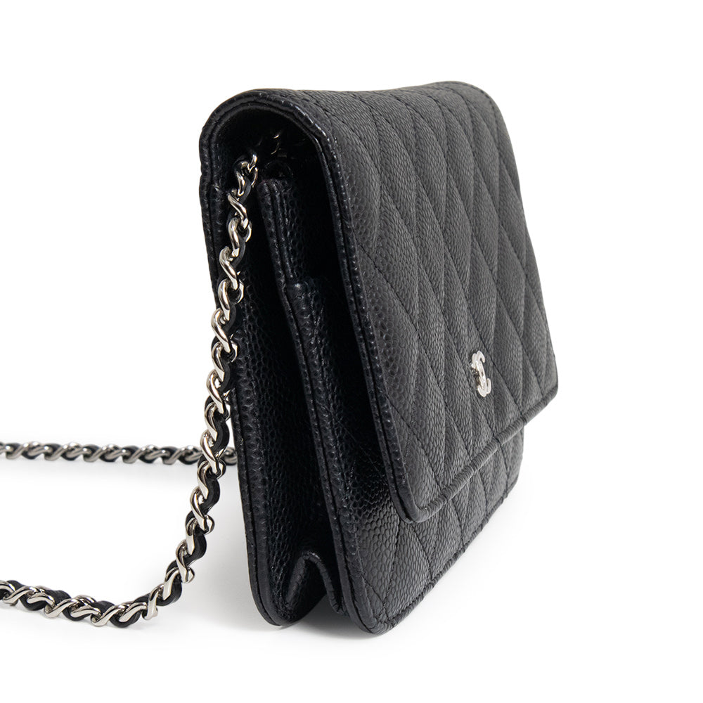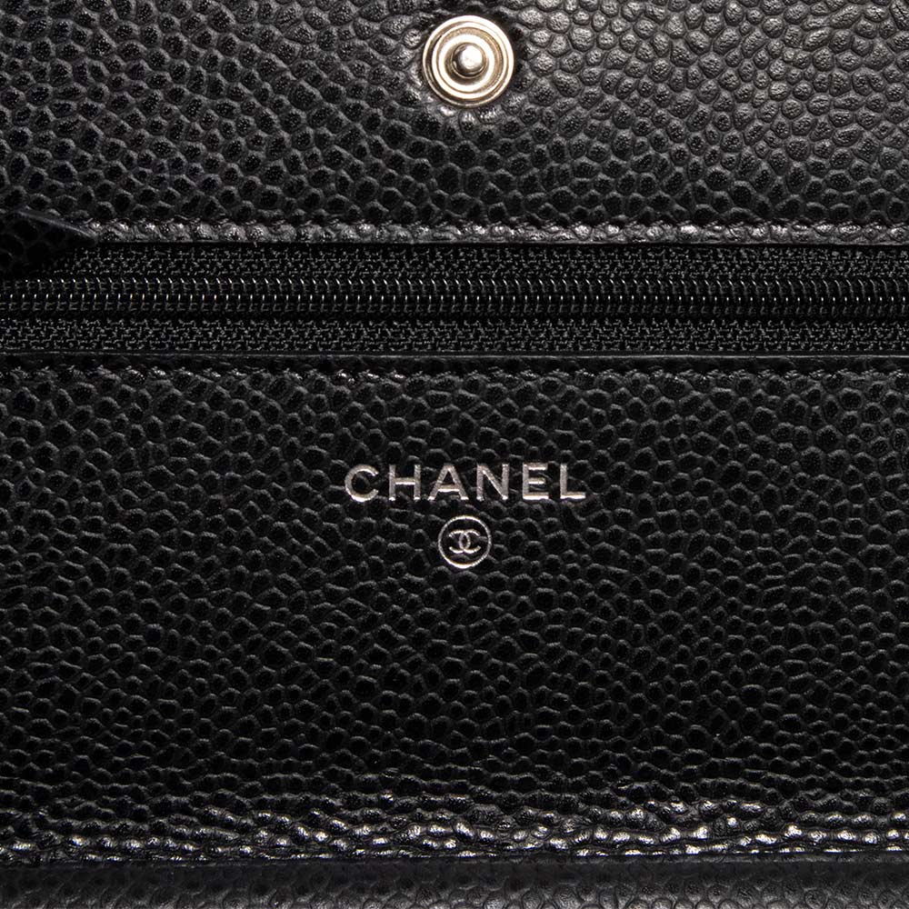 【中古】CHANEL シャネル A33814 AP0250 マトラッセ クラシック ココマーク キャビアスキン ブラック チェーンウォレット 斜め掛け 財布 レザー シルバー金具 箱付