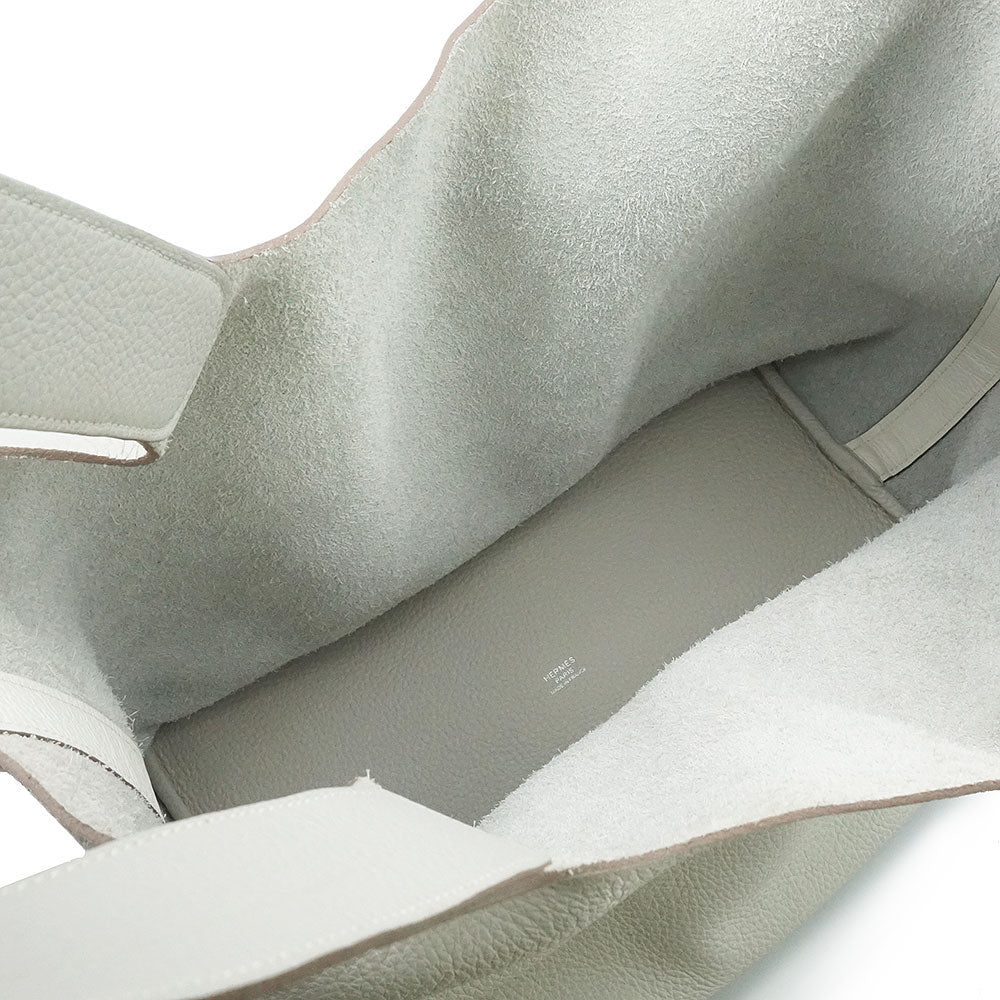 【中古】HERMES エルメス ピコタンロック カザック 31 TGM トリヨンクレマンス ブラン パールグレー ホワイト □P刻印 ハンドバッグ レザー シルバー金具