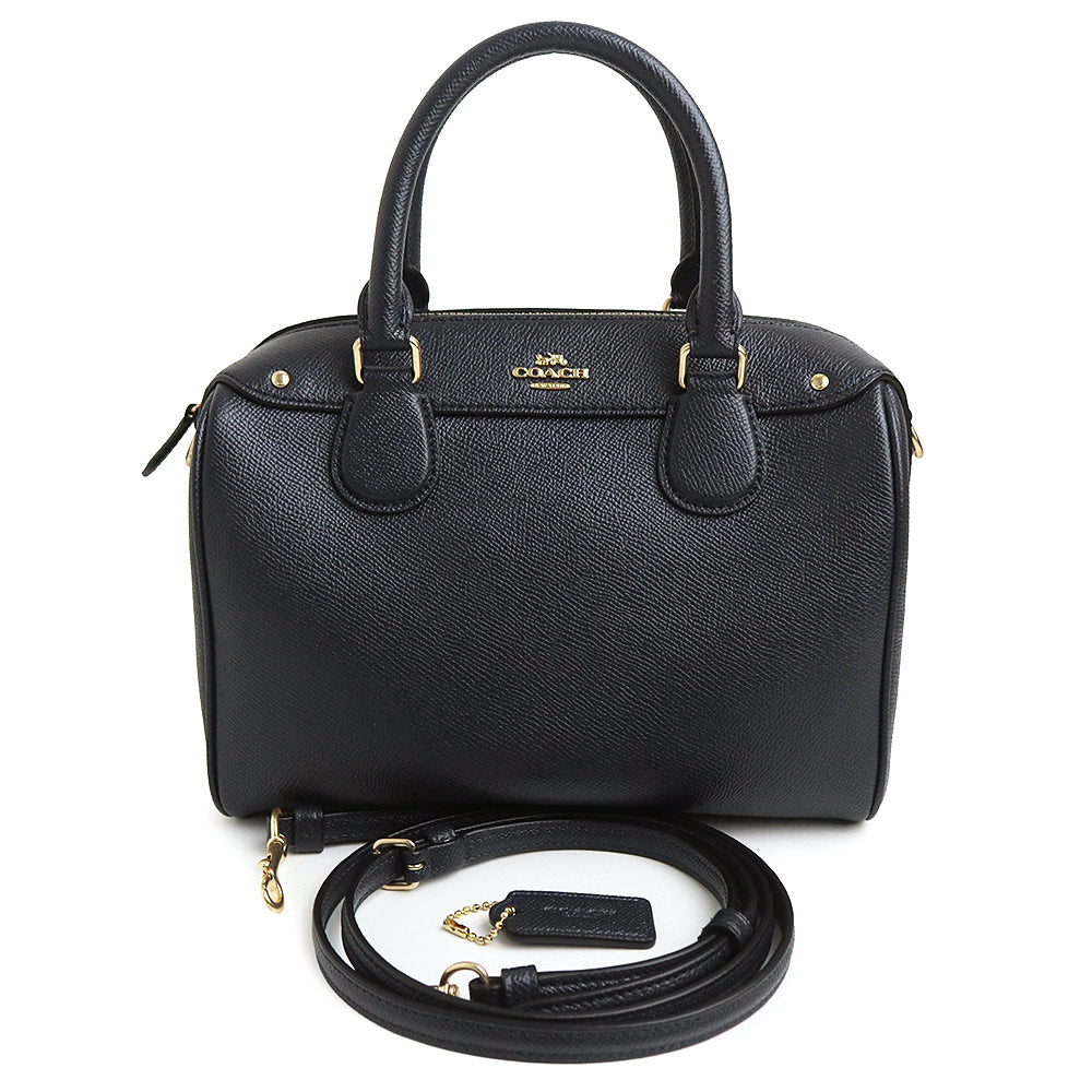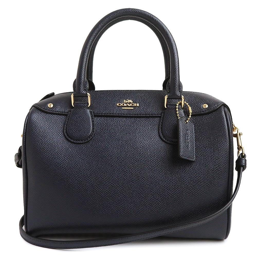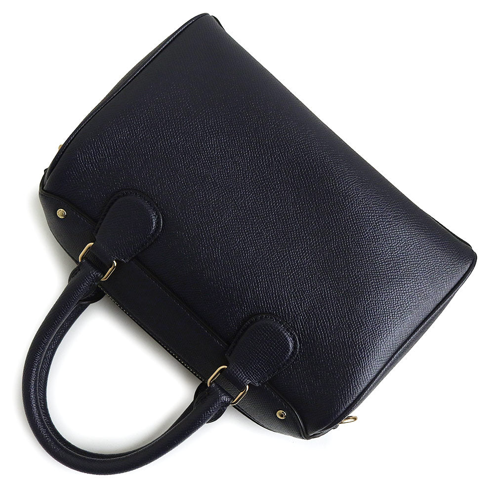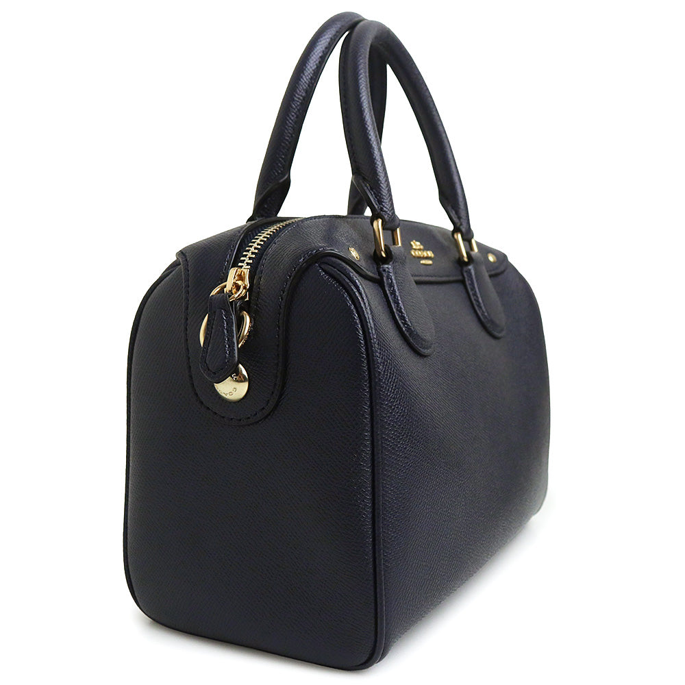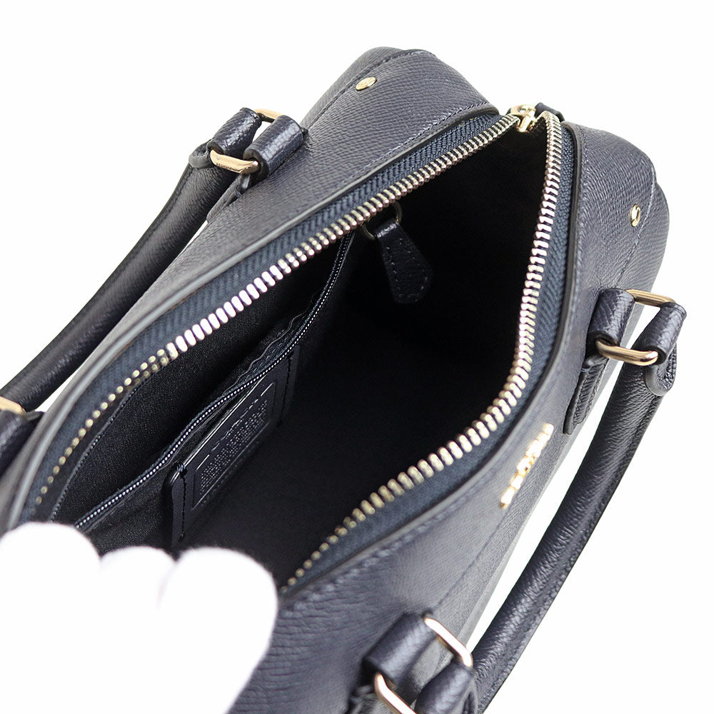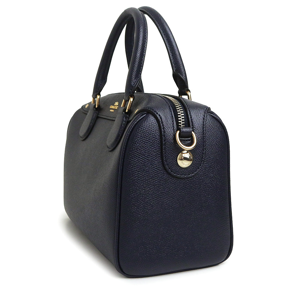 【中古】COACH コーチ F57521 ミニ ベネット サッチェル クロスグレインレザー ミッドナイト ブルー 2way ショルダー ハンドバッグ 斜め掛け ゴールド金具