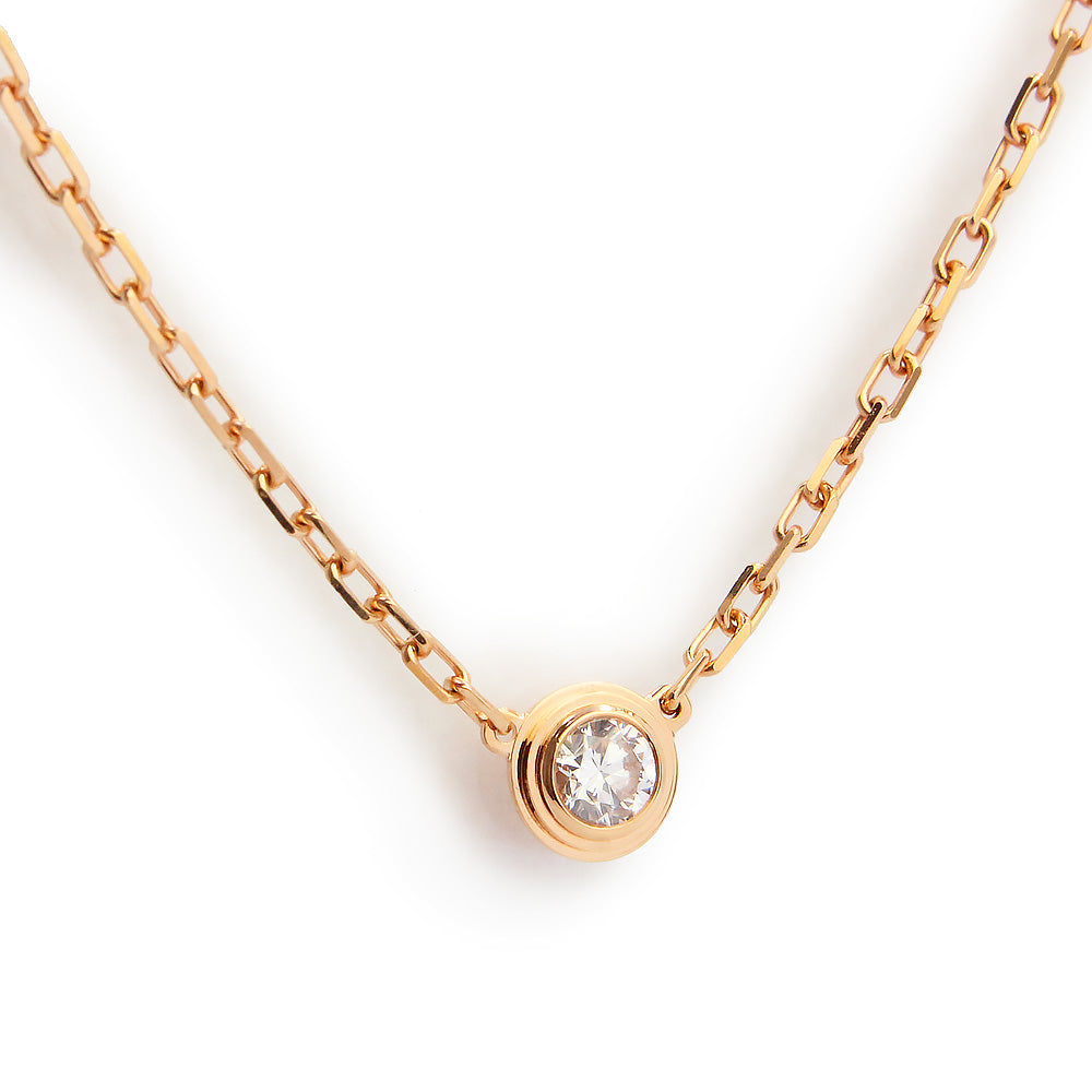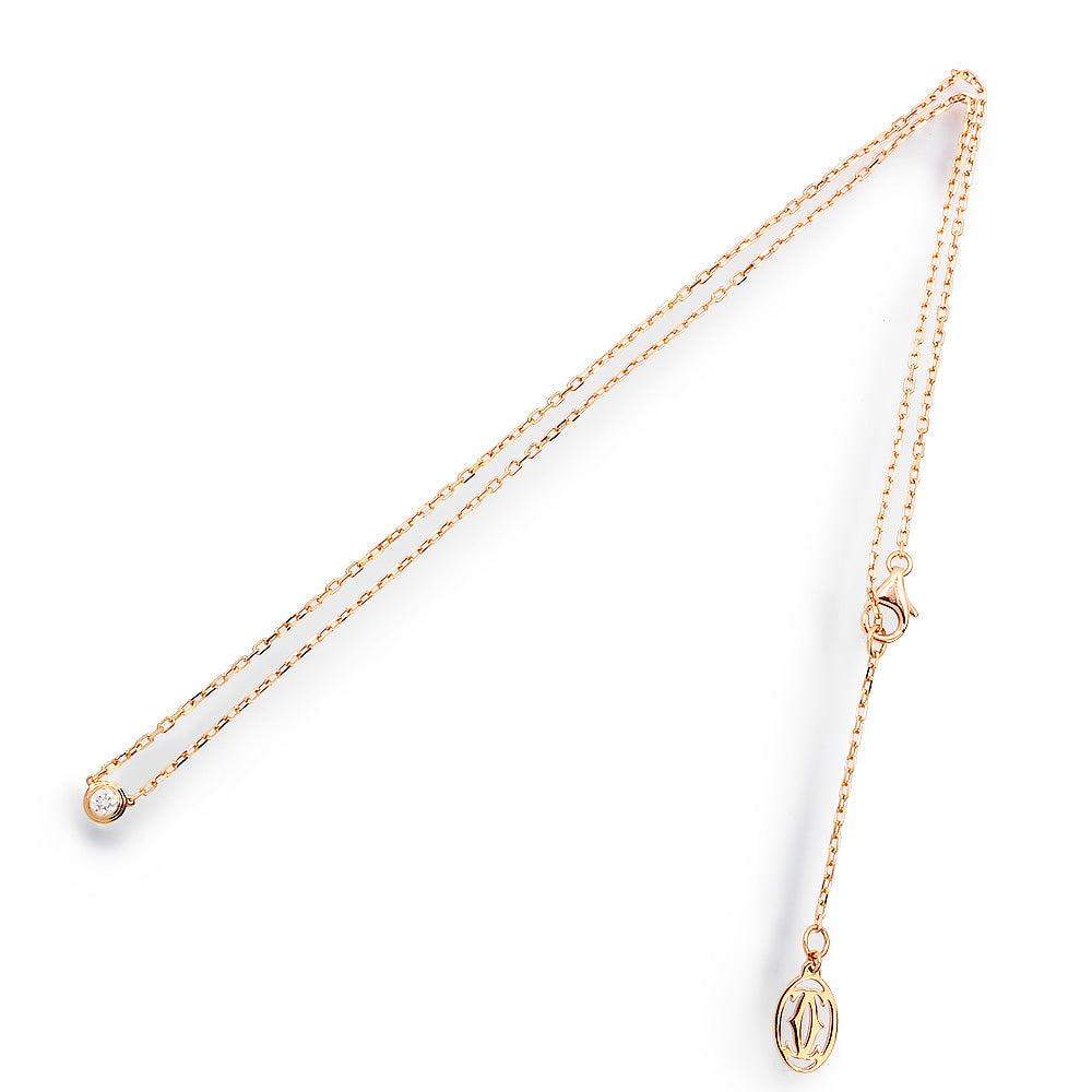 Cartier's "Damour" (Diamants Léger) necklace is a simple, elegant and delicate collection. Diamonds carefully selected by Cartier's jewelers are set on an exquisite pink gold chain. |