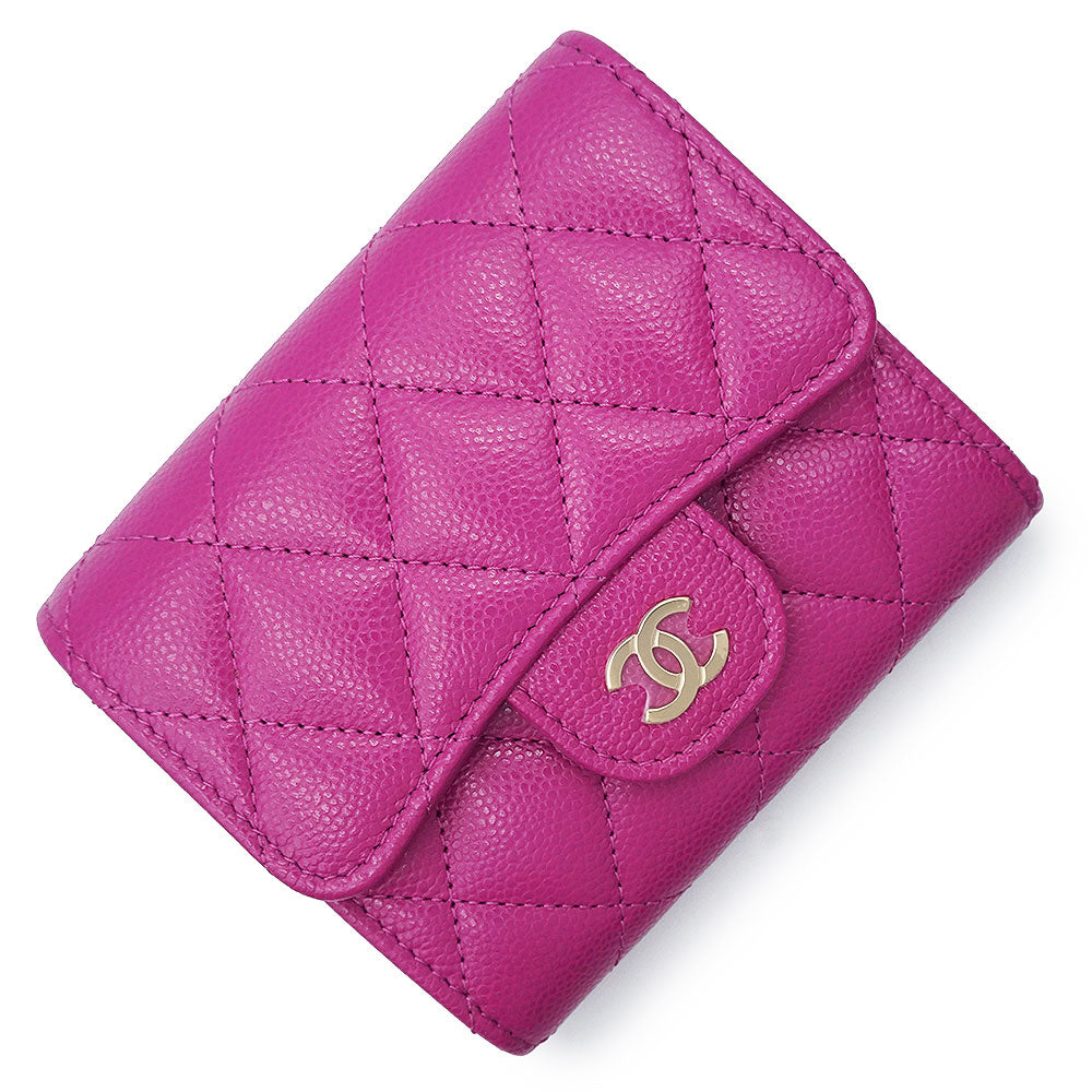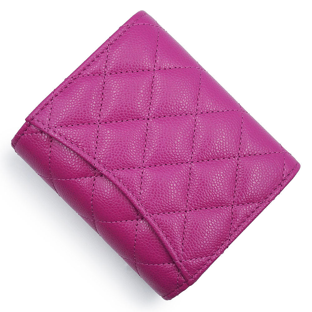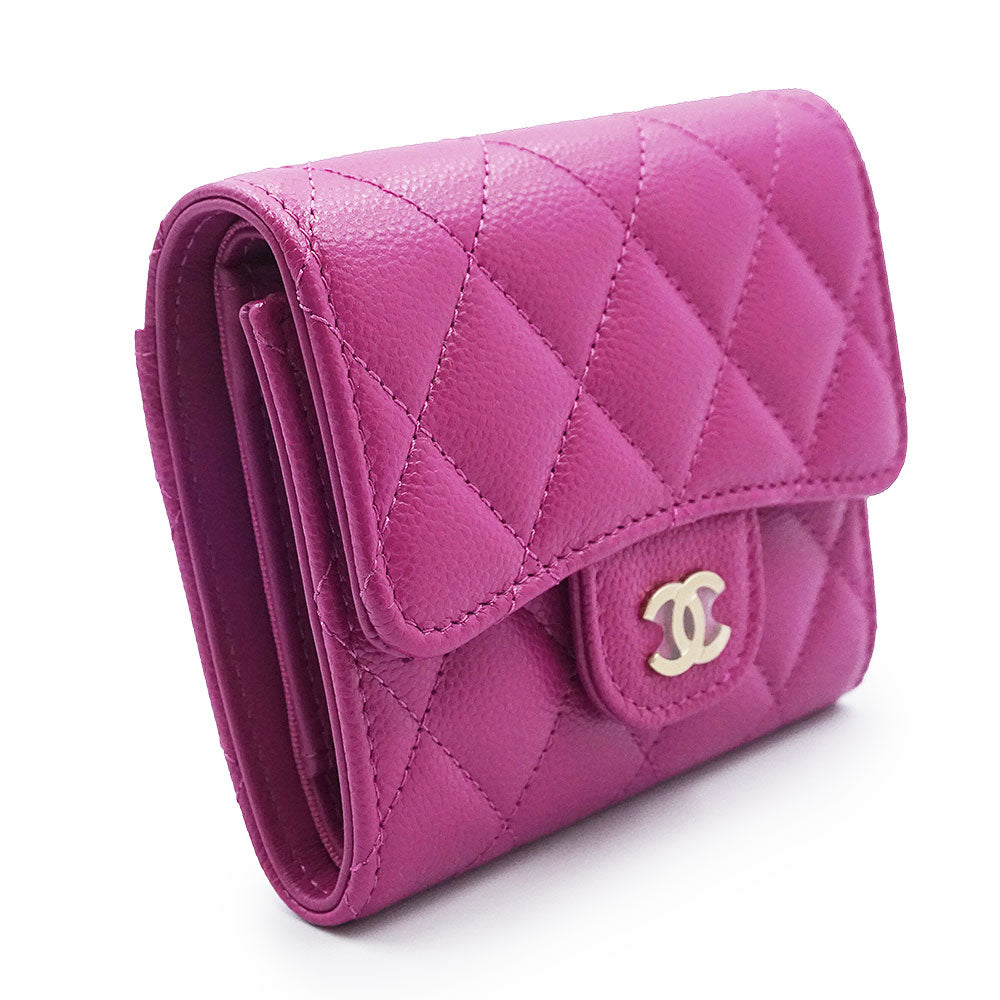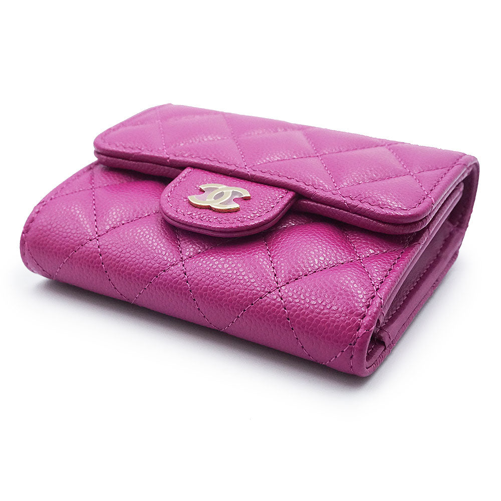 [Unused, Stored] CHANEL AP0229 Matelasse Classic Small Flap Wallet in Pink-Purple Caviar Leather with Gold Hardware. Compact Tri-Fold Wallet.