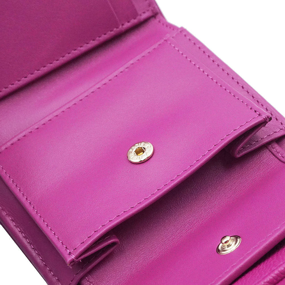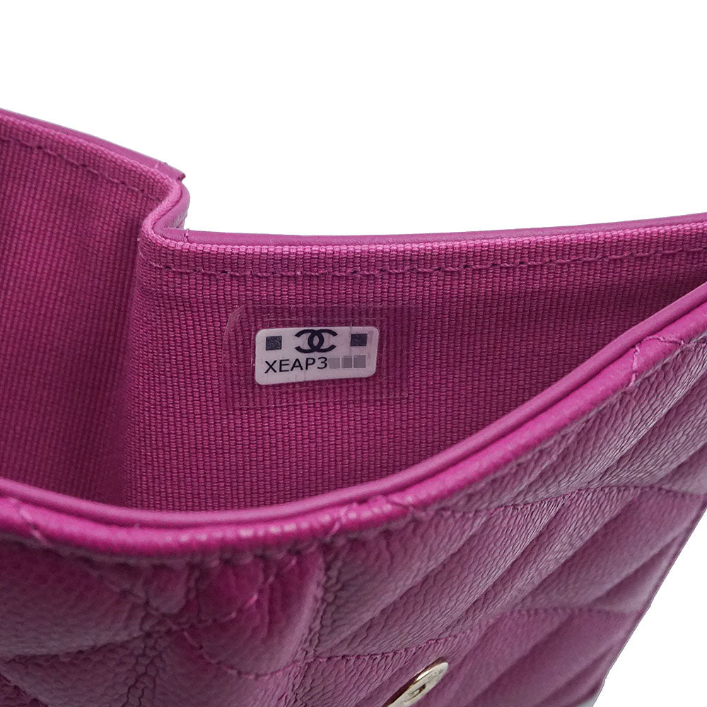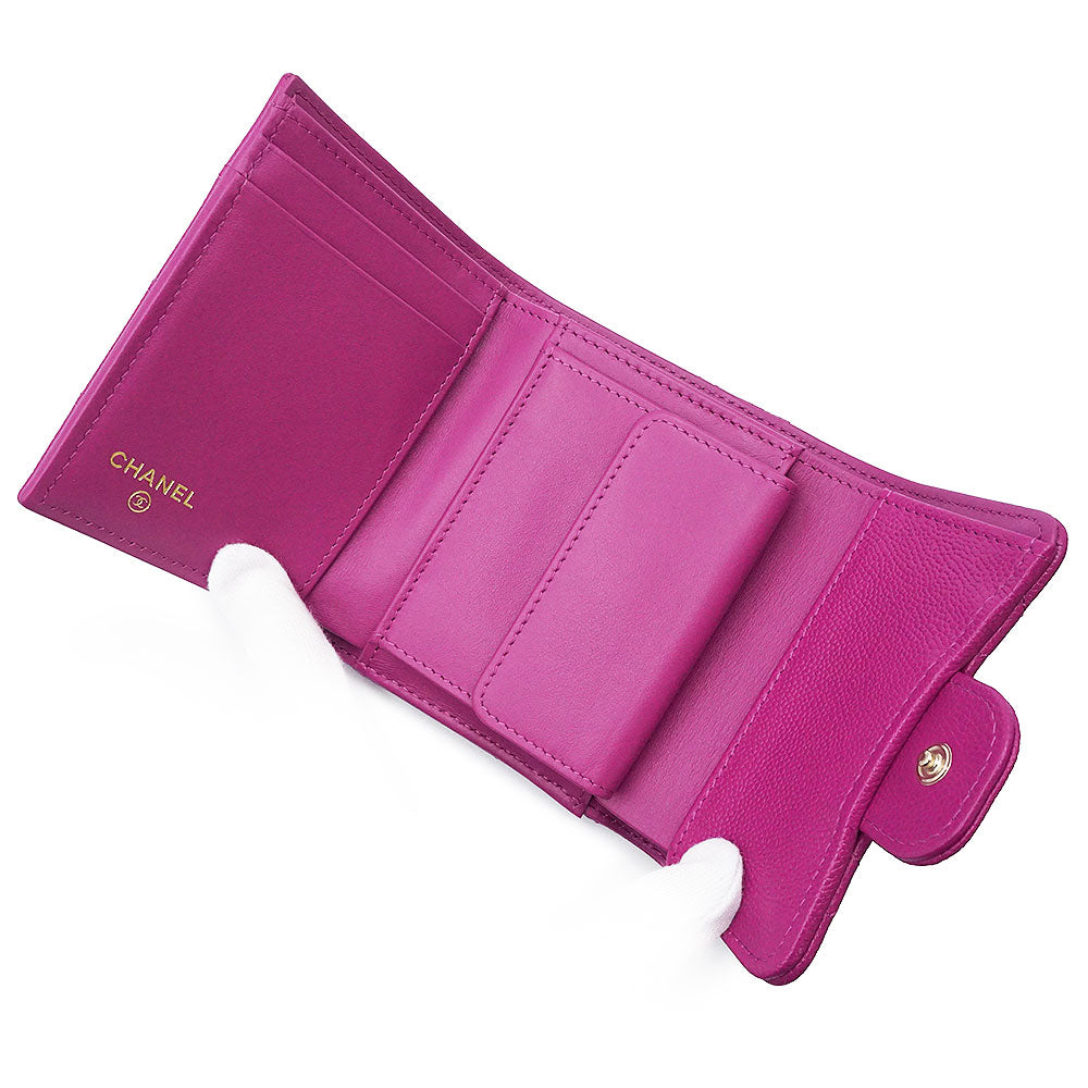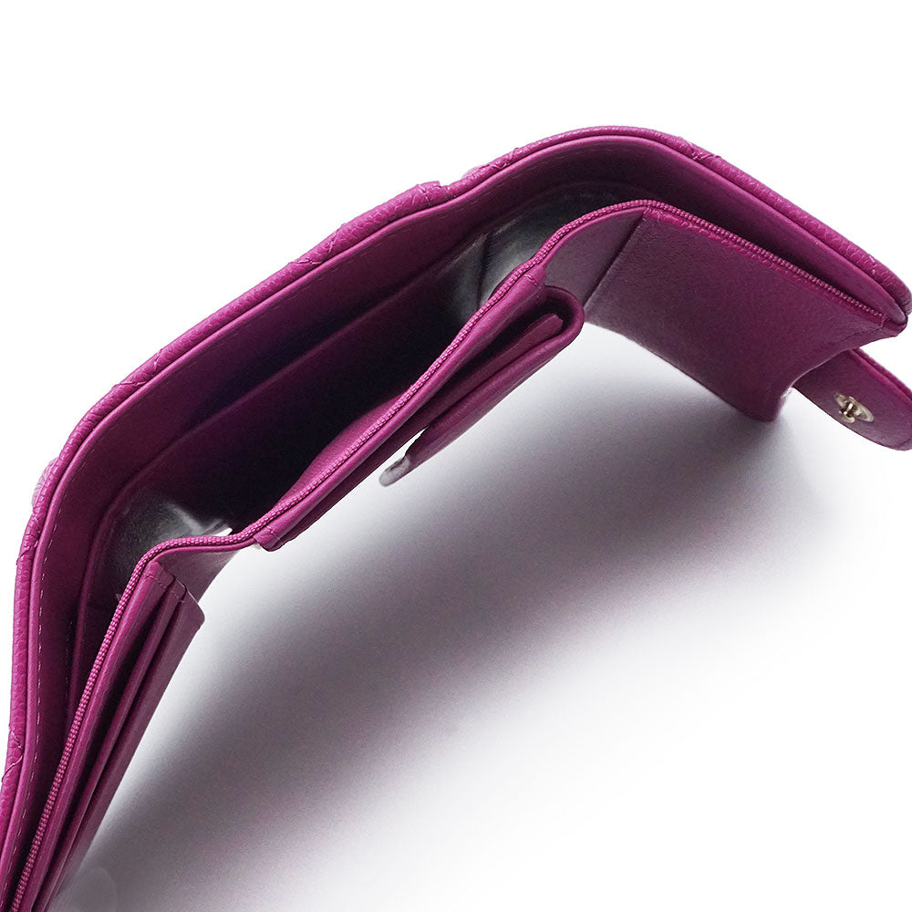 [Unused, Stored] CHANEL AP0229 Matelasse Classic Small Flap Wallet in Pink-Purple Caviar Leather with Gold Hardware. Compact Tri-Fold Wallet.